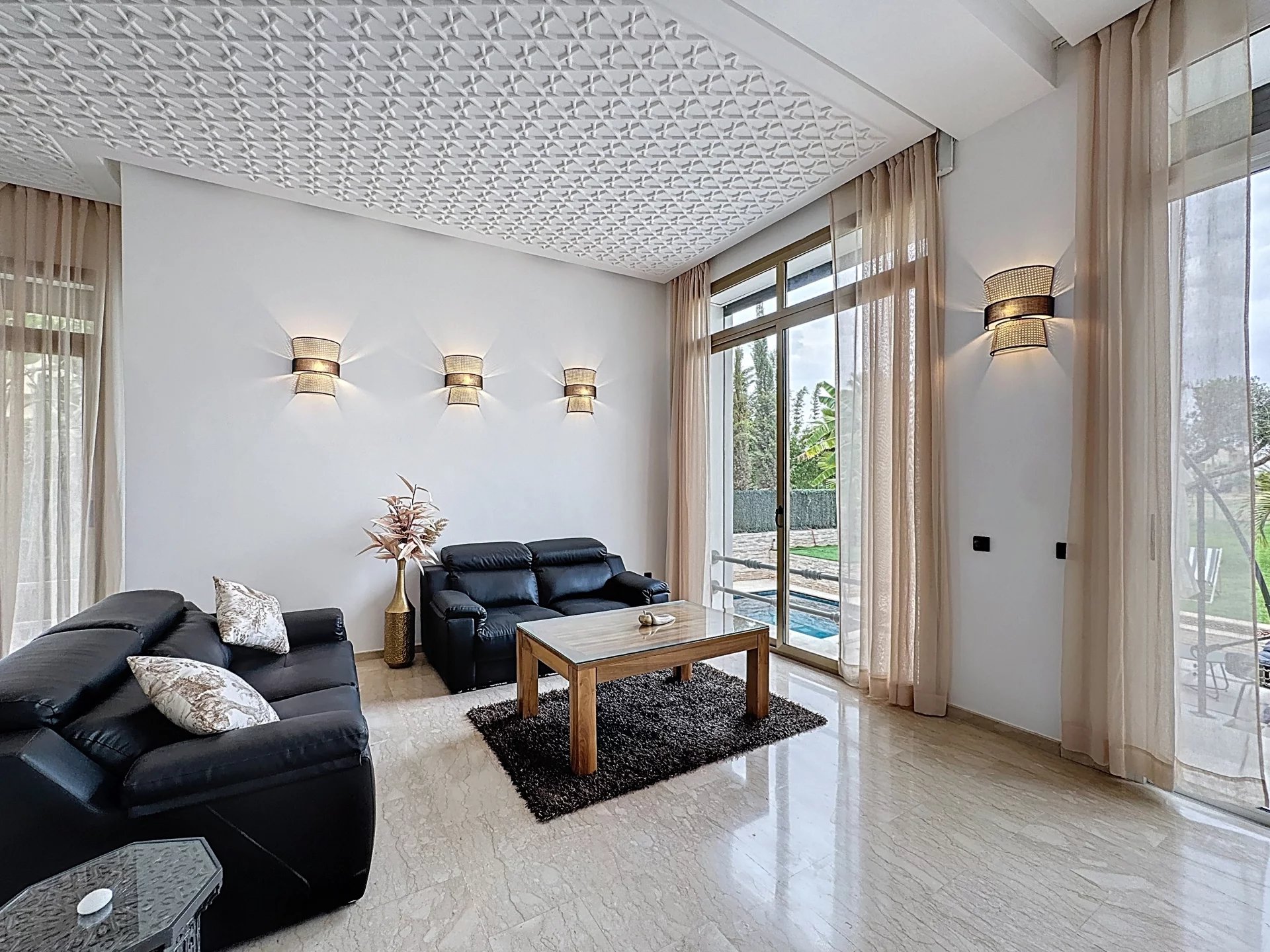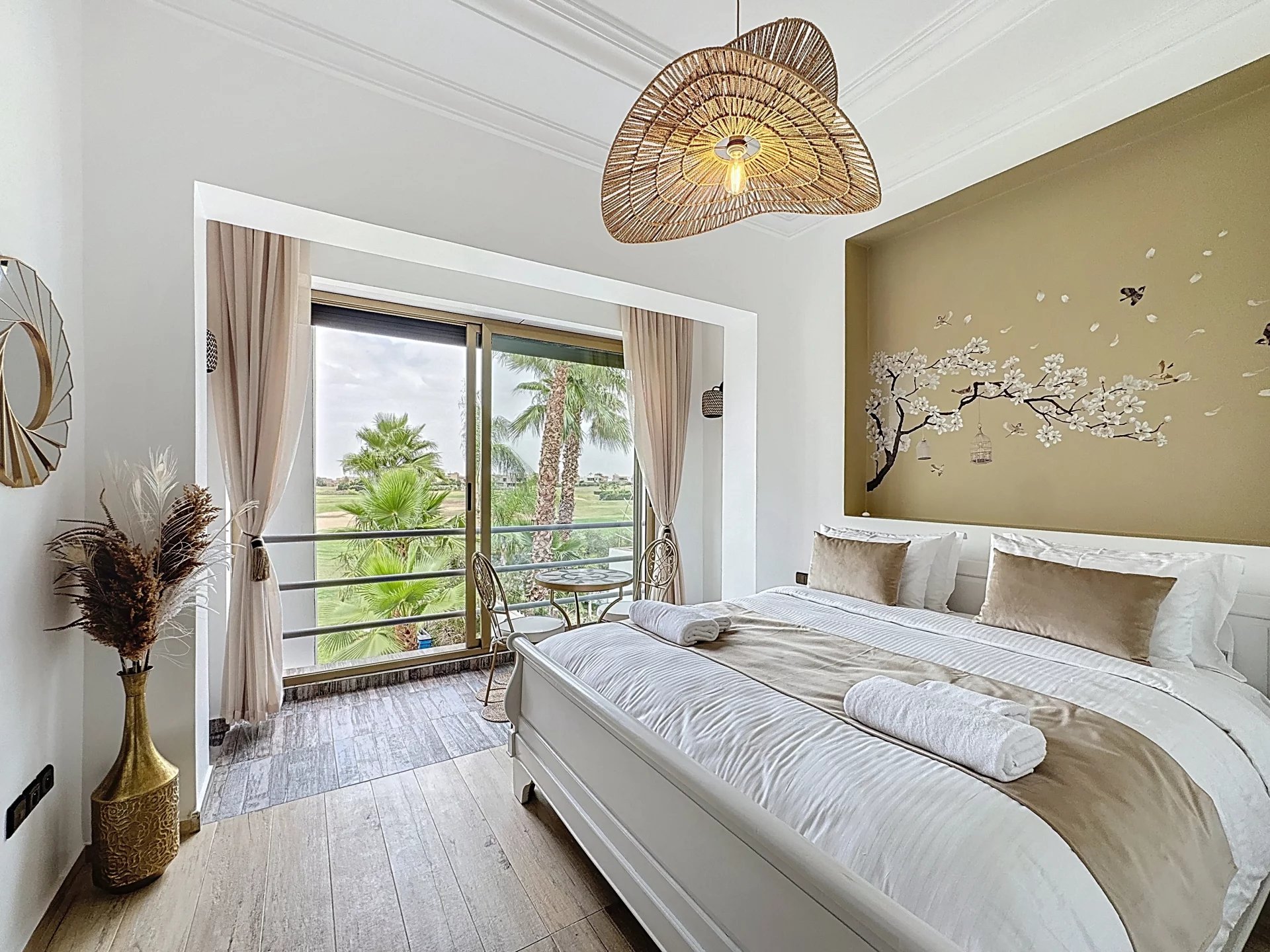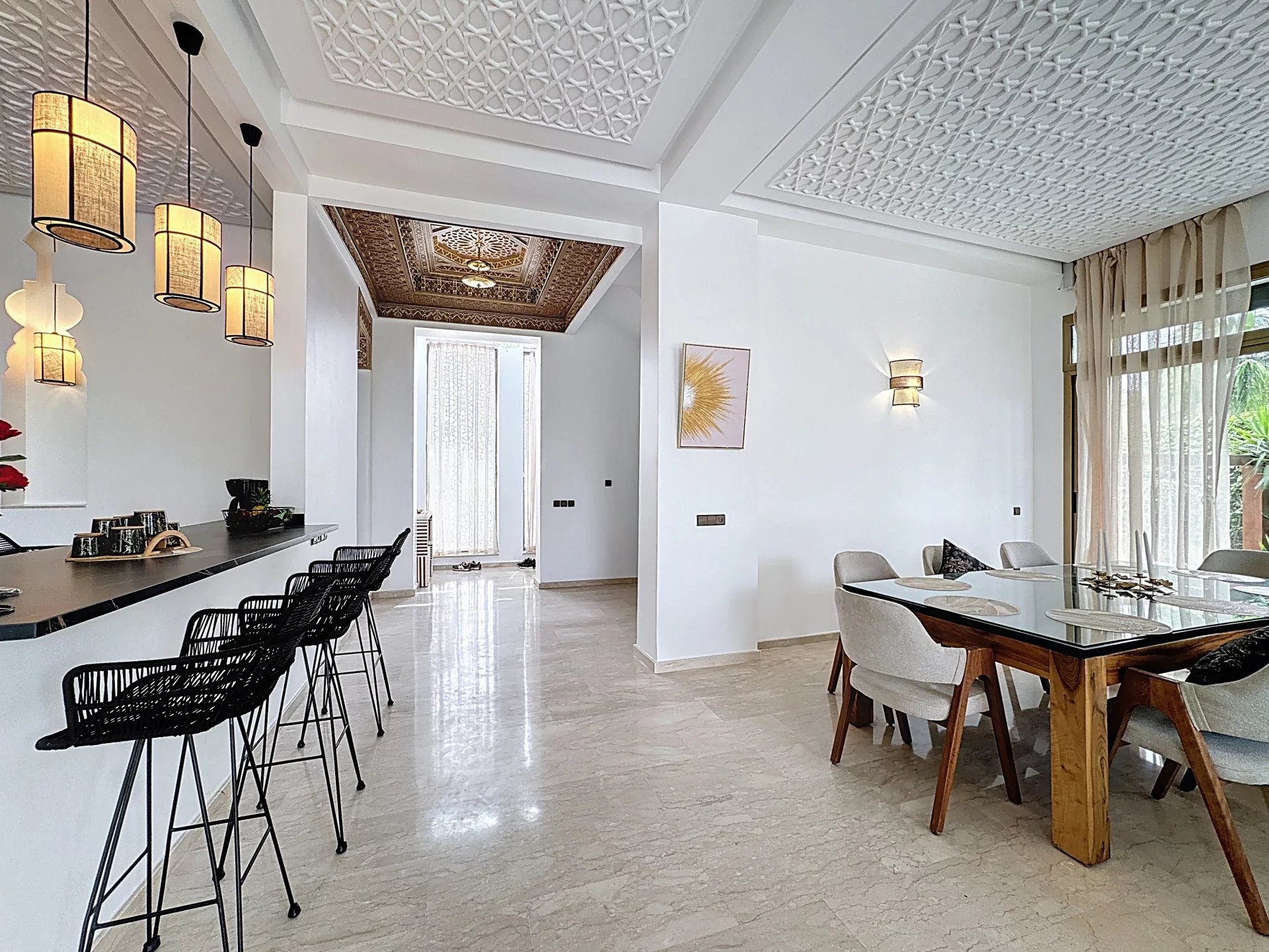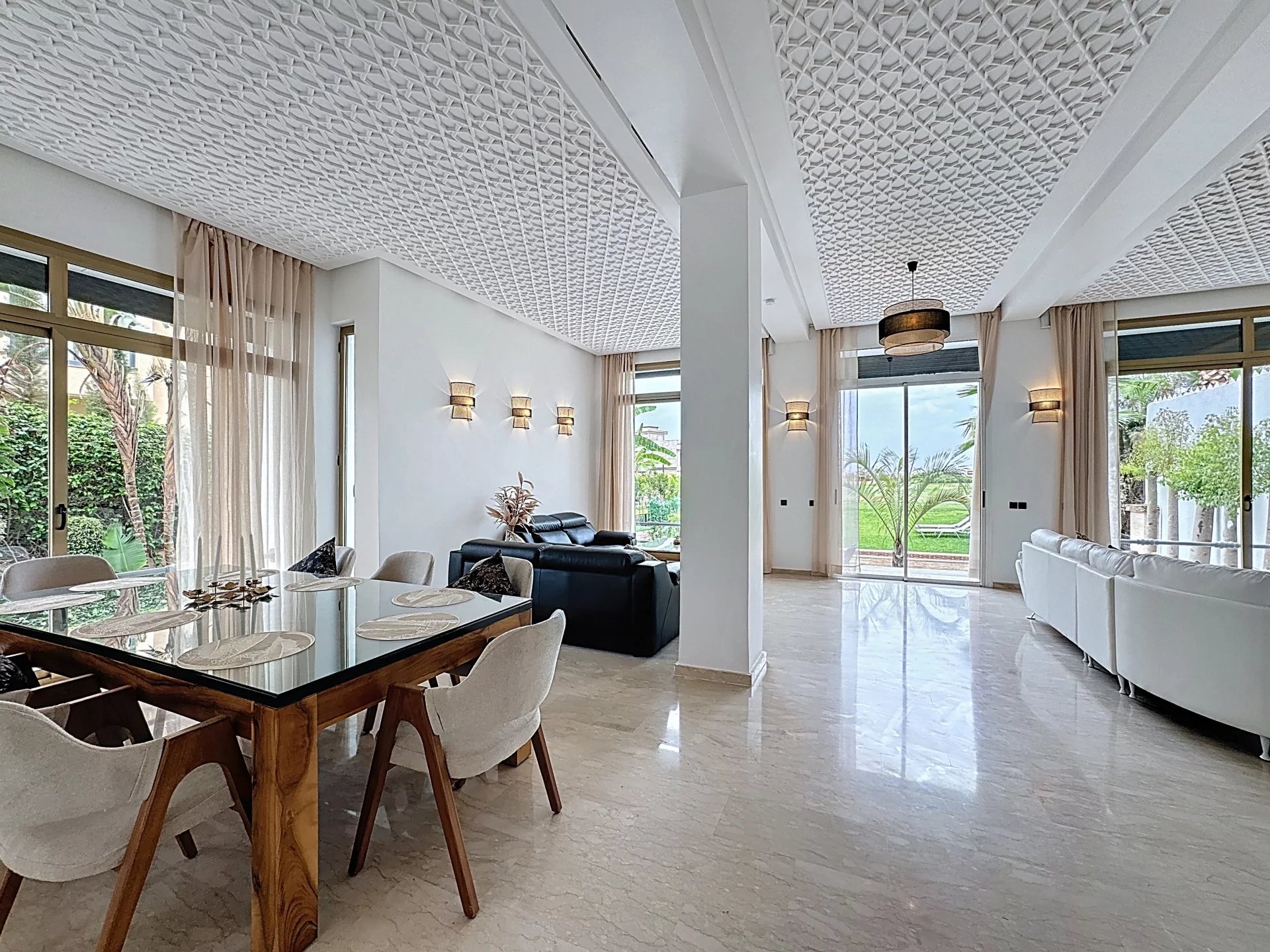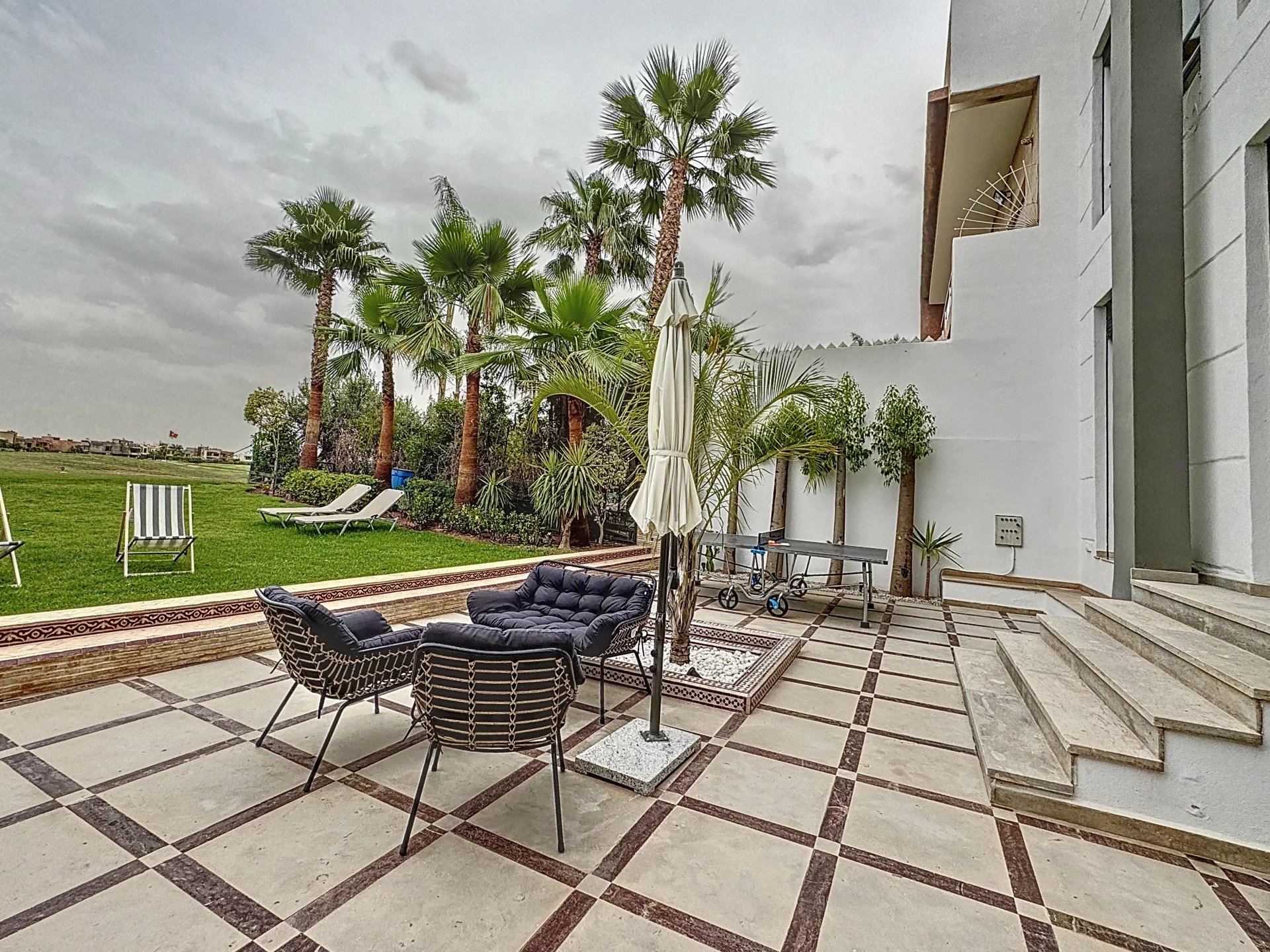 Located in one of Marrakech's most sought-after districts, this elegant furnished villa enjoys an exceptional front-line location on the golf course, in the heart of a quiet, secure residential environment.