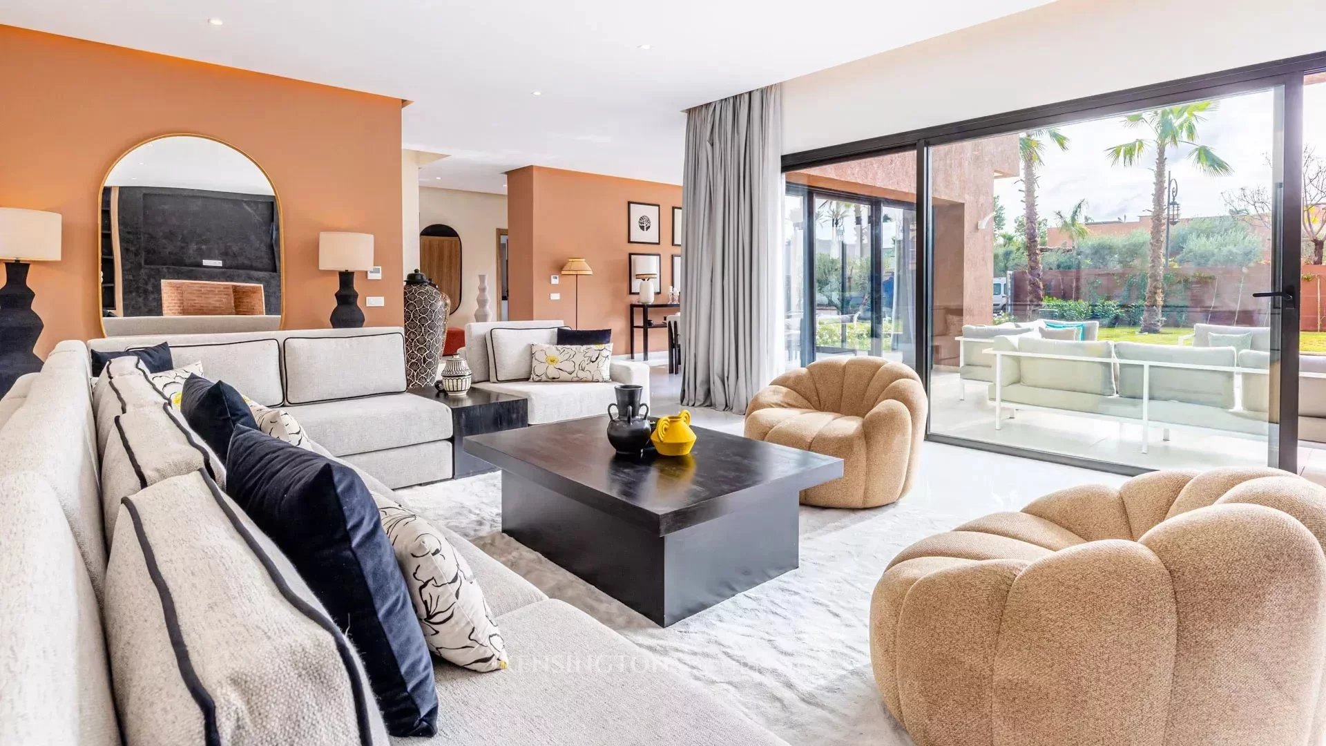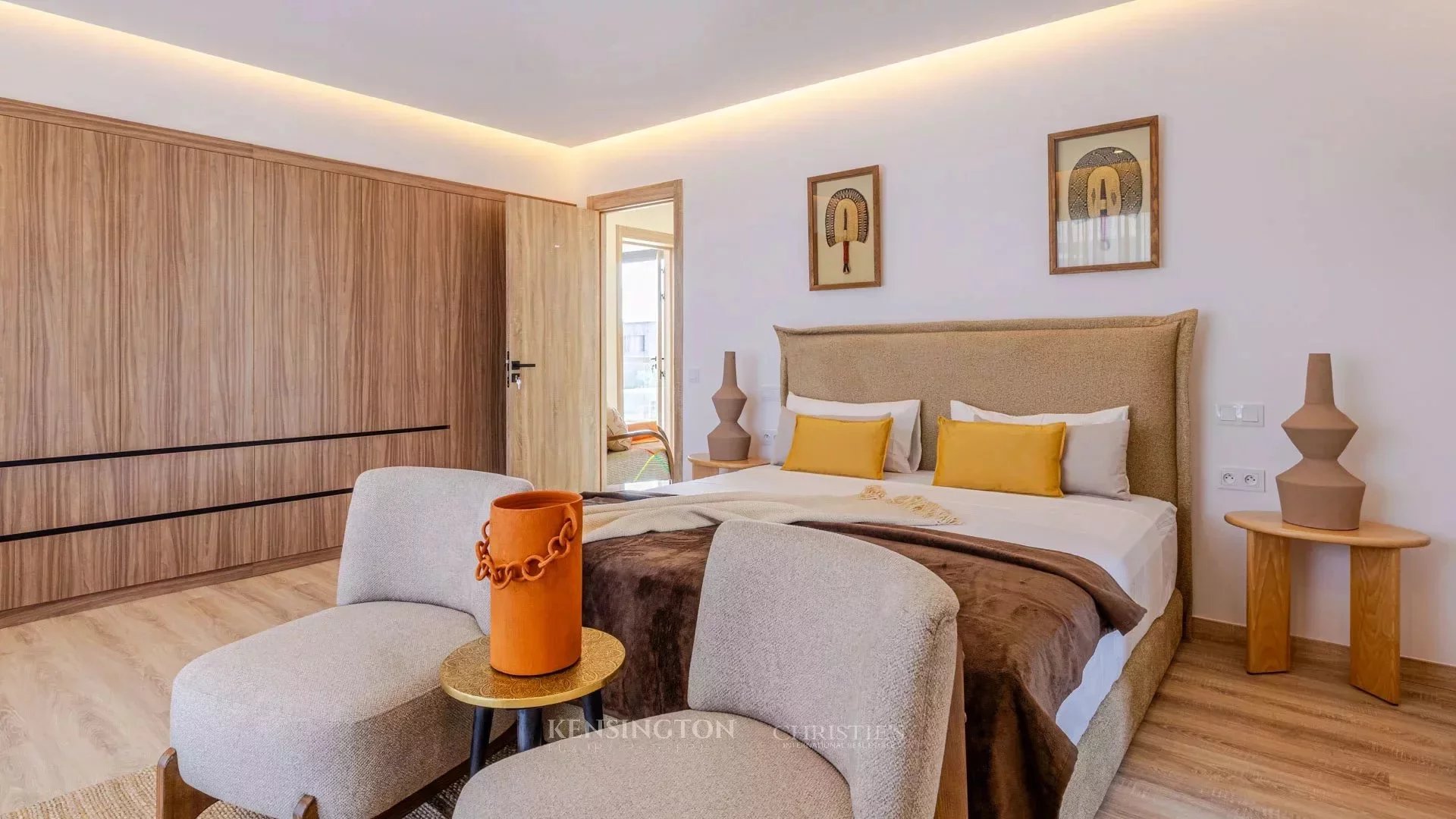 Discover this sumptuous villa on the Route de Ouarzazate in Marrakech, an invitation to luxury and comfort. With a surface area of 420 m², it offers four spacious bedrooms and six rooms, all air-conditioned. The elegant furnishings are complemented by a cozy fireplace, ideal for cosy evenings.