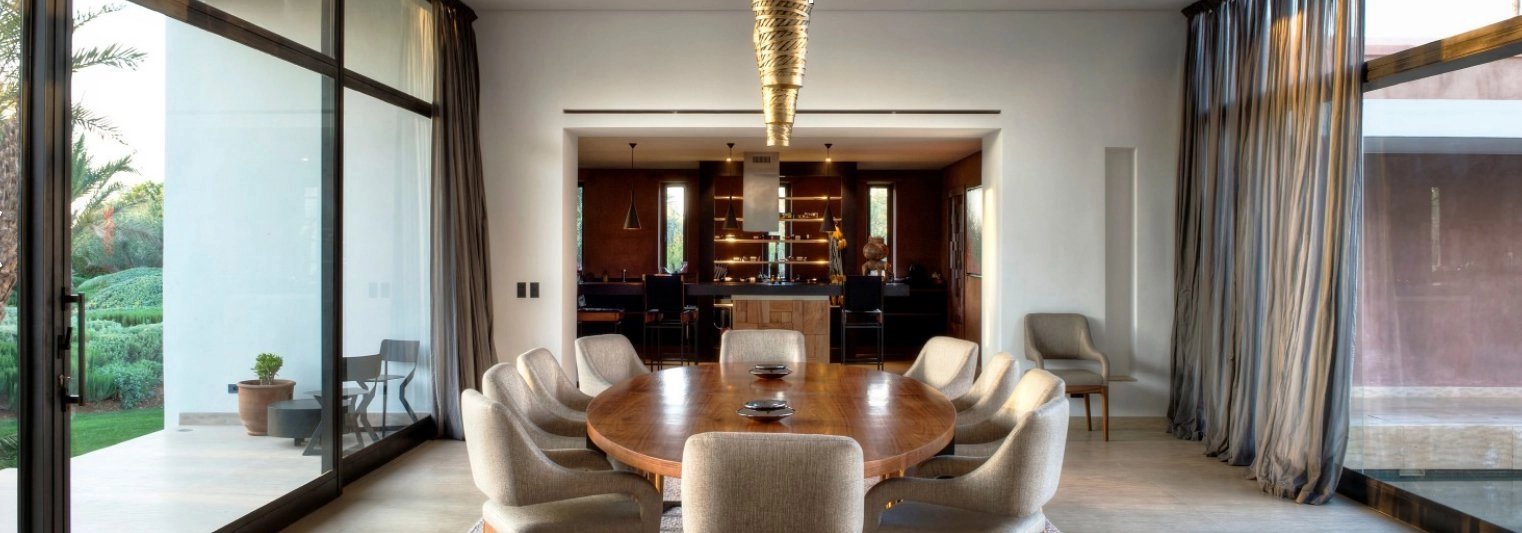 materials such as the Taza marble, Atlas Walnut
