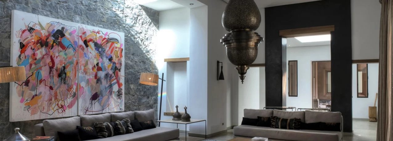 This superb contemporary property for sale in Marrakech Palmeraie is nestled in the middle of a beautiful park of over one hectare.