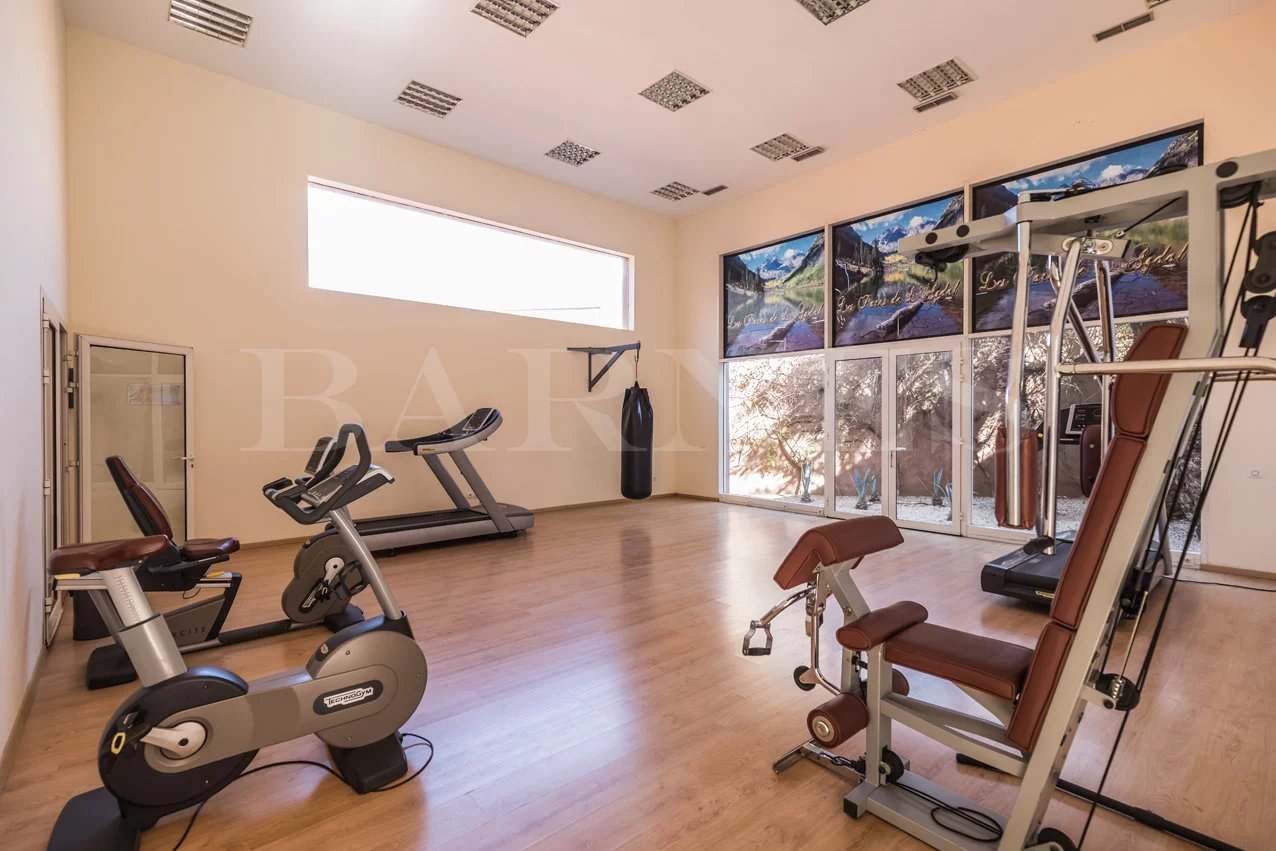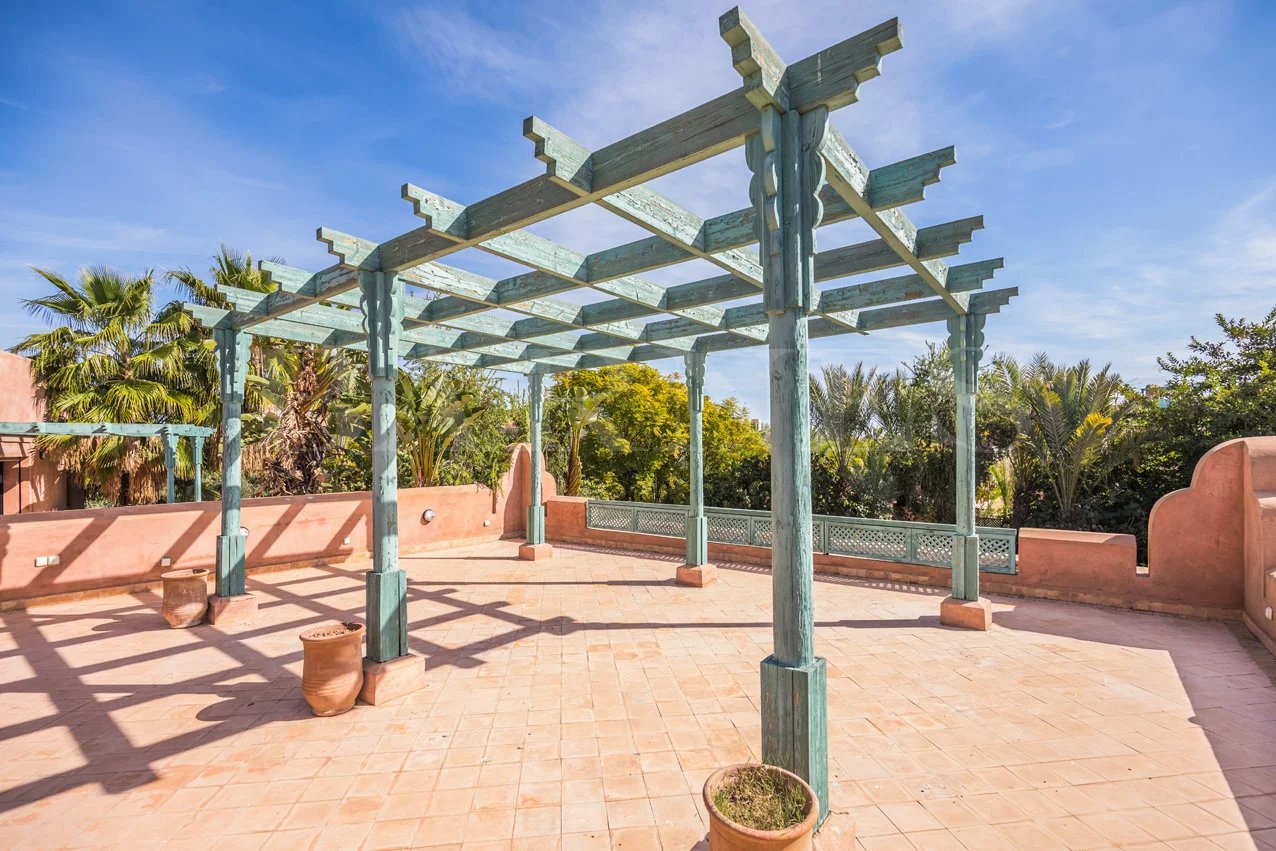 Learn moreFirst floor: a large master bedroom with complete bathroom, dressing room, and private terrace. Exit to another large terrace overlooking the Atlas Mountains. Private swimming pool, concierge, and parking.