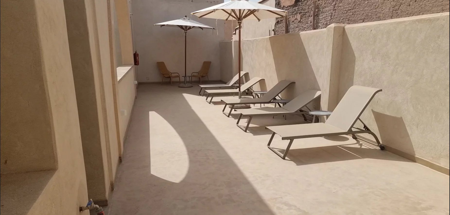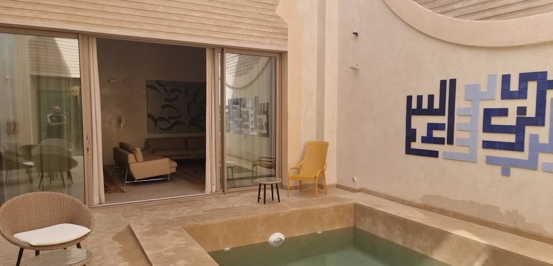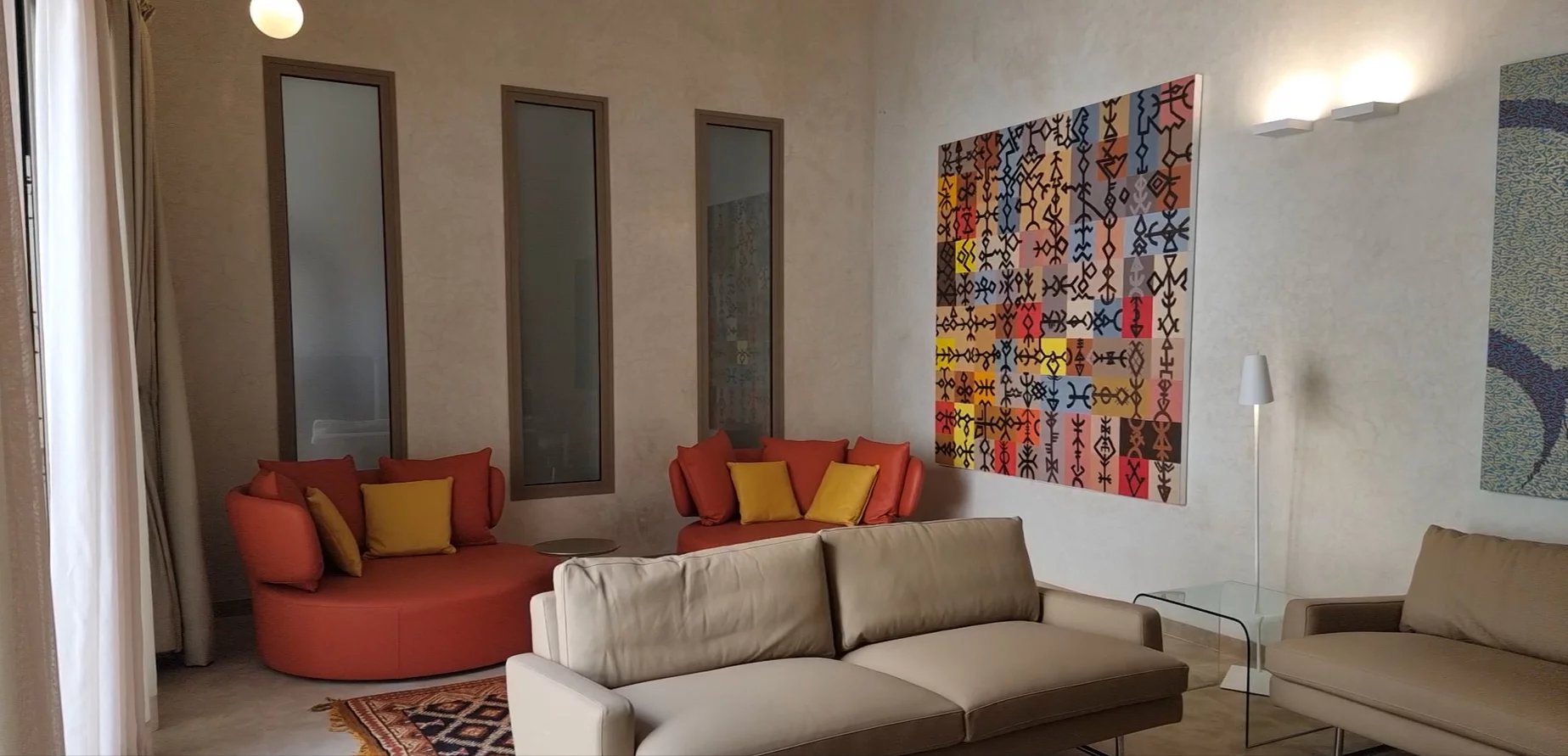 This riad, with a contemporary style influenced by Moorish architecture, has been demolished and completely rebuilt with reinforced concrete foundations and structure in compliance with seismic regulations.