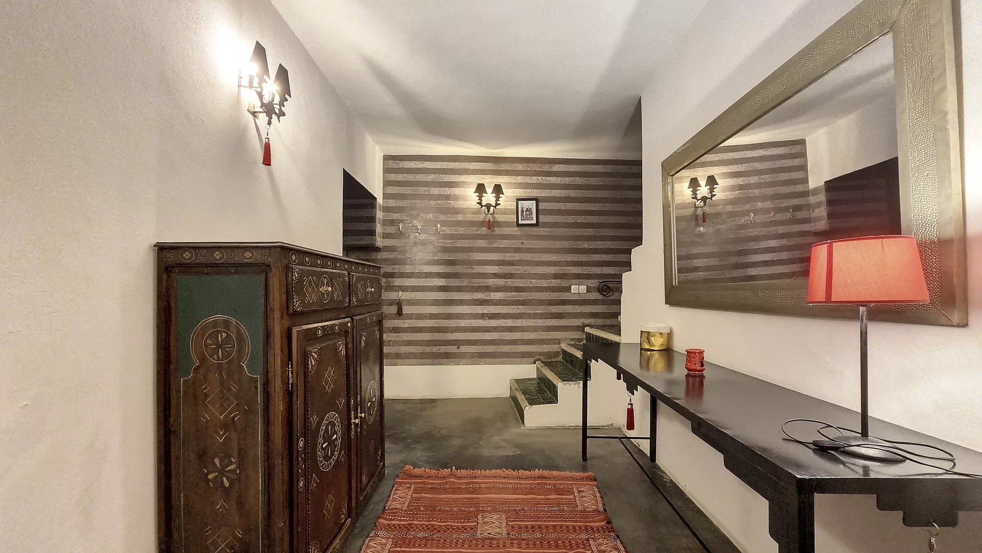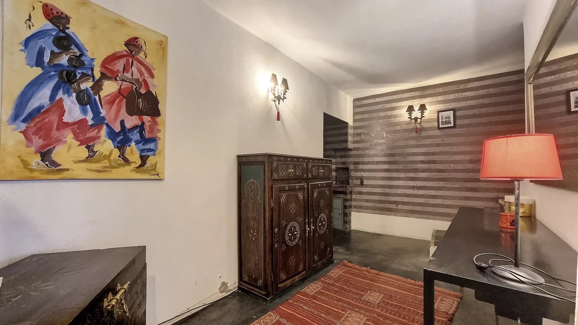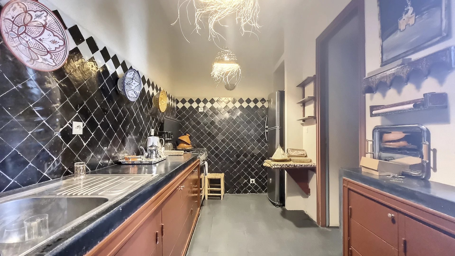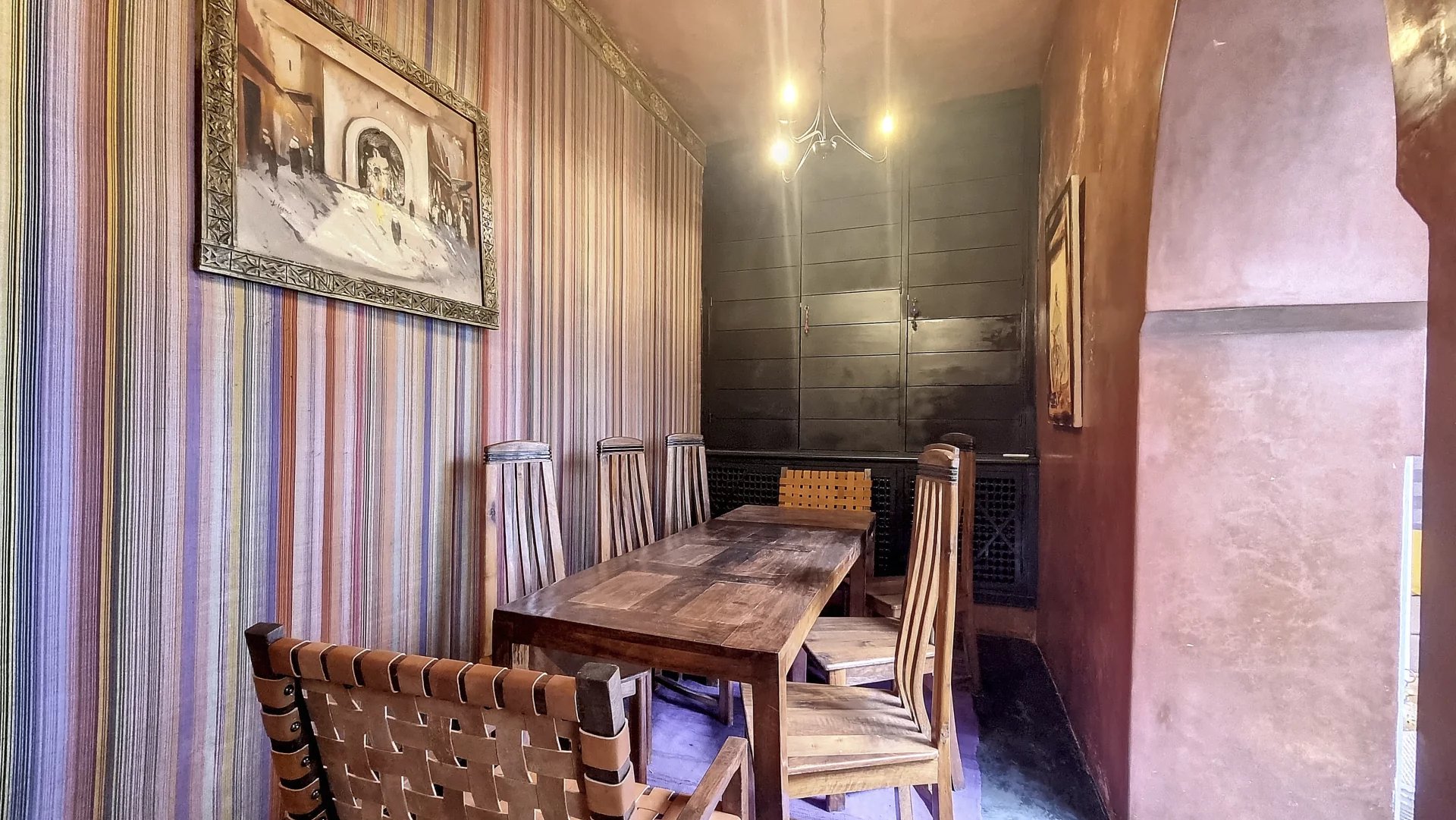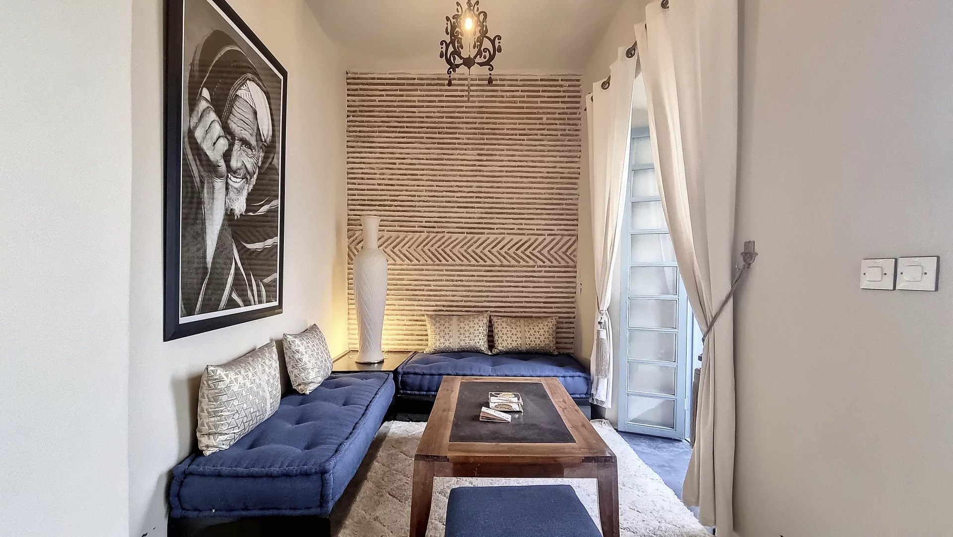 Learn moreThis modern riad of 124 m² features 4 bedrooms and a unique decoration. Spread over two levels around a spacious patio with a pool, it is bright and welcoming. The ground floor comprises a living room, a dining area, and a kitchen overlooking the pool. On the first floor, two spacious bedrooms are connected by a corridor, while two additional bedrooms are located on the terrace, offering views of the rooftops of the medina and the Atlas Mountains. Each bedroom has its own bathroom. The riad benefits from car access and nearby parking, enhancing its rental potential. Its strategic location near numerous monuments in the medina makes it an attractive opportunity for investors and homeowners. In summary, it is a perfect blend of modernity and traditional charm, ideally situated in one of the most sought-after neighborhoods of Marrakech.