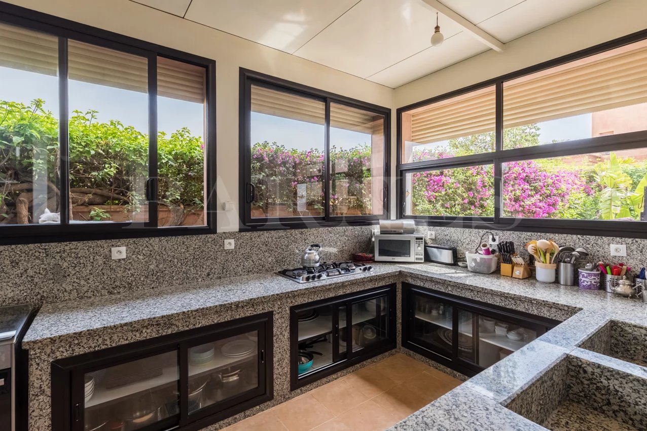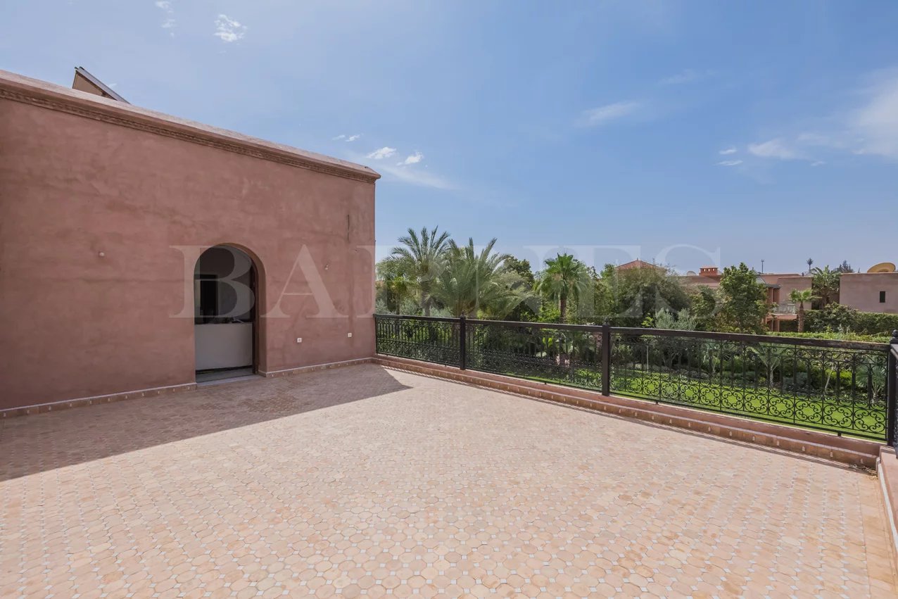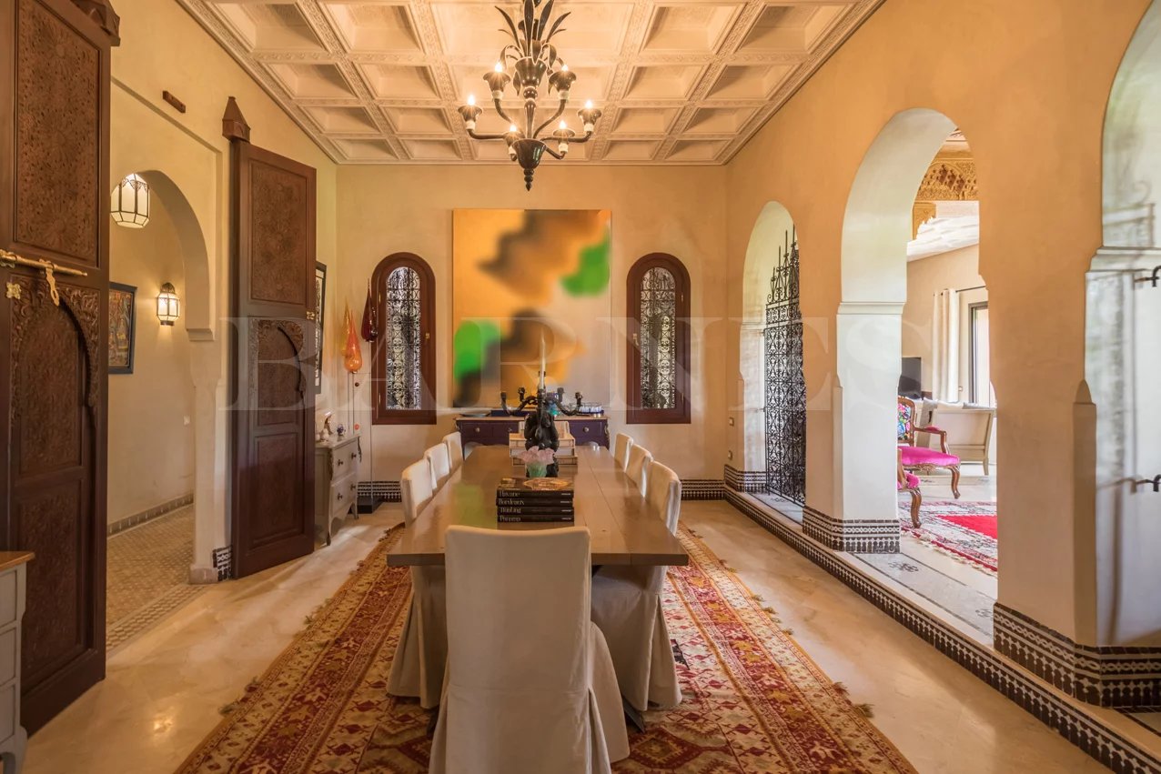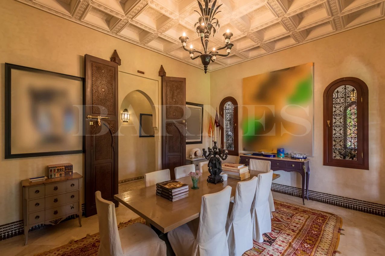 Très belle propriété à vendre à amelkis de style marocain mais décoré avec raffinement. Matériaux très haut de gammes. Sur un terrain de 2.000m² avec piscine.