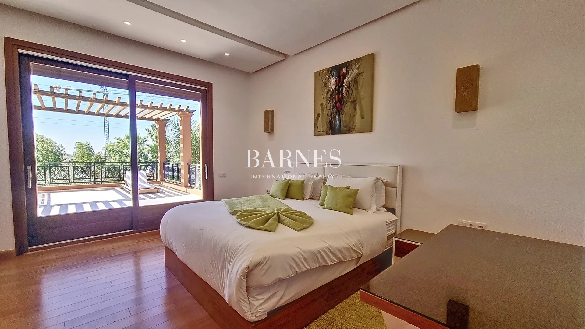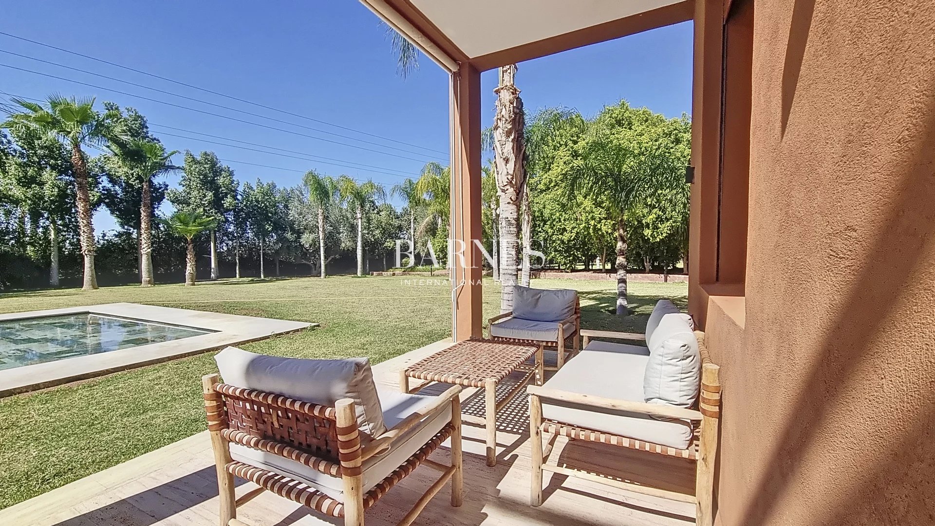 The villa is composed of a large reception area with a living room and dining room, a kitchen, and guest toilets. On the ground floor, there is one bedroom, and on the first floor, three beautiful 60m² suites, each with access to a magnificent terrace.