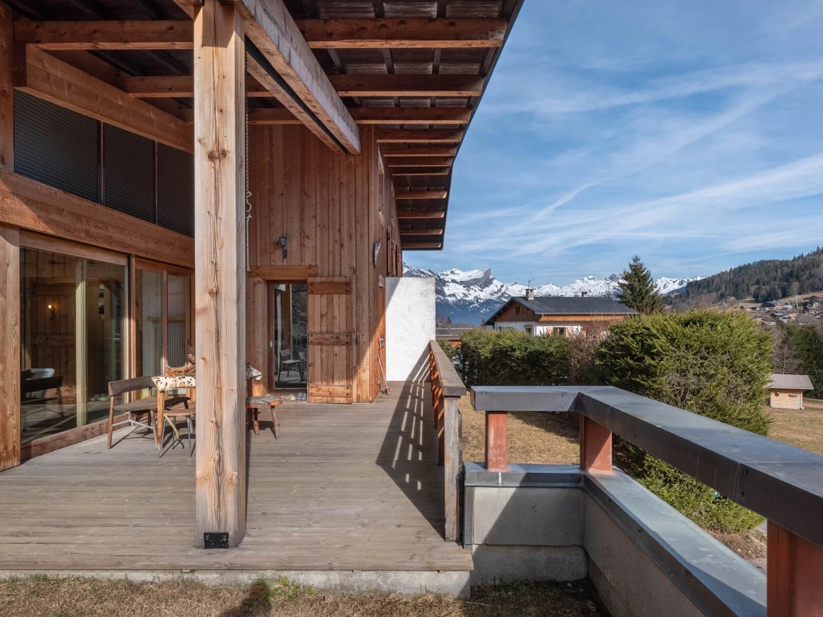 It is ideally located in a peaceful setting, benefiting from a southerly aspect and offering panoramic views of the surrounding mountains.