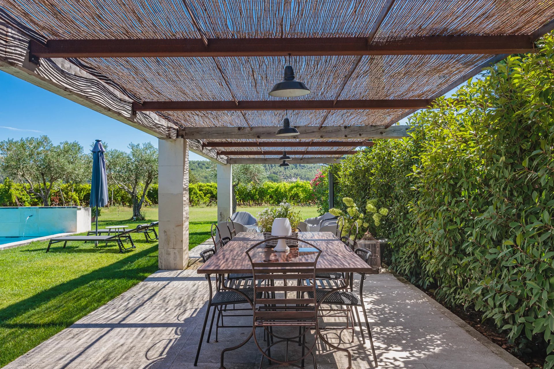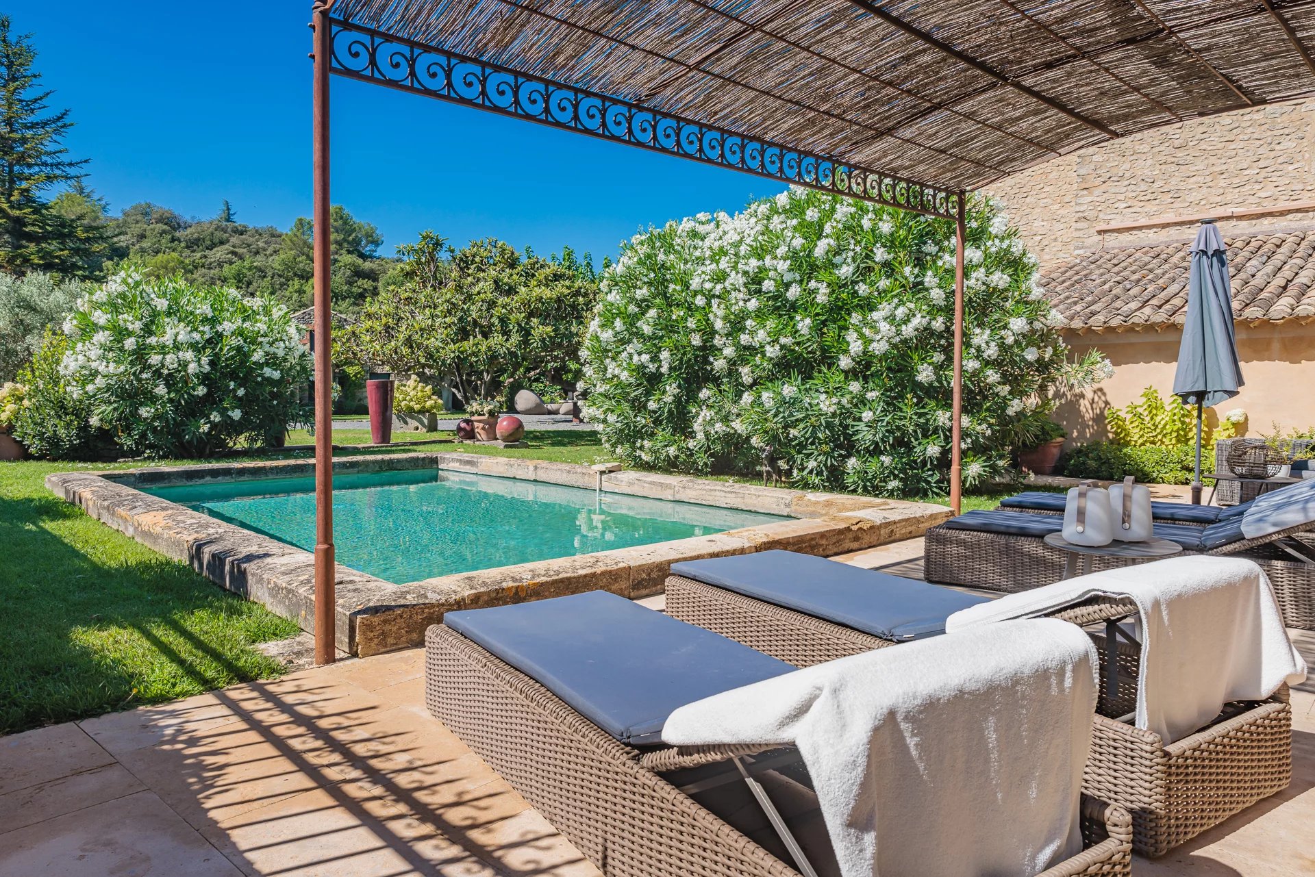 A magnificent courtyard shaded by a century-old mulberry-tree provides access to elegant, comfortable and spacious living rooms that combine traditional and contemporary materials, giving the property an atmosphere that combines modernity and authenticity with a touch of the South.