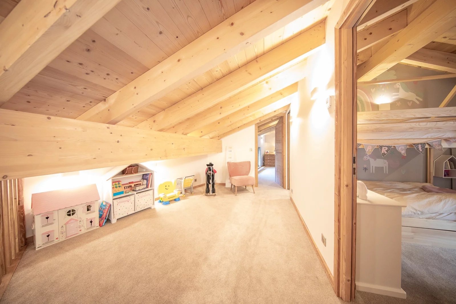 Built last year and finished to a really high standard, this property is perfect for a family looking for a base from which to enjoy the very best of winter and summer mountain life, with a big garage, perfect for parking a car and leaving room for many bikes, skis, and snowboards.