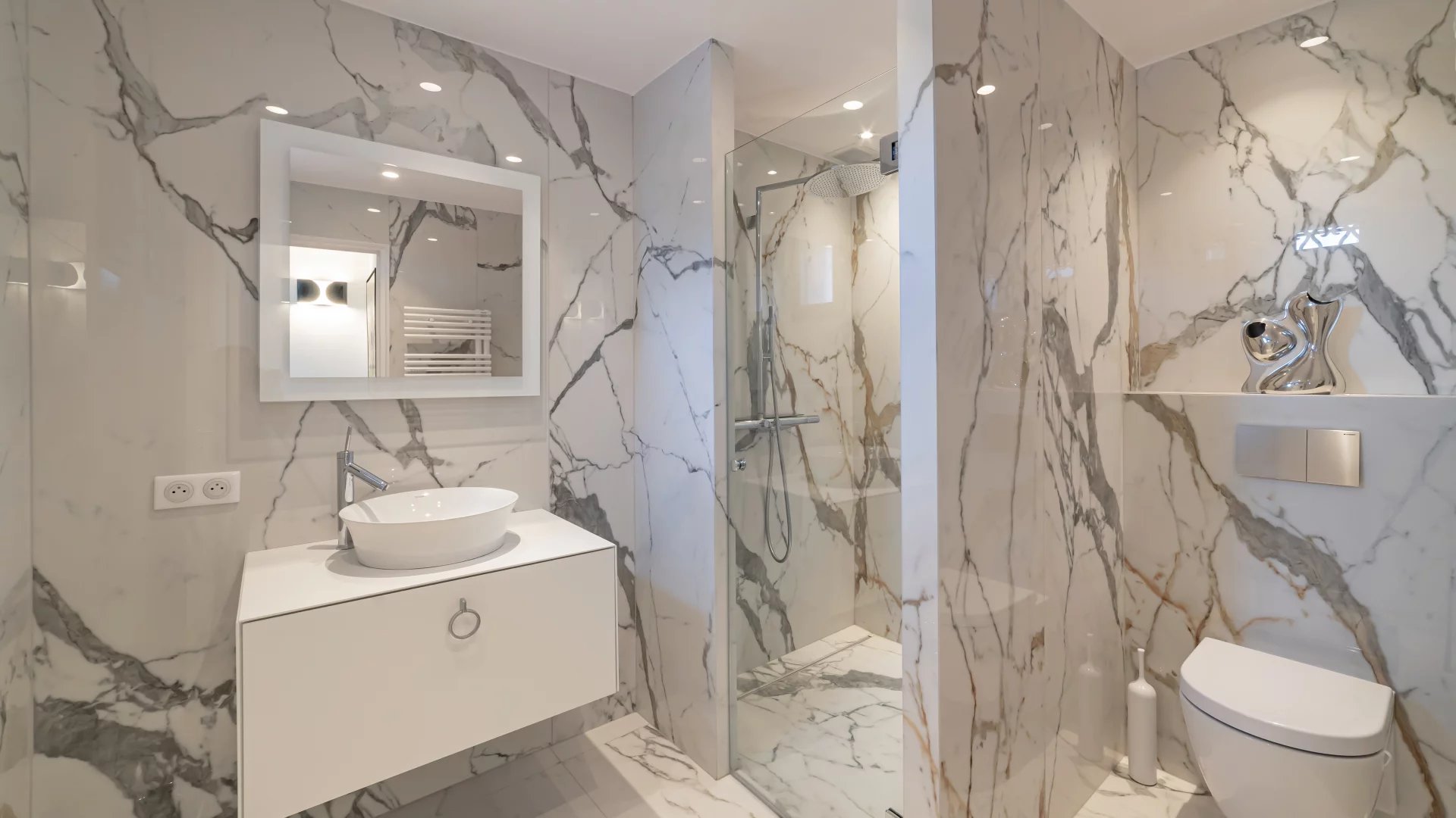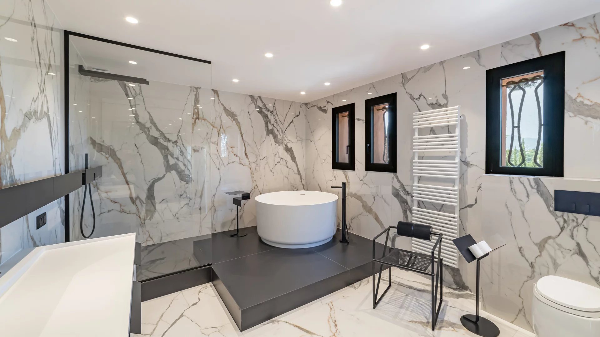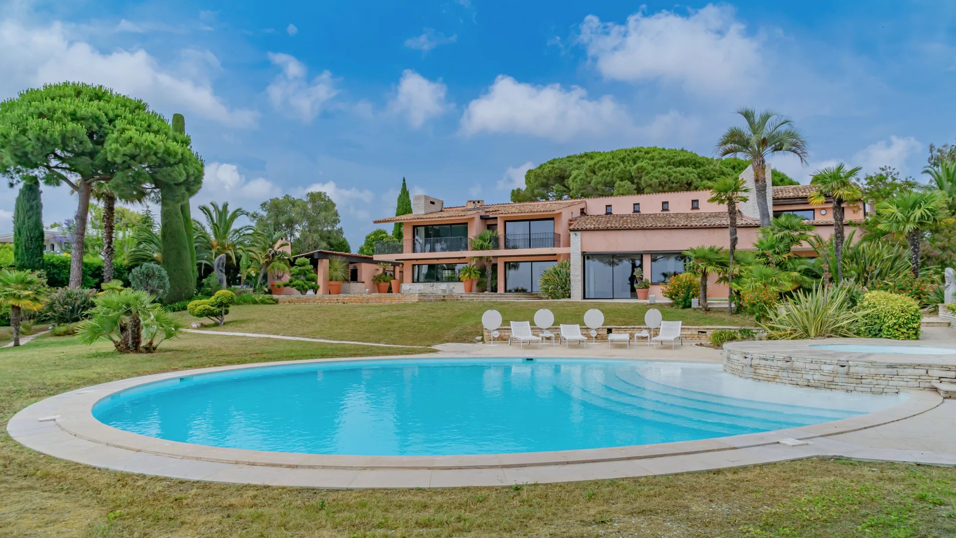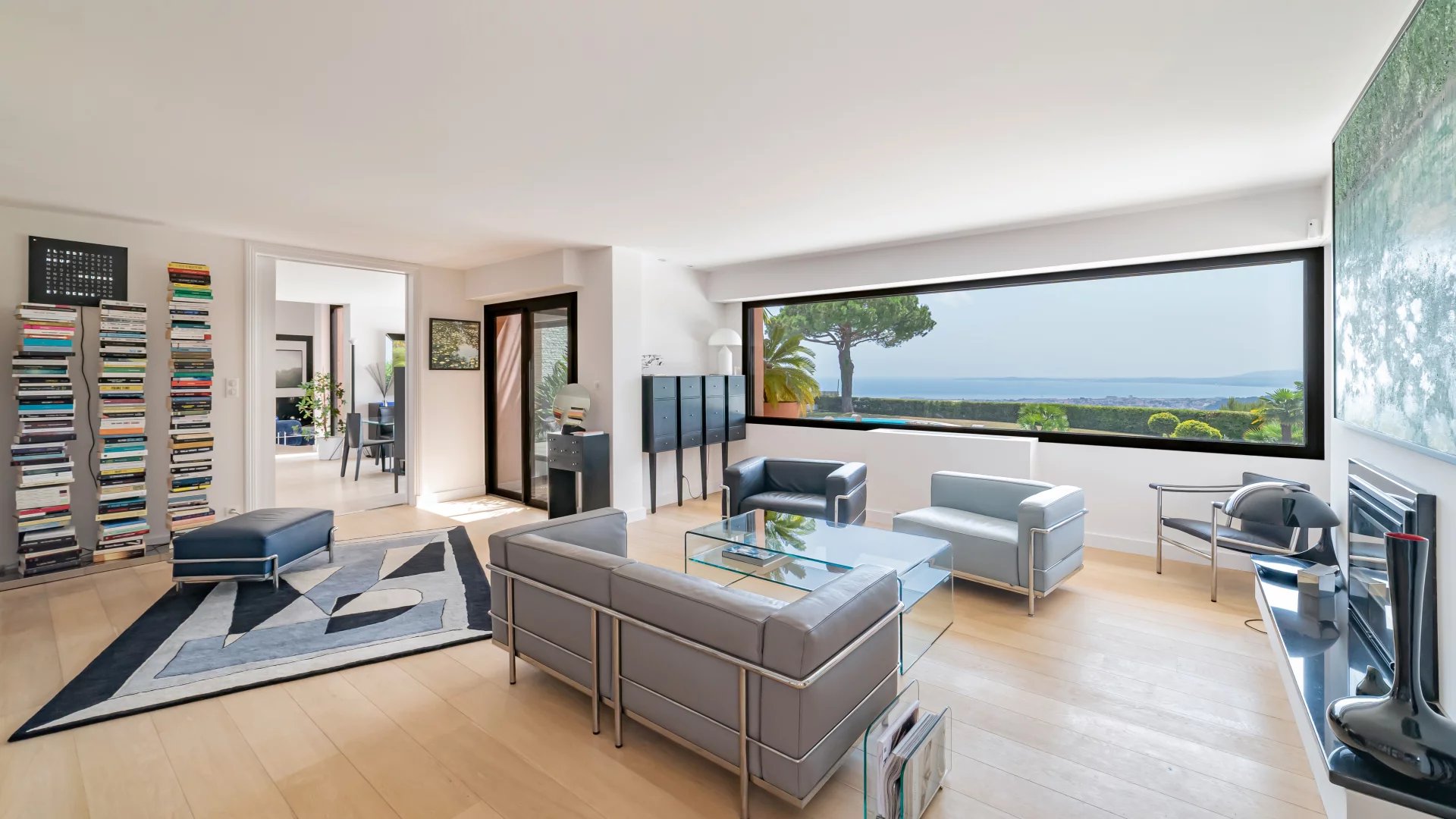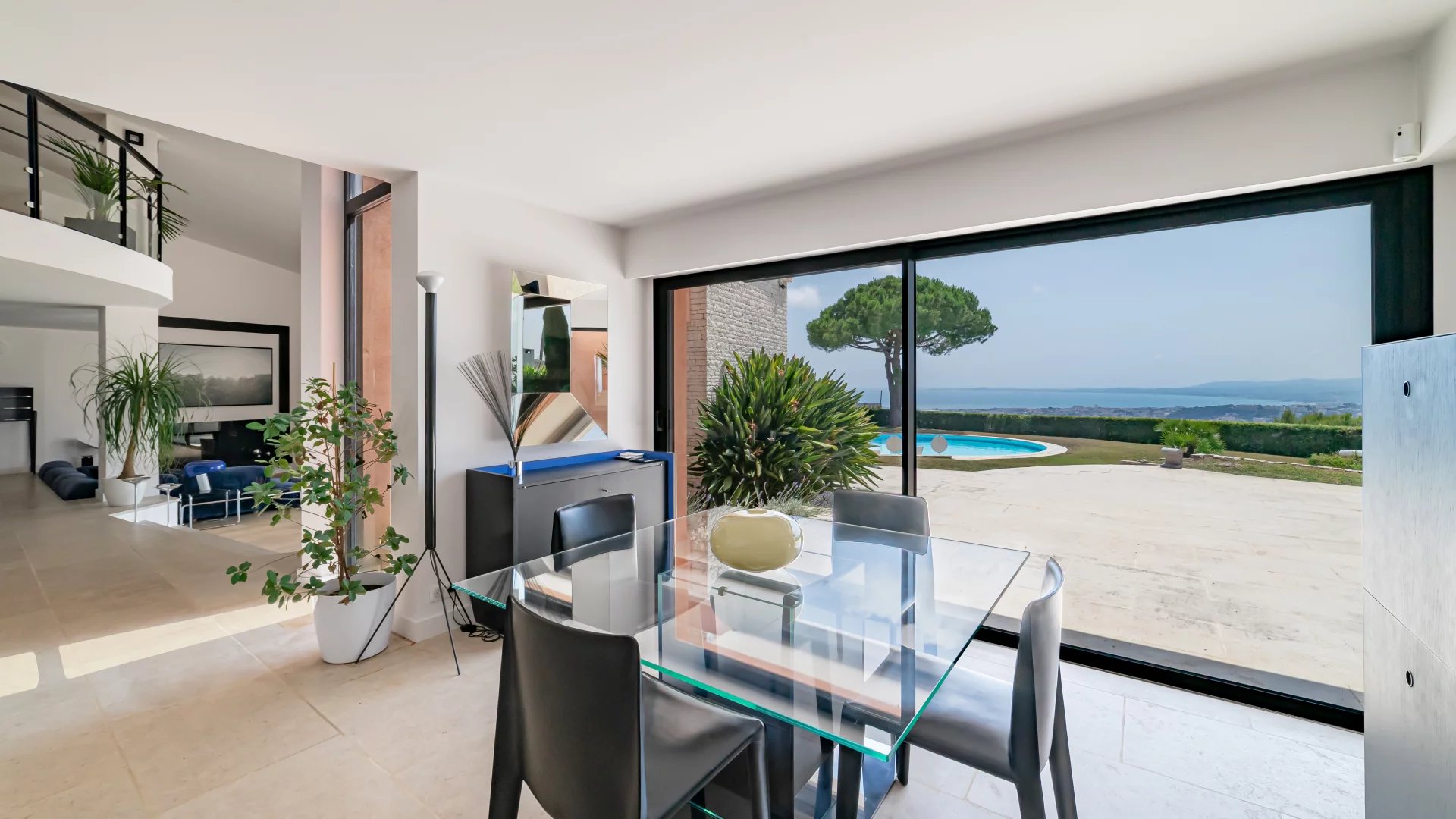 Behind a Provençal-style façade, the interior reveals a contemporary atmosphere. Generous volumes, clean lines and large picture windows allow natural light to flood in and create a seamless connection with the garden and the sea.