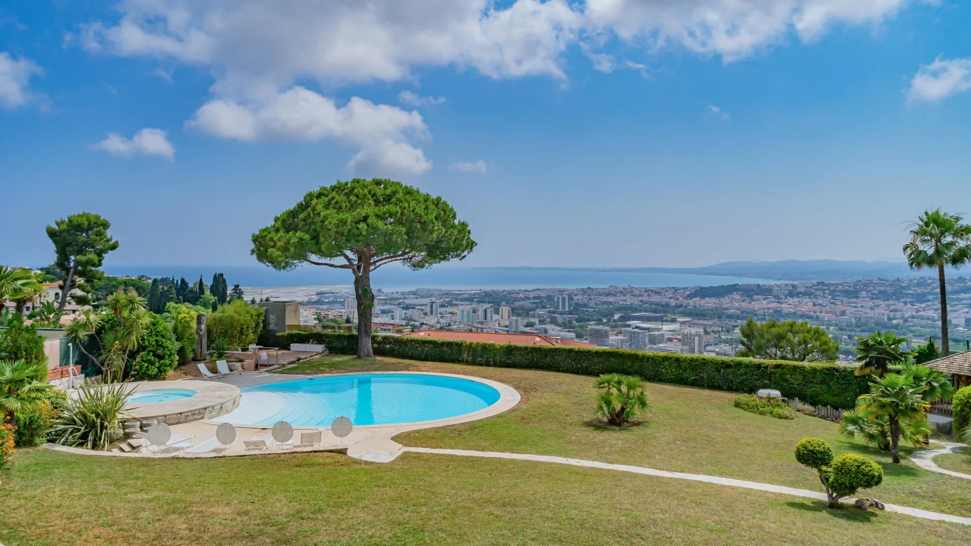 Located in the hills above Nice, close to the city center, the airport and the sea, this fully renovated property enjoys an exceptional location while offering complete privacy. Set on a flat plot of 4,855 m², the 465 m² villa benefits from full southern exposure and panoramic views over the bay.