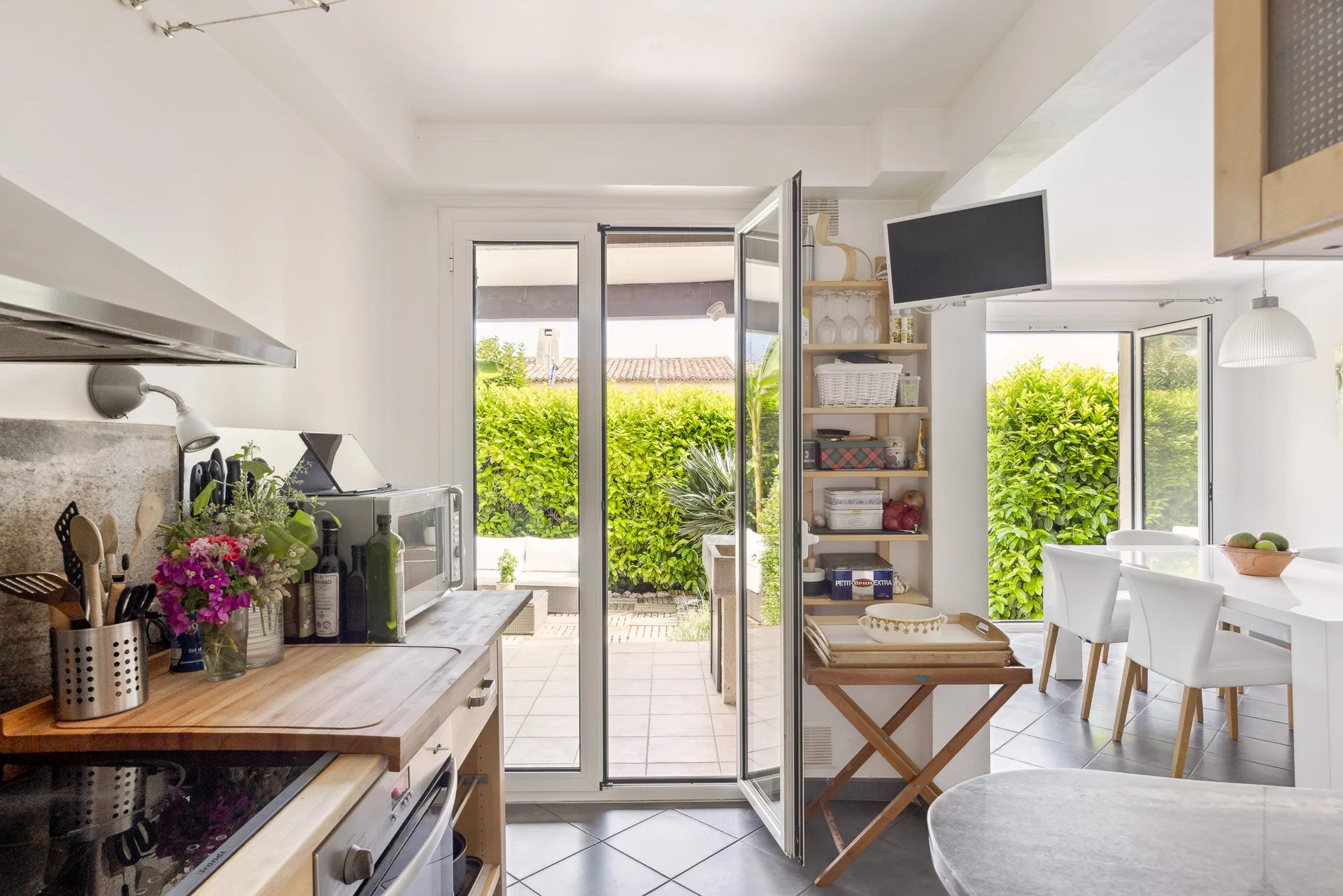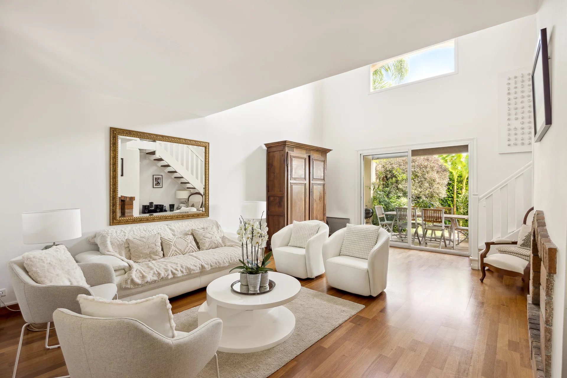 Built on two levels, it features a cathedral ceiling living room bathed in light, complete with fireplace, and opening onto generous terraces and a garden that invite you to relax. The garden level comprises a fitted kitchen, a dining area, a bedroom with en suite shower room and a utility room.