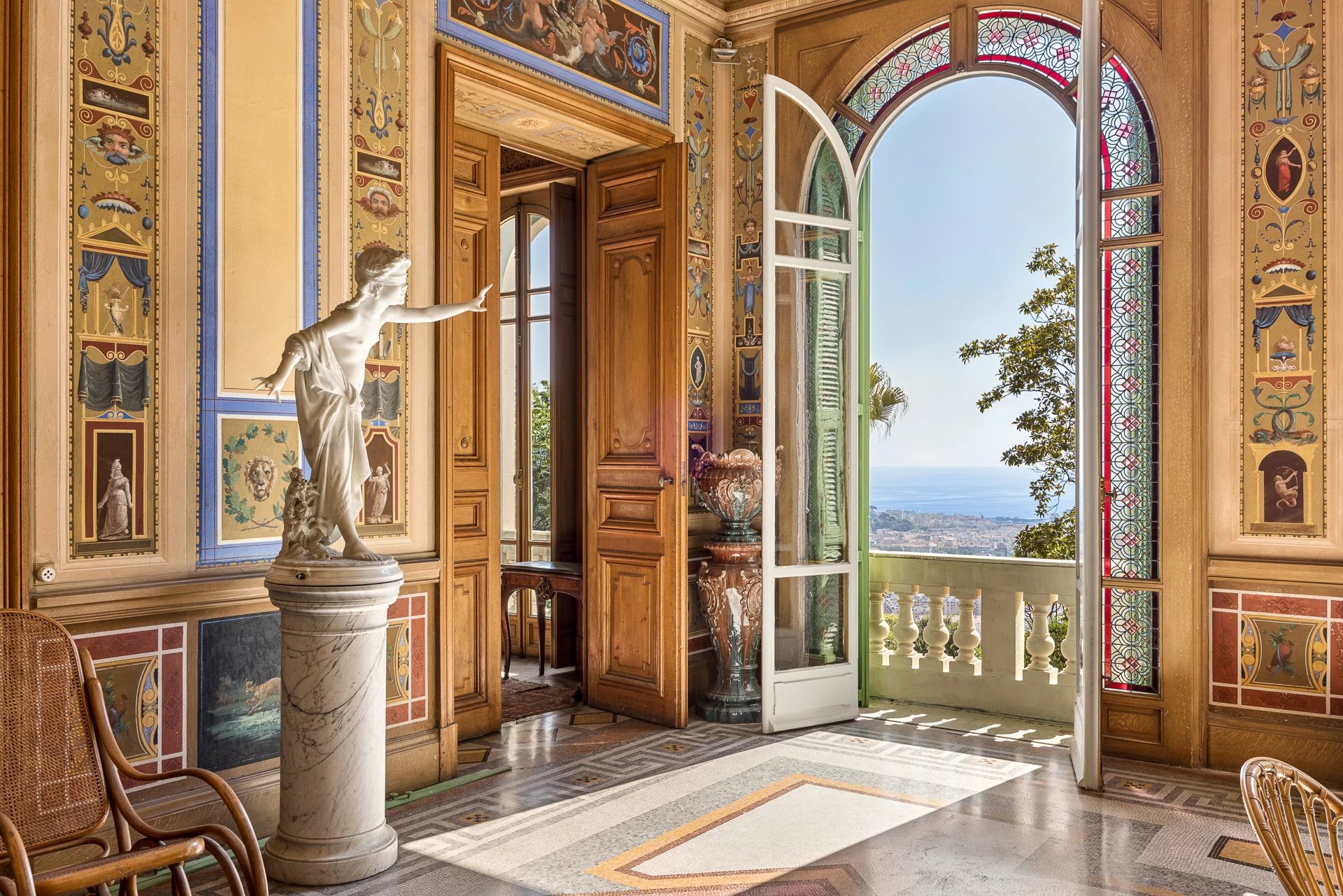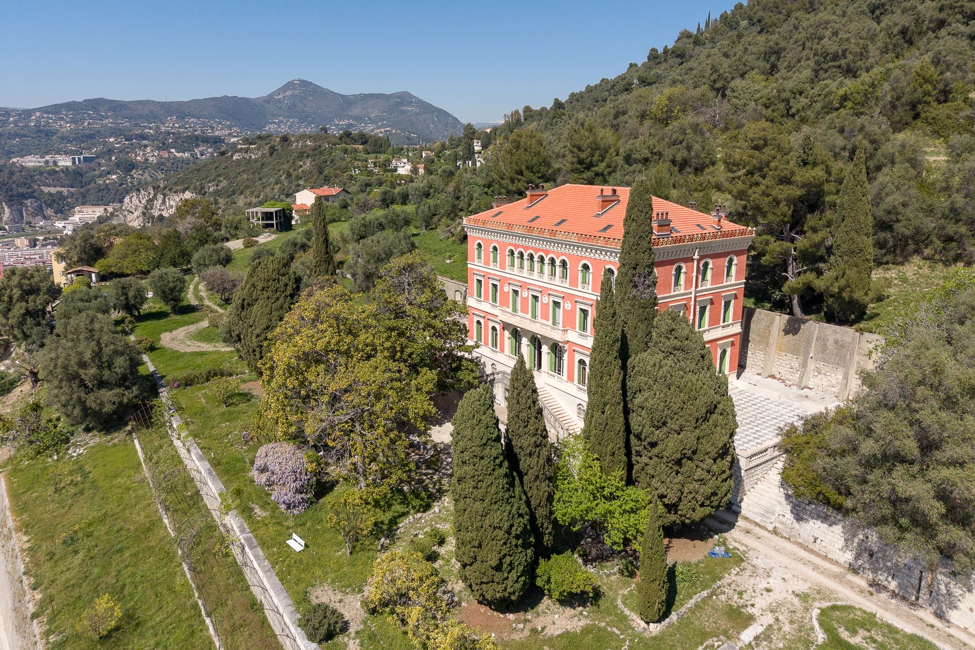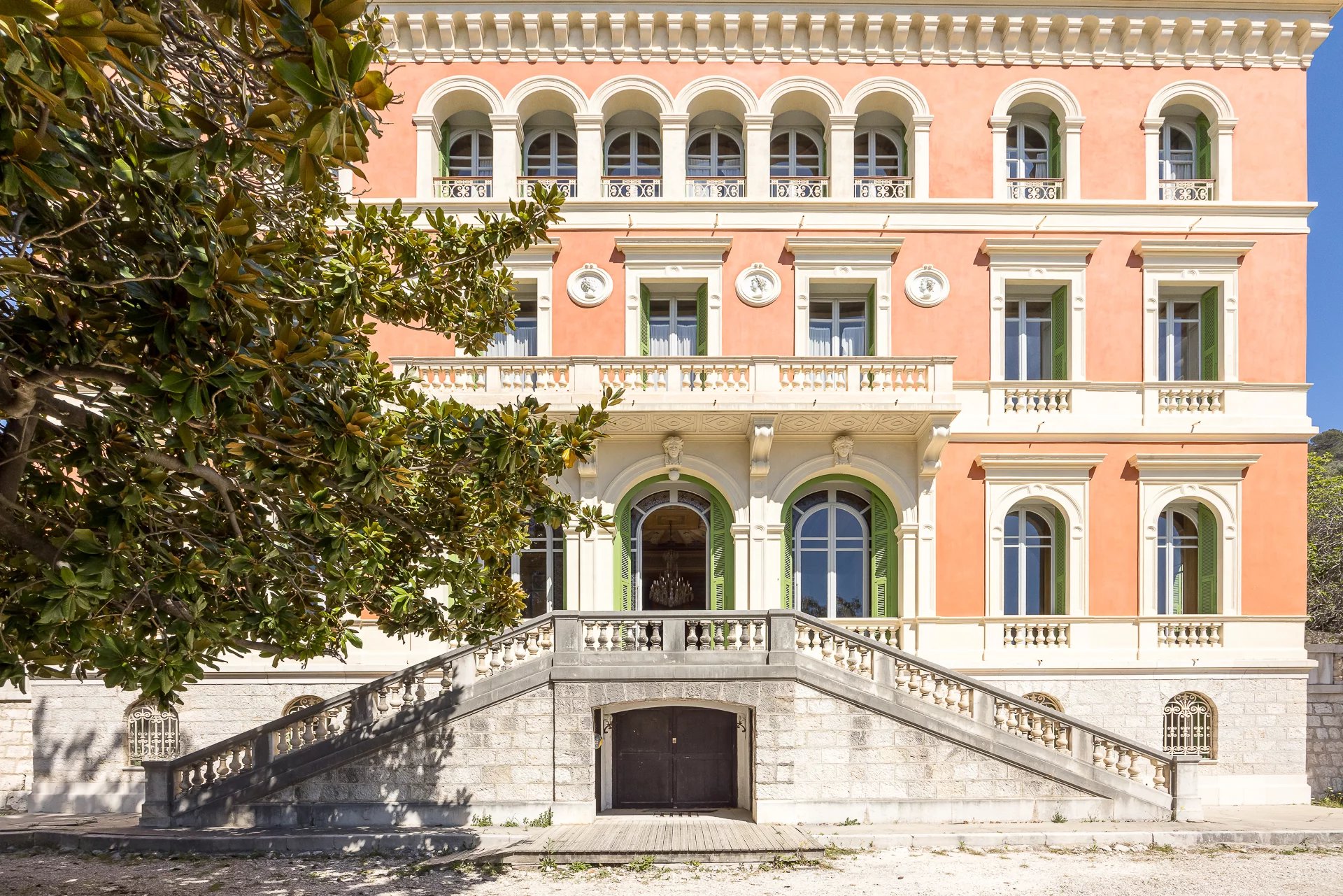 Overlooking the city of Nice, this late 19th-century property offers spectacular views of the Mediterranean and the rooftops of Nice, in a setting that is both peaceful and steeped in history. Listed as a Historic Monument, it embodies a rare architectural style, directly inspired by the Italian Renaissance.