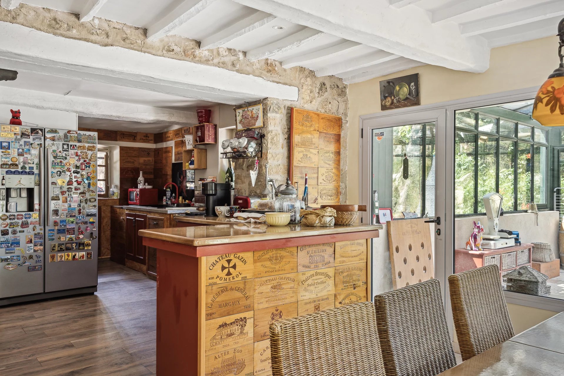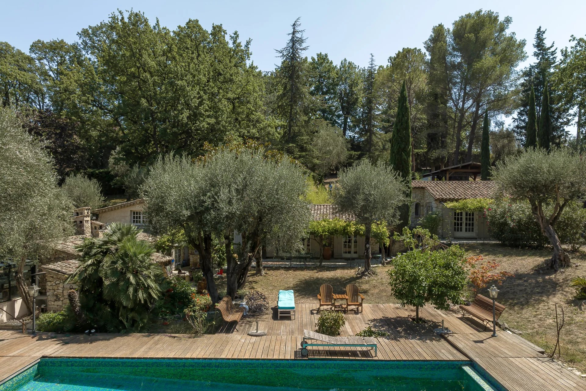This house is a jewel for stone lovers. With a comfortable surface area of 245 sqm, it offers three large en-suite bedrooms, a cosy living room with fireplace, a dining kitchen and a pleasant veranda with views over the garden. The 6,000 sqm land offers numerous flower-filled terraces, a romantic gazebo, an infinity pool and an exotic wooden deck. Charm and tranquillity for nature lovers. Walking distance from shops. Possibility of extension.