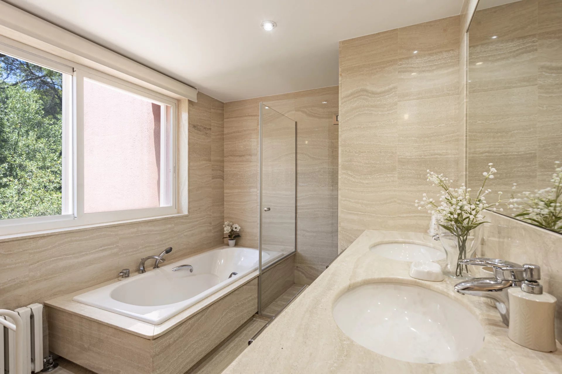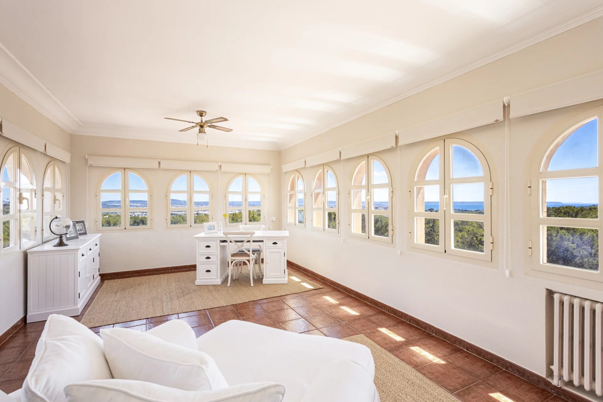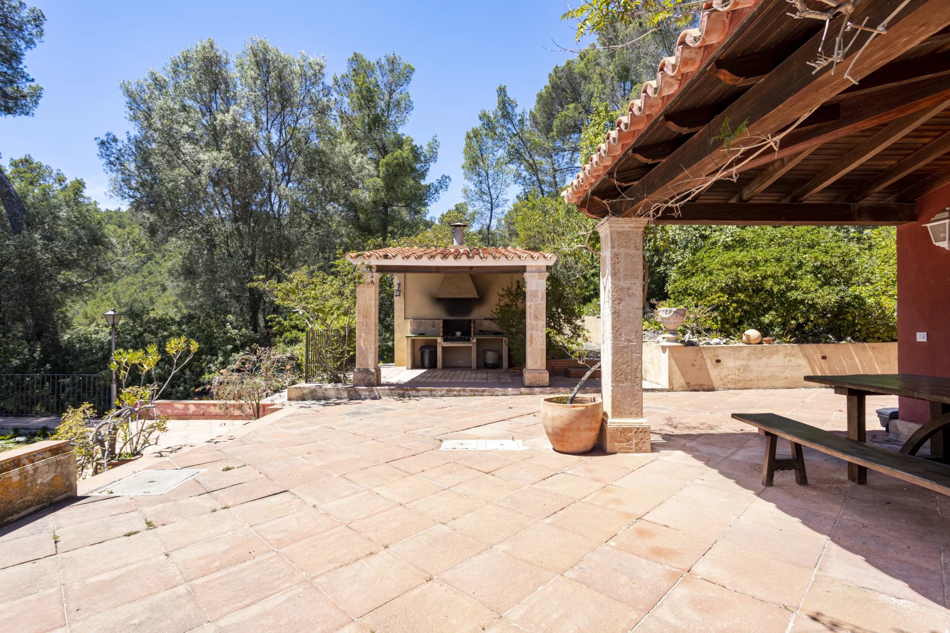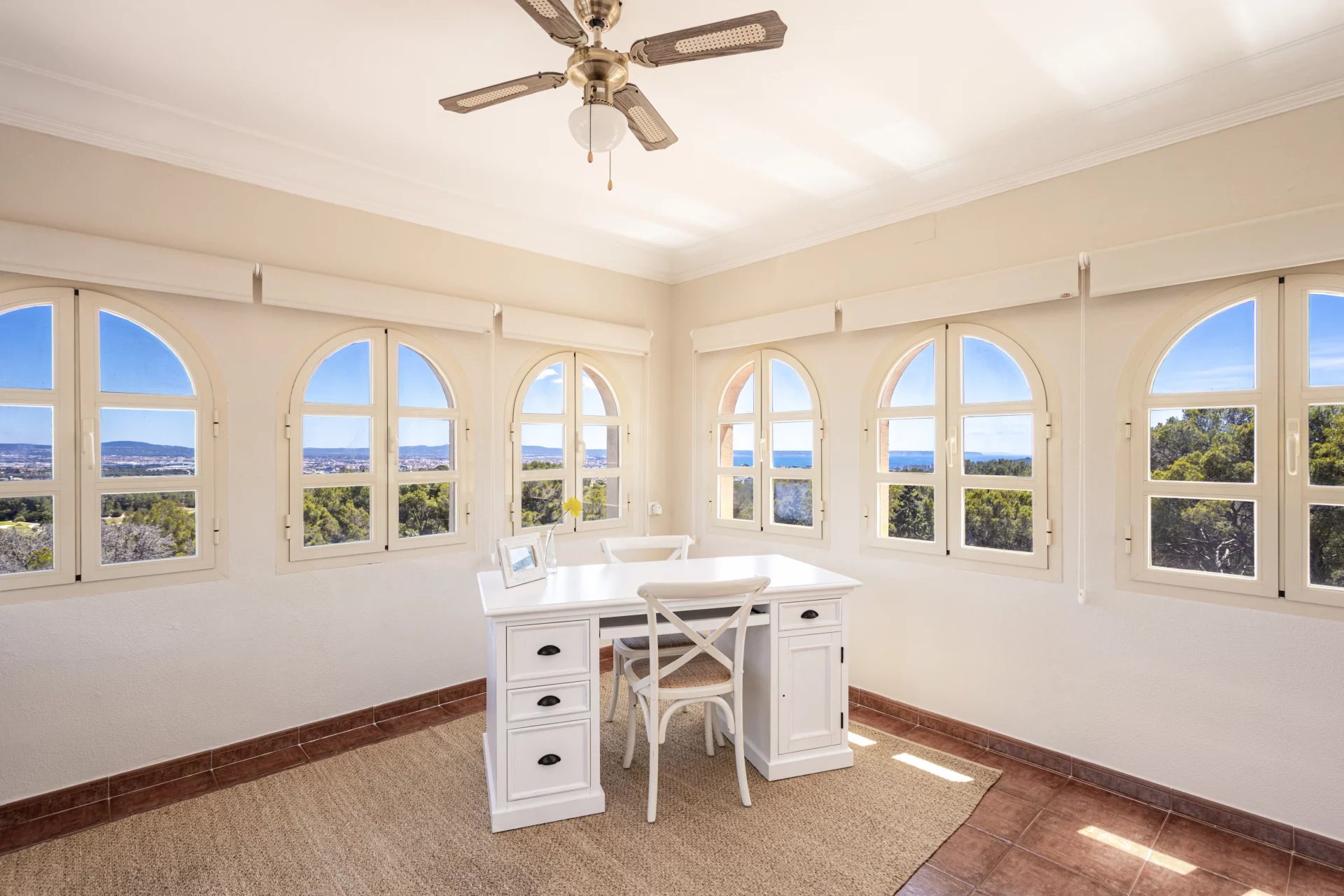 This beautiful holiday Villa is located near Son Vida. The Villa is just right for sports friends. The golf course is located within walking distance, adventurous hikes through the mountains can be started directly from the Villa and the private tennis court also offers another sporty challenge. The net living area of approx. 500 m2 is distributed over 4 floors, connected by an elevator, and houses 4 bedrooms. Ground floor: small guest apartment with kitchen, bedroom, and bathroom, entertainment room, laundry room, engine room, wine cellar. First floor: kitchen, dining room, living room, guest bathroom, 1 bedroom with bathroom en-suite, direct access to the covered terrace and barbecue area. Second floor: bedroom with bathroom en-suite and dressing, 2 bedrooms sharing a bathroom, small living area with beautiful views. Third floor: gallery with beautiful views. License number for vacation rental: L12E 9624.