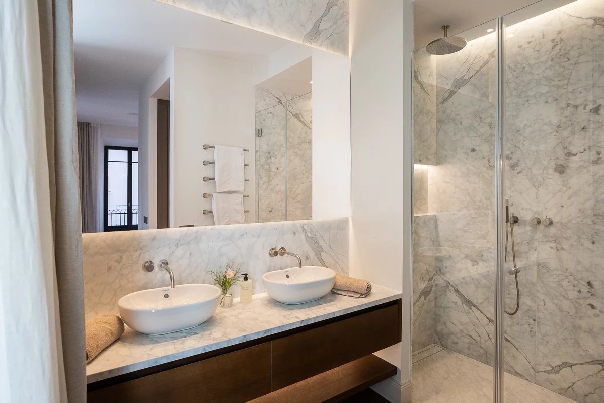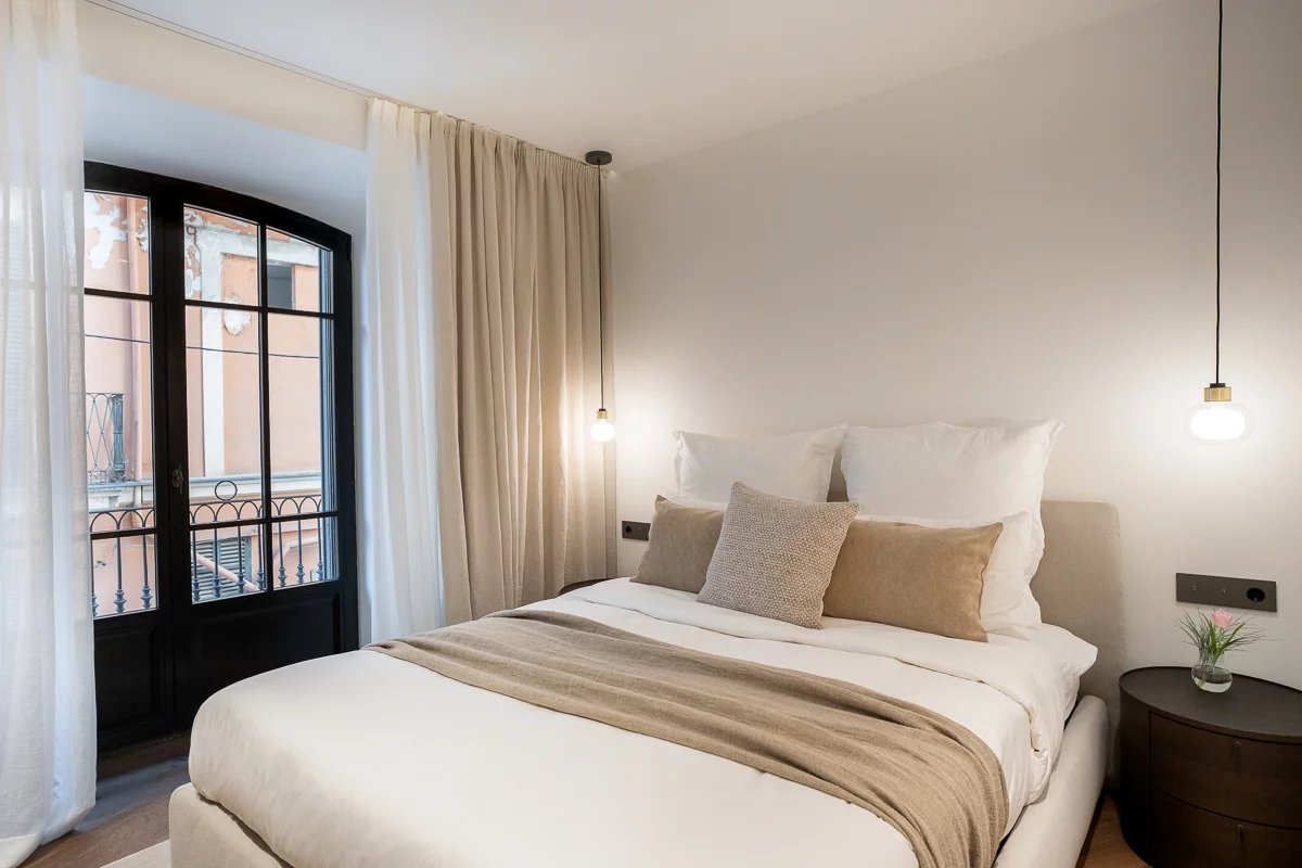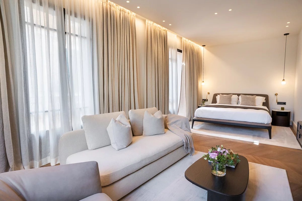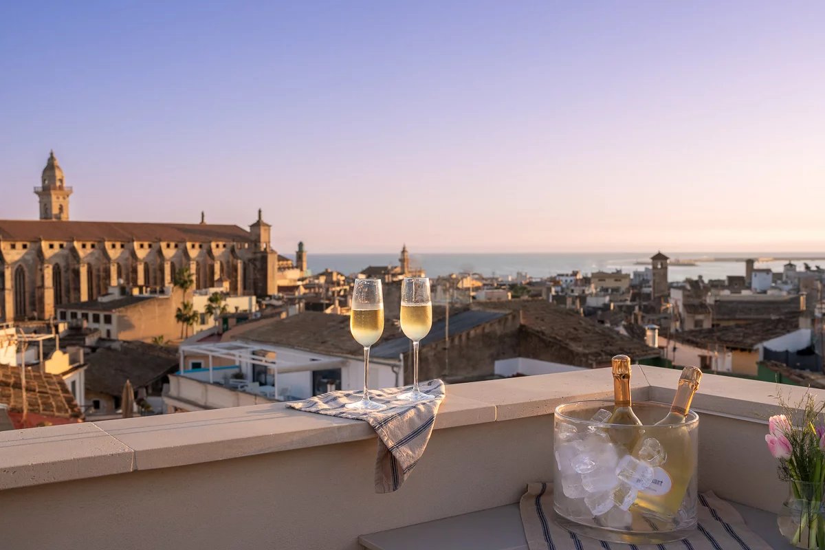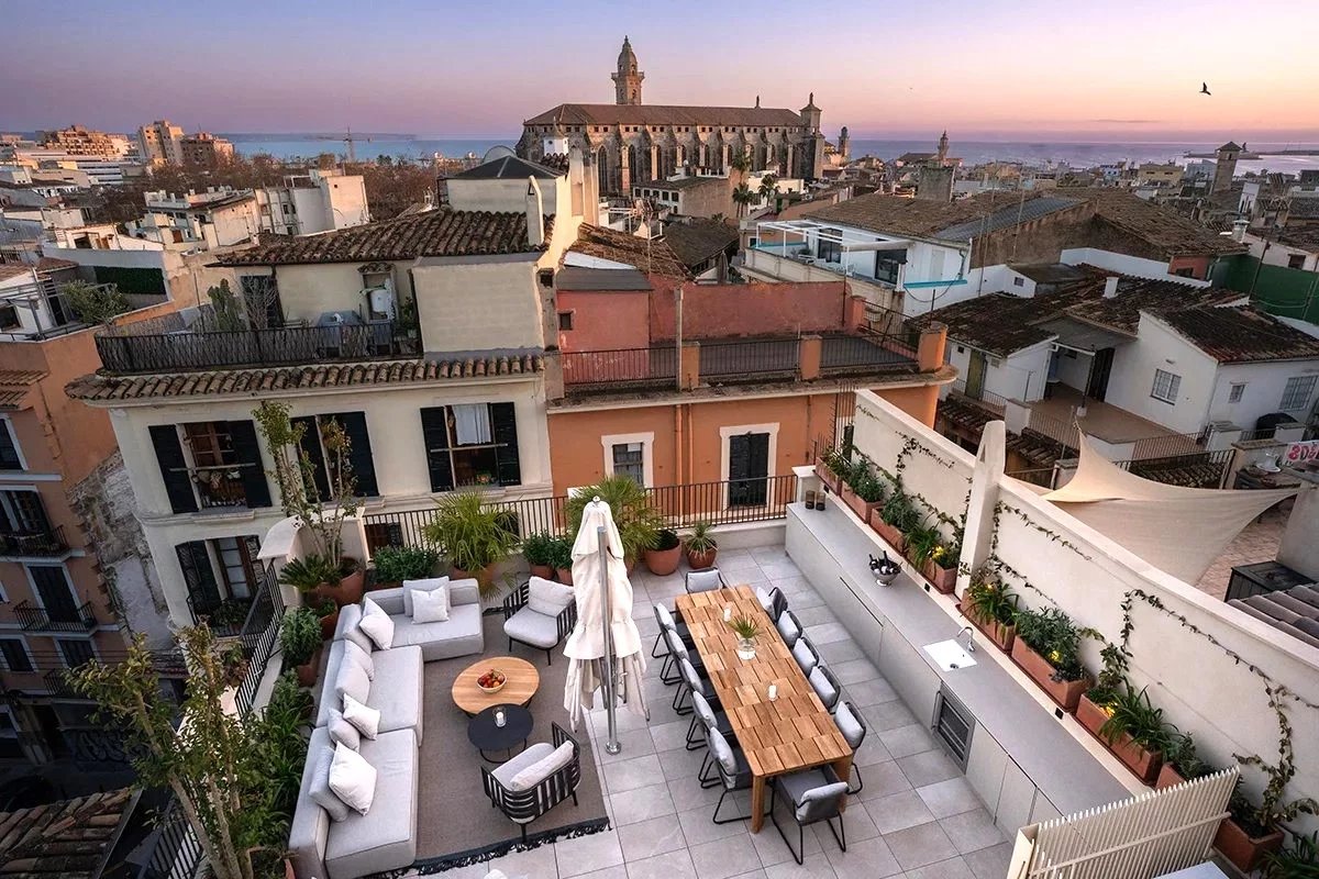 This bespoke design offers a seamless transition from the ground floor to the rooftop terrace, where you can have sweeping views of the Cathedral and the azure Mediterranean as you enjoy the sun on the sunbeds or a meal cooked in the fully furnished outdoor kitchen. At the additional rooftop Champagne bar, you have an undisturbed 360-degree view overlooking everything from Palma Bay to the impressive mountain backdrop. This is truly one of the most spectacular views of Palma Old Town.
