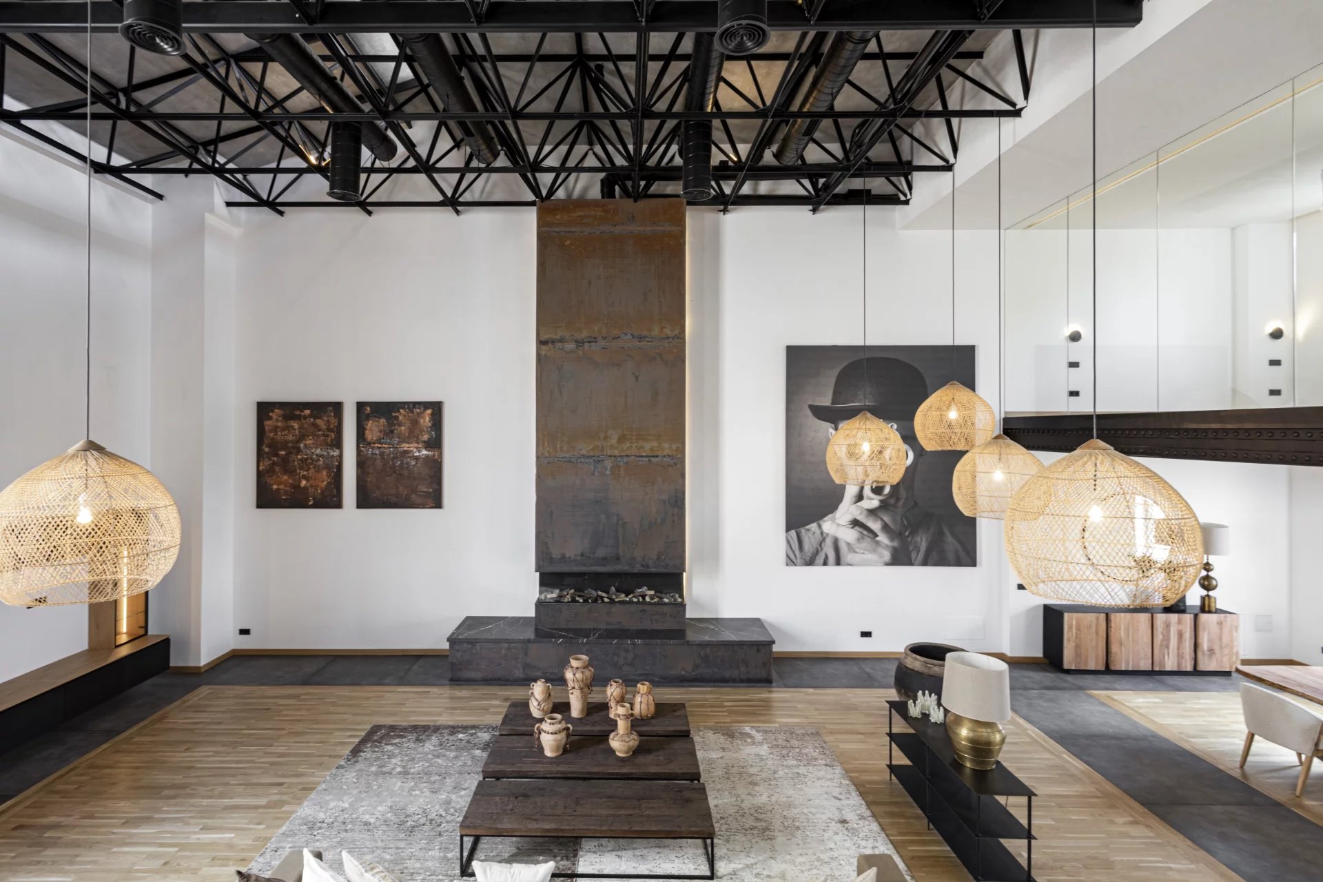 Upon entry, one is impressed by its 6.80 m2 high ceilings, immense natural light, and the space the property offers. The ground floor includes a magnificent 166 sqm open plan layout, including a fully fitted kitchen with an island and casual seating, a formal dining area, and a living area with an open fireplace.