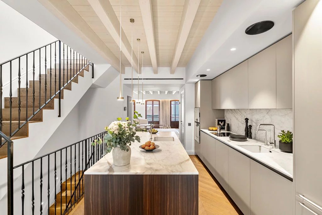 The Townhouse Llorenc showcases an array of top-quality brands and bespoke elements, including Poliform carpentry, Gaggenau and Miele appliances, Giopato & Coombes lighting, Bang & Olufsen audio systems, Roda outdoor furniture, and Loro Piana textiles. Additional highlights include custom-designed marble details, Flos lighting, Vola fixtures, and Sonance Invisible speakers, all selected to create an unparalleled living experience.