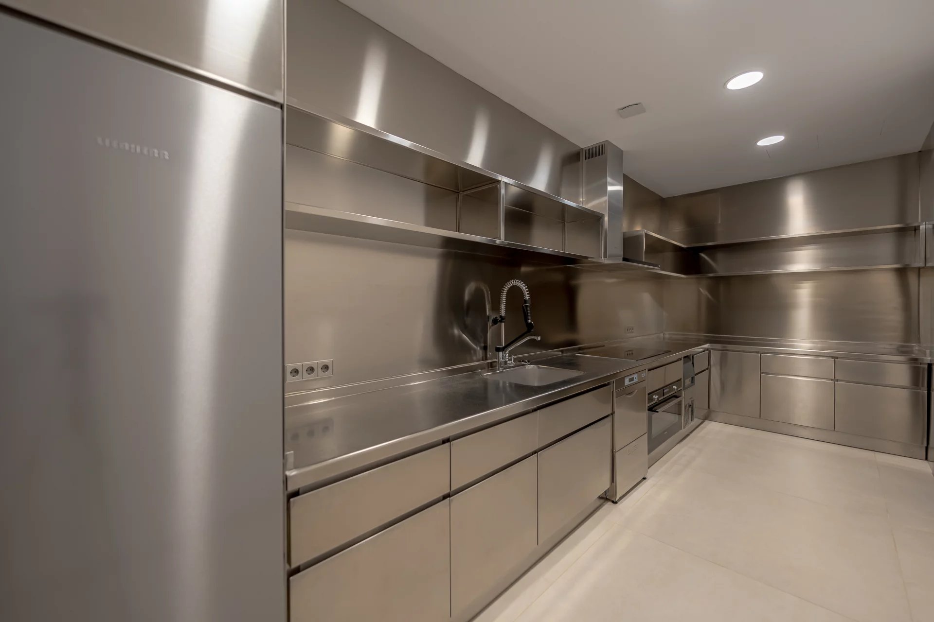 On the ground floor, you’ll find an impressive entrance hall, a private office, and a guest lavatory. The home boasts two kitchens — a show kitchen and a service kitchen — that flow seamlessly into the outdoor dining area and the spacious living-dining room, complemented by a cosy TV area. This level also features a guest bedroom with an en suite bathroom, a laundry room, and a state-of-the-art gym and spa equipped with wet and dry saunas, direct outdoor access, and a full bathroom.
