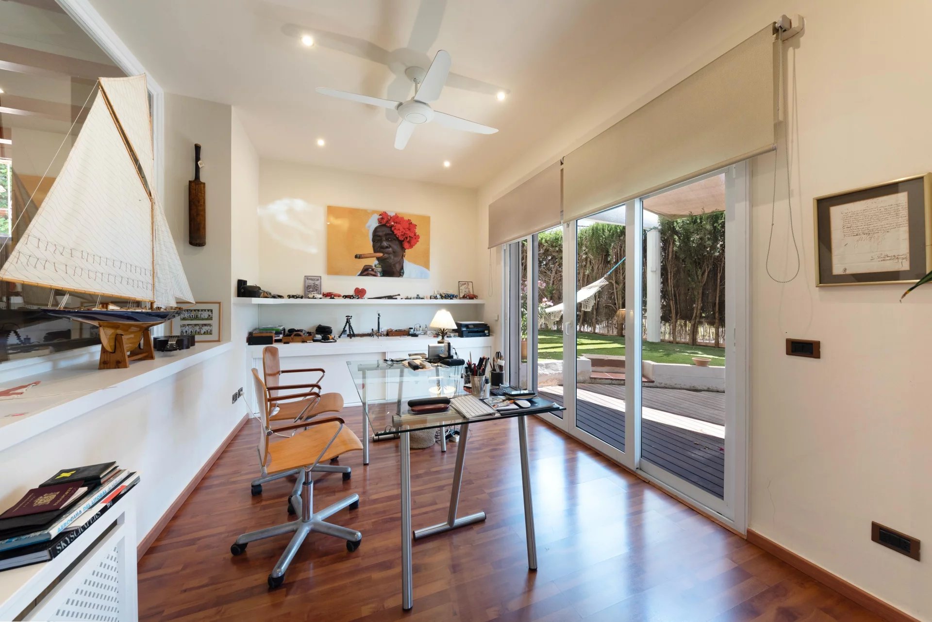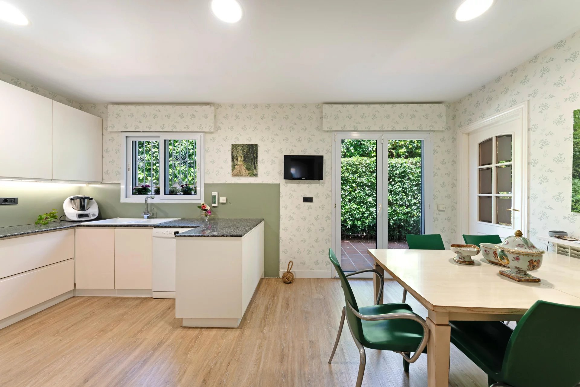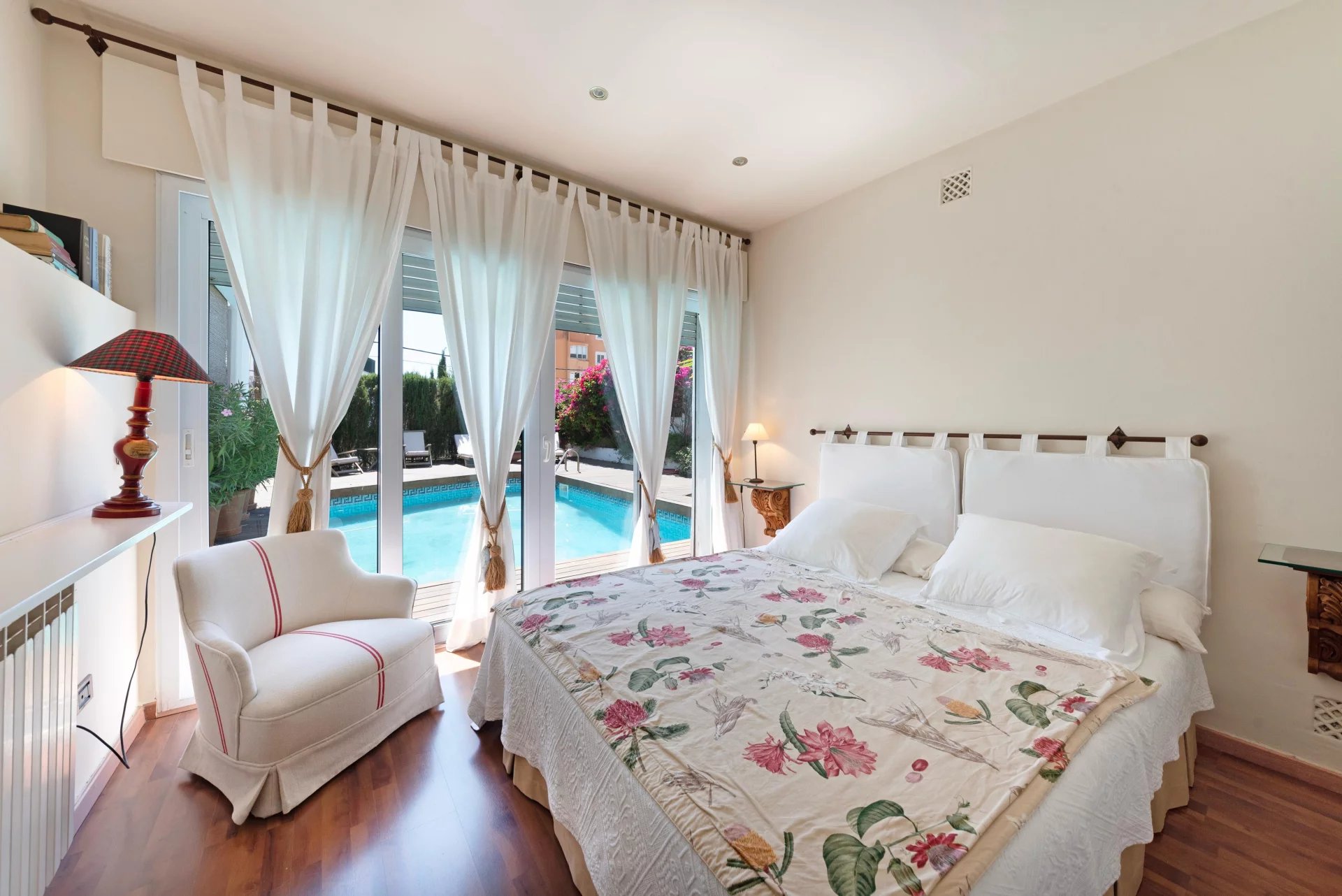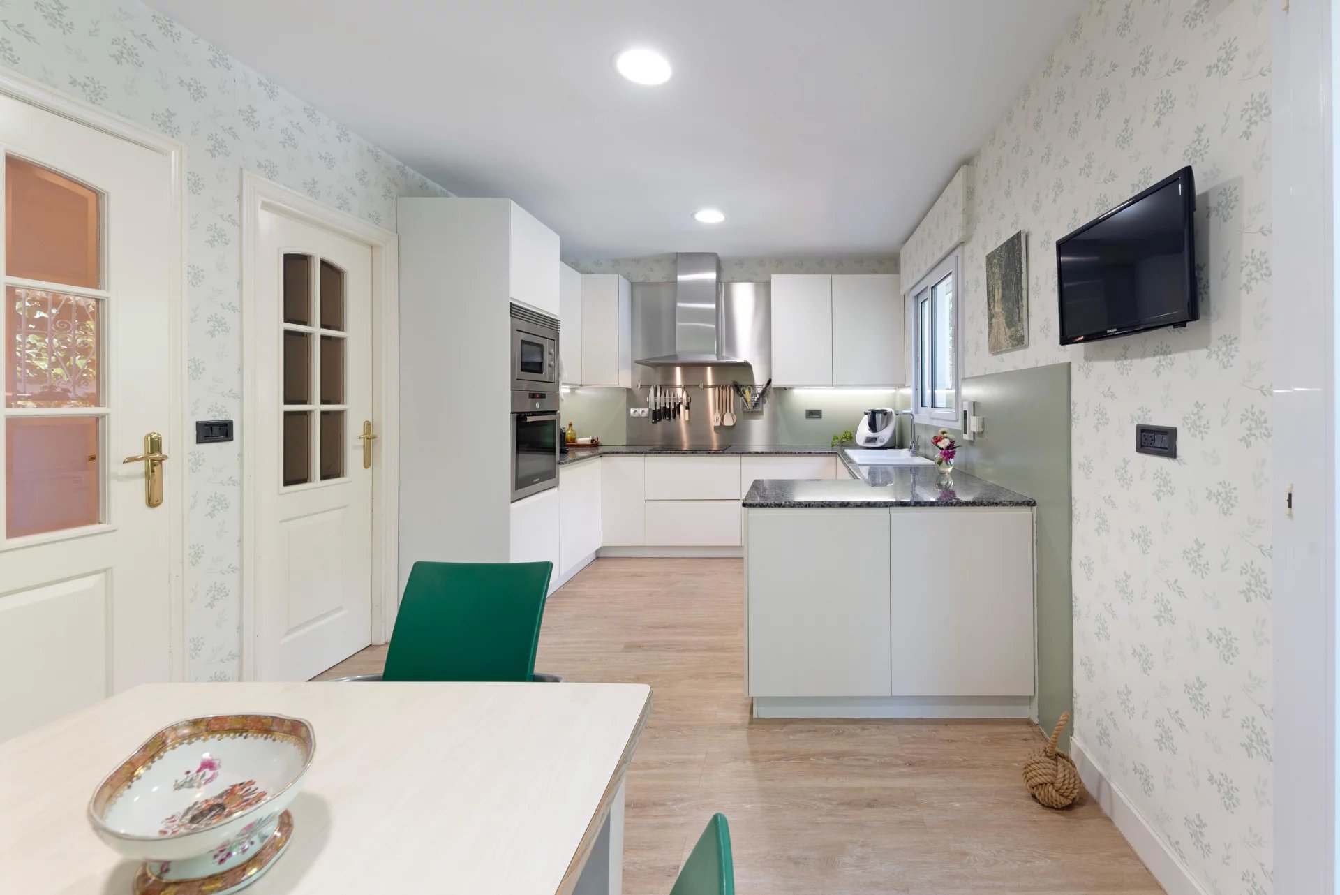 This beautiful house with partial sea views, garden and pool is ideal to enjoy the outdoors. The distribution over three floors plus garage offers a lot of space and versatility. On the first floor there is an entrance hall, a large living-dining room with terrace, kitchen with dining area, pantry, laundry area. It has 2 bedrooms, one of them with bathroom en suite and dressing room plus a large toilet. The upper floor has a living room, 2 bedrooms, 1 bathroom and 1 terrace. The lower floor has a TV room with gas fireplace, 2 bedrooms, 1 bathroom and another room, all with access to the terrace and garden with pool. The basement offers a large space for several cars.