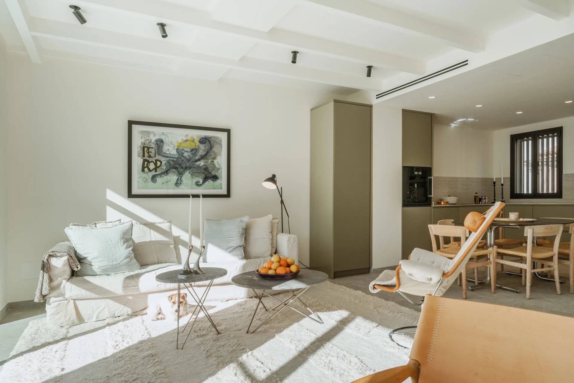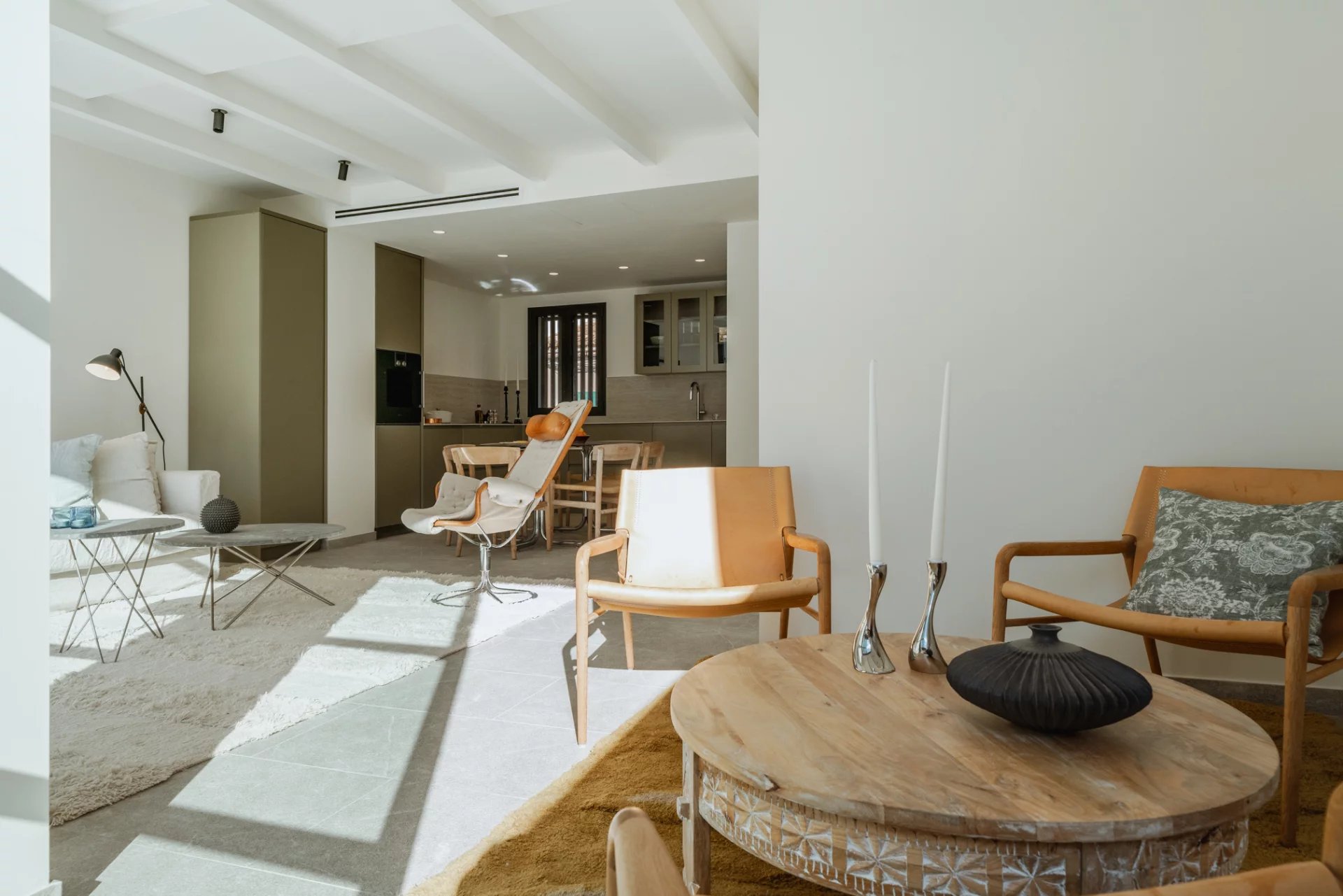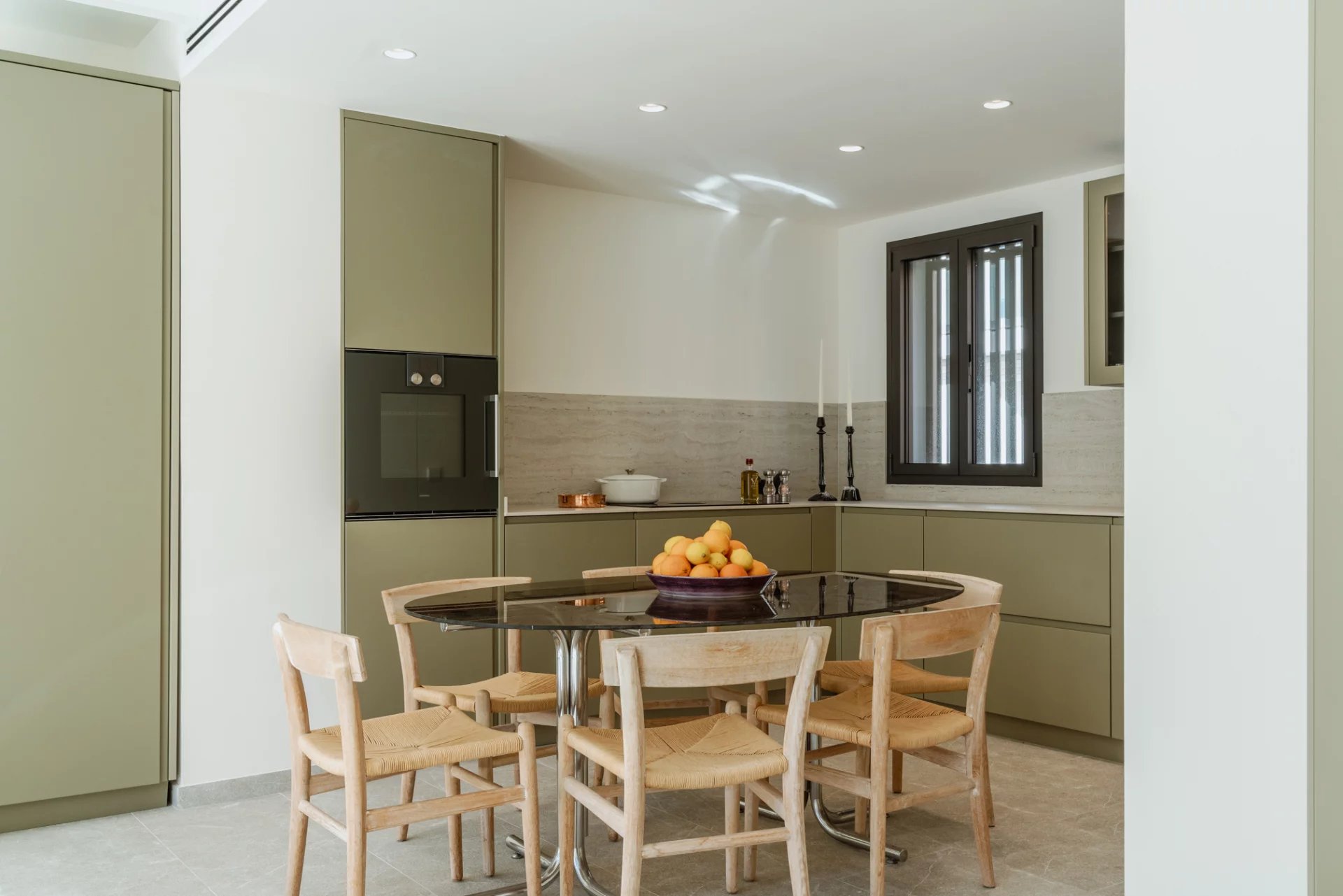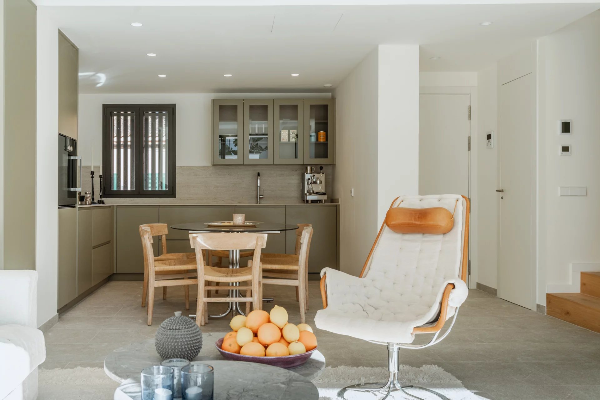 Spanning 161 m² across two floors, this house has a spacious living area with direct access to a south-facing 22 m² perfect for soaking up the sun in complete privacy. The spacious, open-plan, fully equipped Gaggenau kitchen is a chef’s dream, with advanced water filtration, instant sparkling water capability, and a full-size fridge. The kitchen seamlessly connects with the living area and reading corner, and by opening the terrace windows fully, the inside becomes one with the outside.