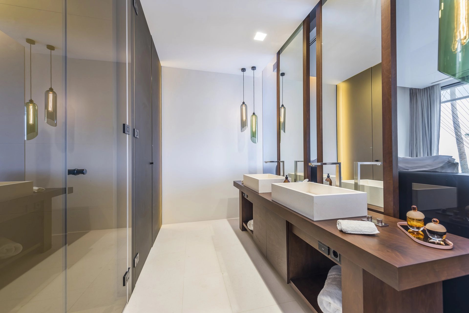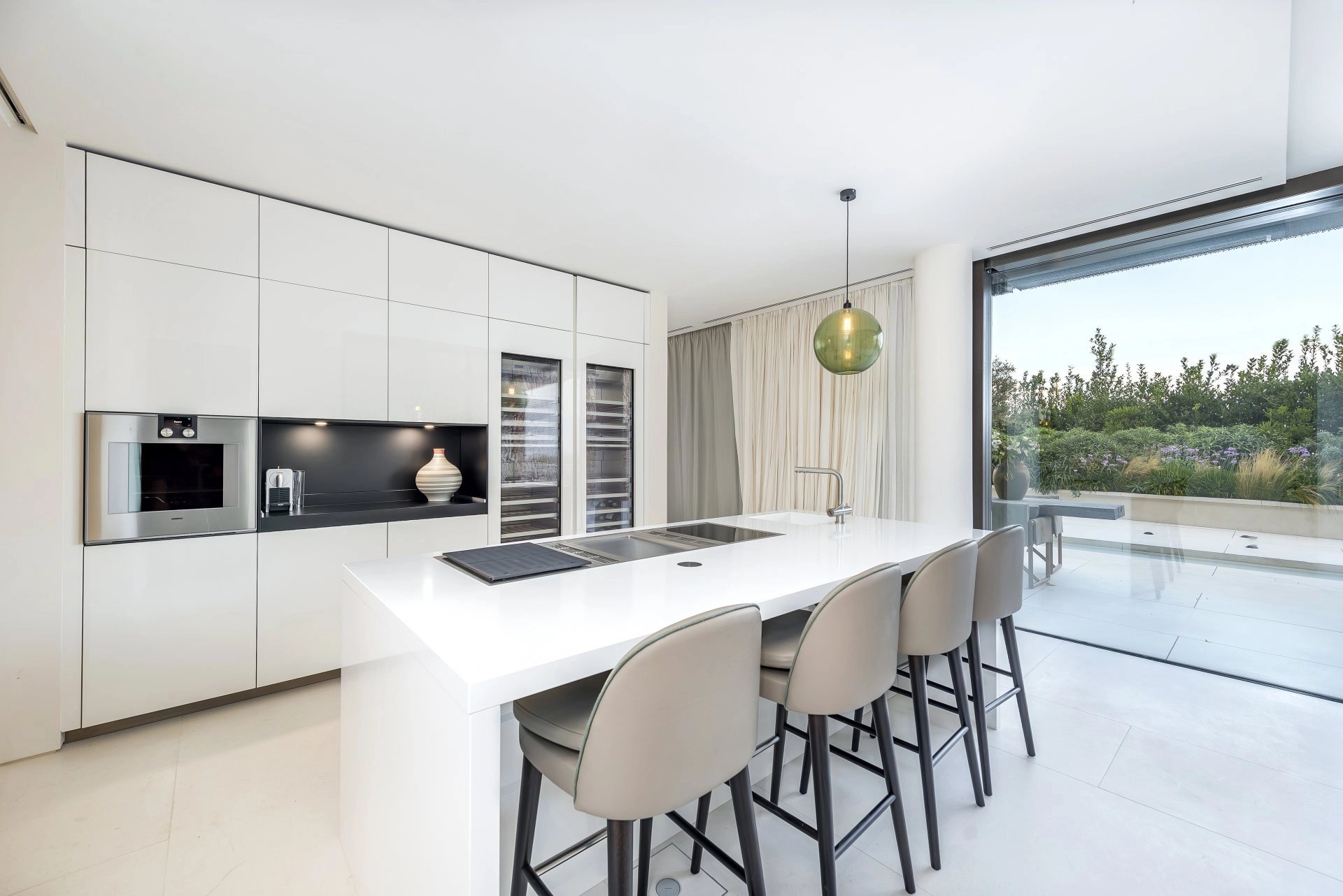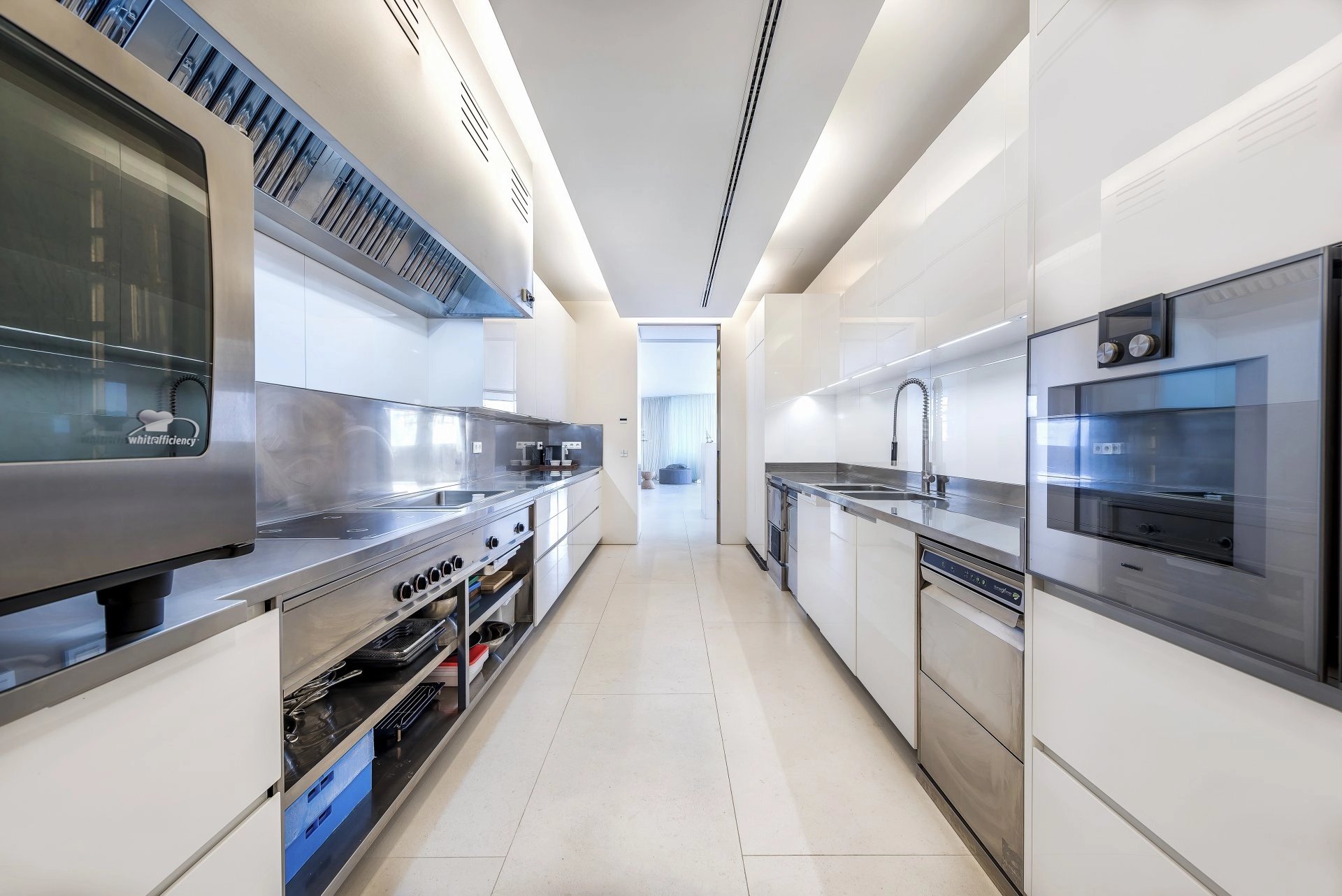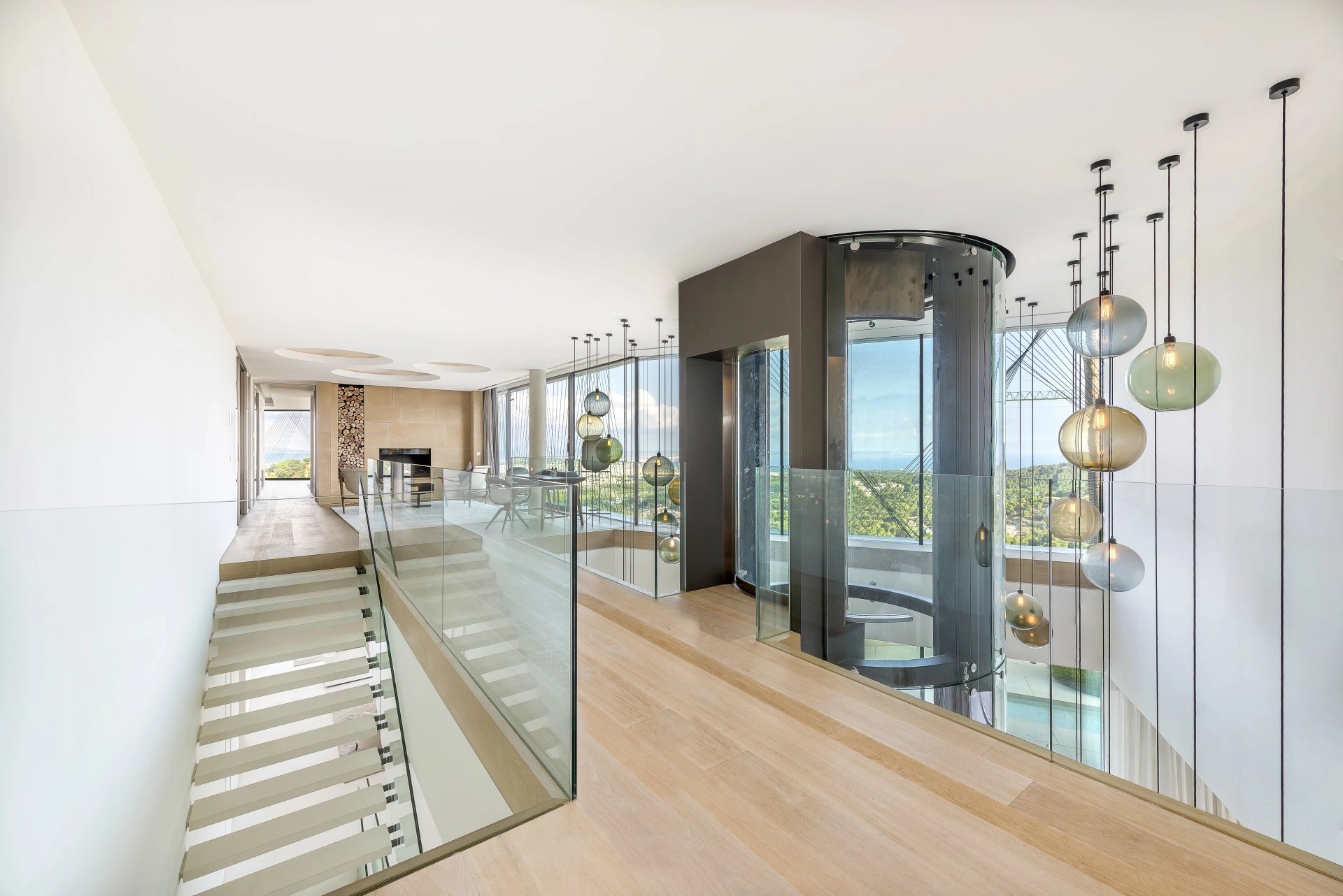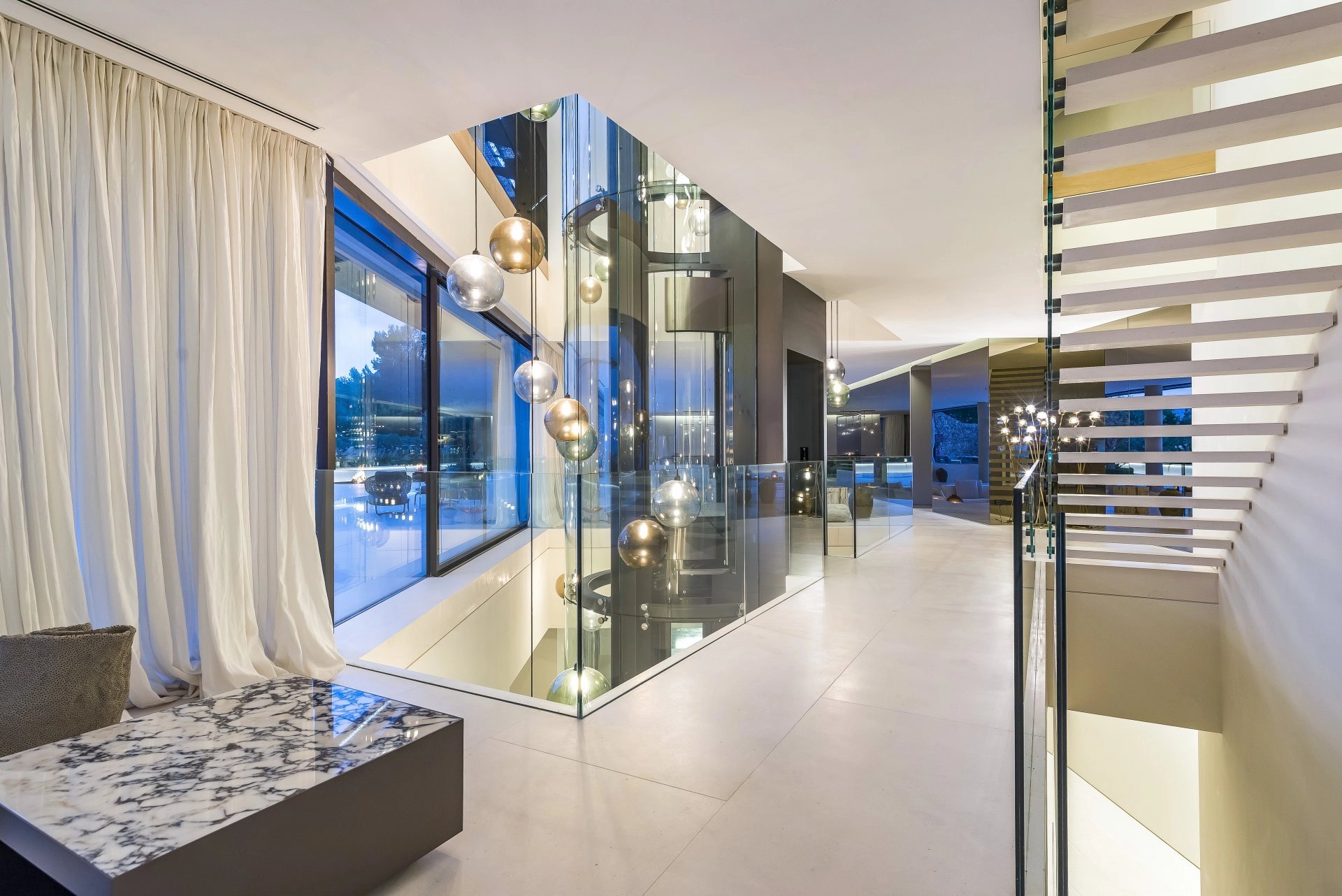 The ground floor is an incomparable open space that can be divided into representative and informal areas. The representative area has a spectacular living room with an attractive open fireplace, a superior dining room, a satellite kitchen, and a sensational wine cellar. The informal area is the focal point where guests might meet while dinner is being prepared.