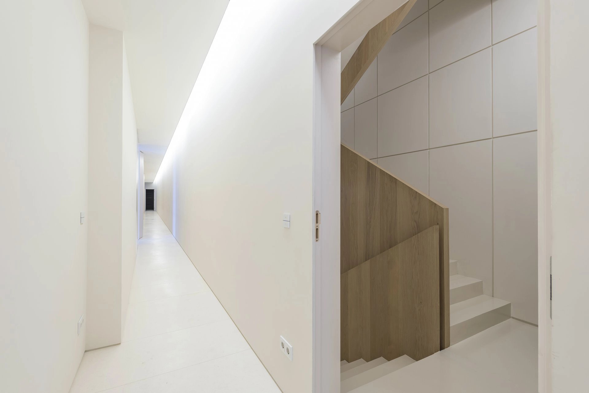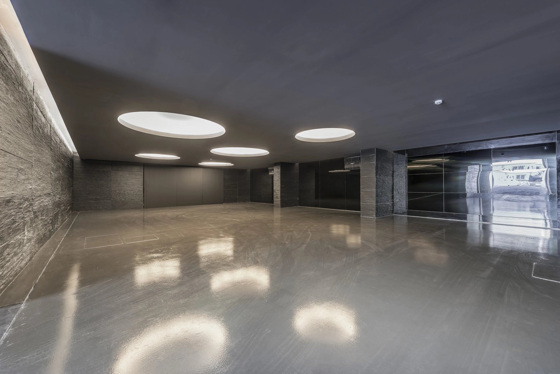 Learn moreThe basement has a video art installation welcome area, a fresh green Zen garden, generous parking with places for six unique cars, a fitness room with treatment space, and staff areas with two additional parking spaces. The basement has two fully equipped staff bedrooms and a pantry. From the welcome atrium, you can take the platform lift directly to the living areas and the bedrooms.