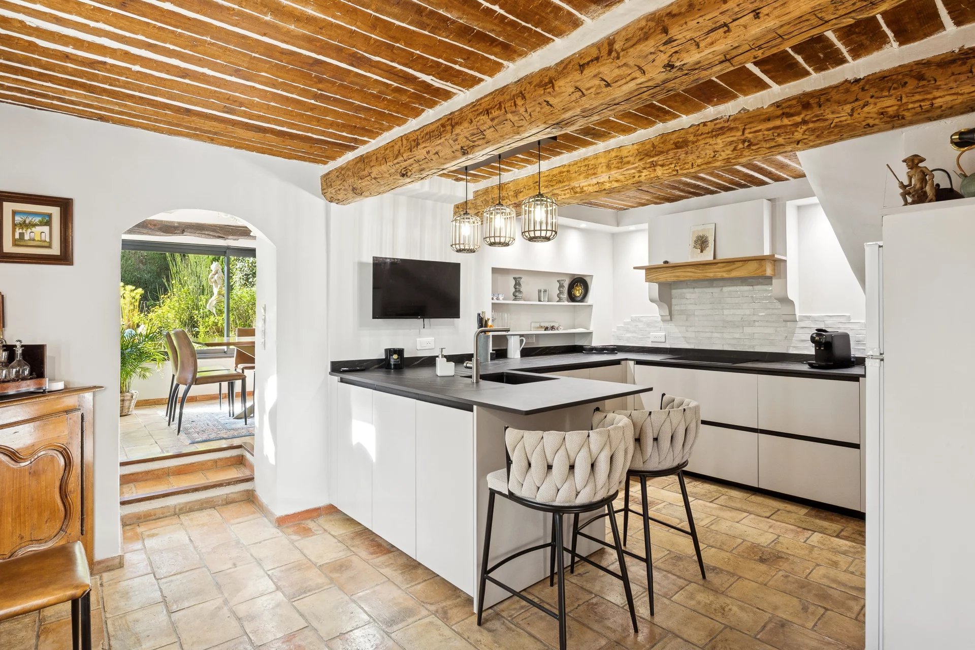 In a peaceful and bucolic setting, this authentic 18th-century mas, with a surface area of 160 m², has been fully renovated while preserving its original charm. The terracotta floor tiles, wooden ceilings or exposed beams, and other historic features have been enhanced to offer modern comfort combined with the character of the old.
