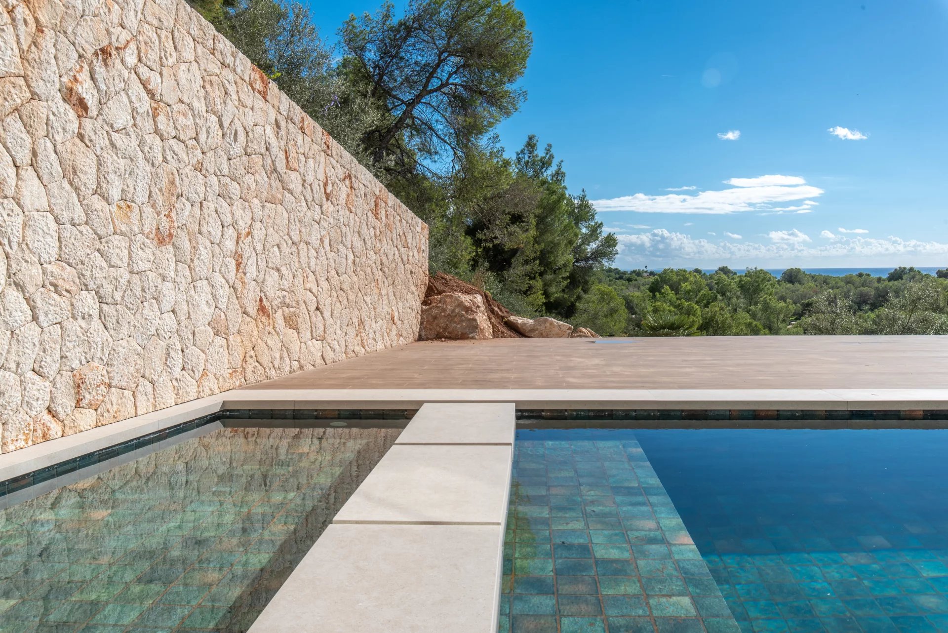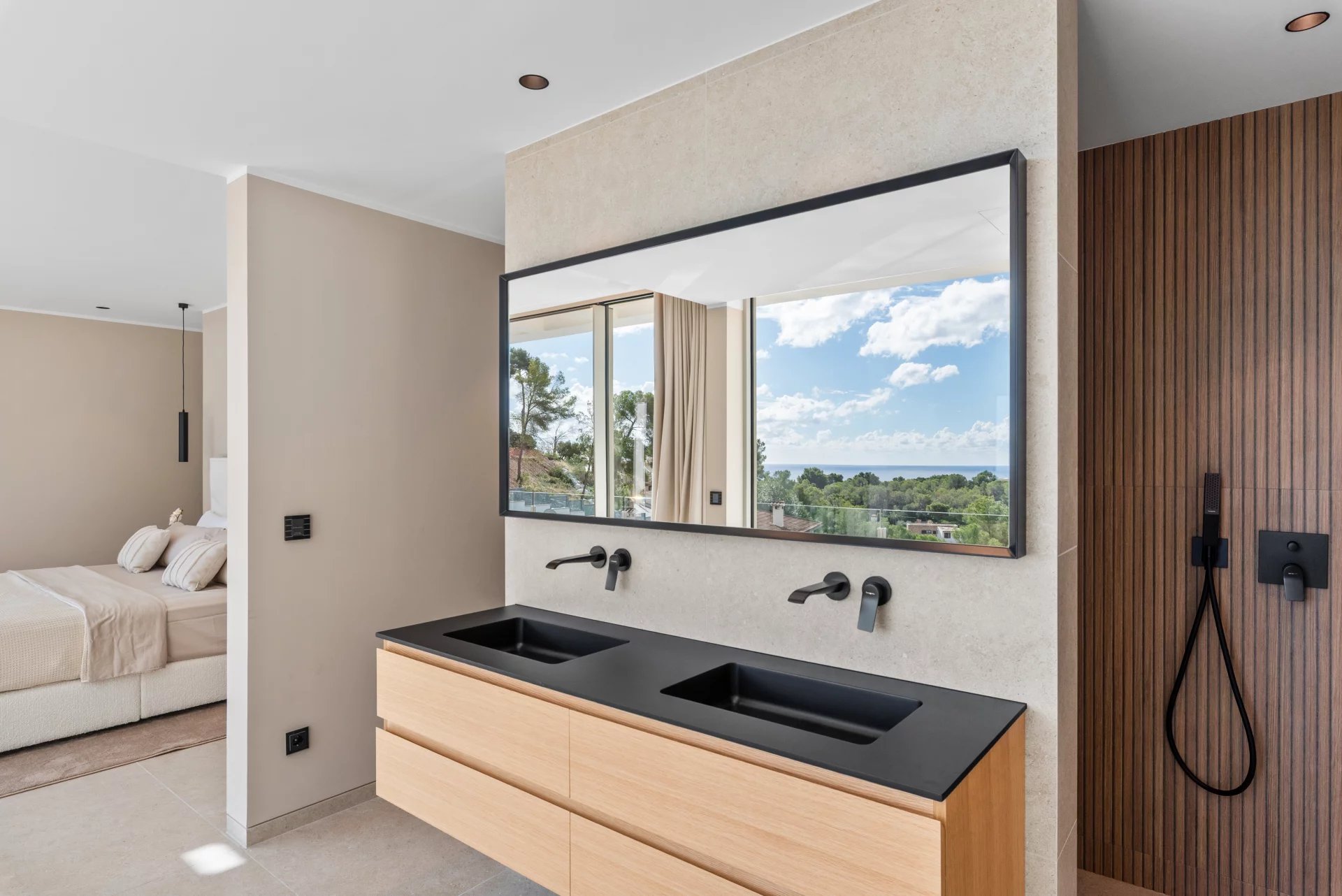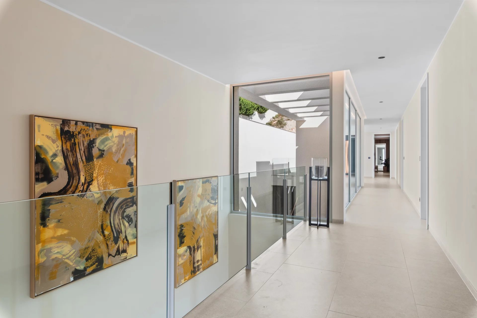 We present this exclusive villa of contemporary design, located in the most coveted area of Puerto Portals and ready to move in. An exceptional residence that combines modern architecture, Mediterranean elegance and panoramic sea views, offering maximum comfort in a privileged environment. On a plot of approximately 1,328 m², this villa stands with a living area of about 680 m², distributed with style and brightness. On the main floor is the entrance area and five spacious bedrooms en suite, all with stunning sea views and direct access to private terraces. Upstairs 5 bedrooms en suite. The first floor offers an elegant open concept living space, a fully equipped designer kitchen with top quality materials and dining area, a second auxiliary kitchen, a guest toilet and a bedroom with en suite bathroom. The spacious terraces and infinity pool create the perfect setting to enjoy the Mallorcan outdoor lifestyle all year round. On the lower level, the villa has a private cinema room, a gym, a laundry room and a technical room, as well as a garage for several vehicles. Among its many features are underfloor heating, air conditioning, a water treatment system, elevator, advanced home automation, a carefully designed LED lighting, automatic irrigation system, high quality insulating glazing, plus a spectacular pool and private gym. A villa where luxury, privacy and design merge to offer a unique residential experience in one of the most exclusive locations in Mallorca.