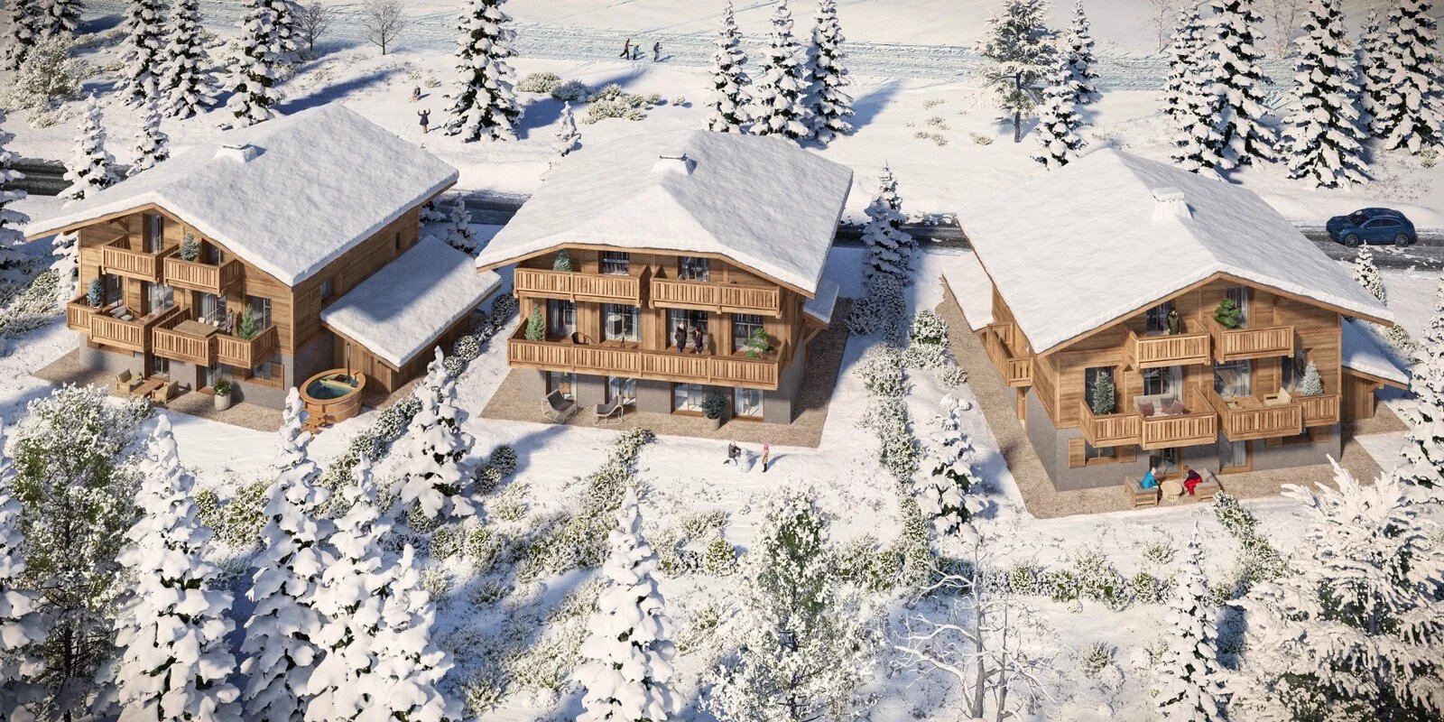 The Chalets of the Lake, made up of three semi-detached chalets, blend perfectly into their environment, combining the traditional architecture of Alpine chalets with modern comfort. They offer a warm and elegant retreat in the heart of nature, ideally located a ten-minute walk from the shops and ski lifts, surrounded by green spaces, and close to the cross-country ski trail in winter and the lake in summer.