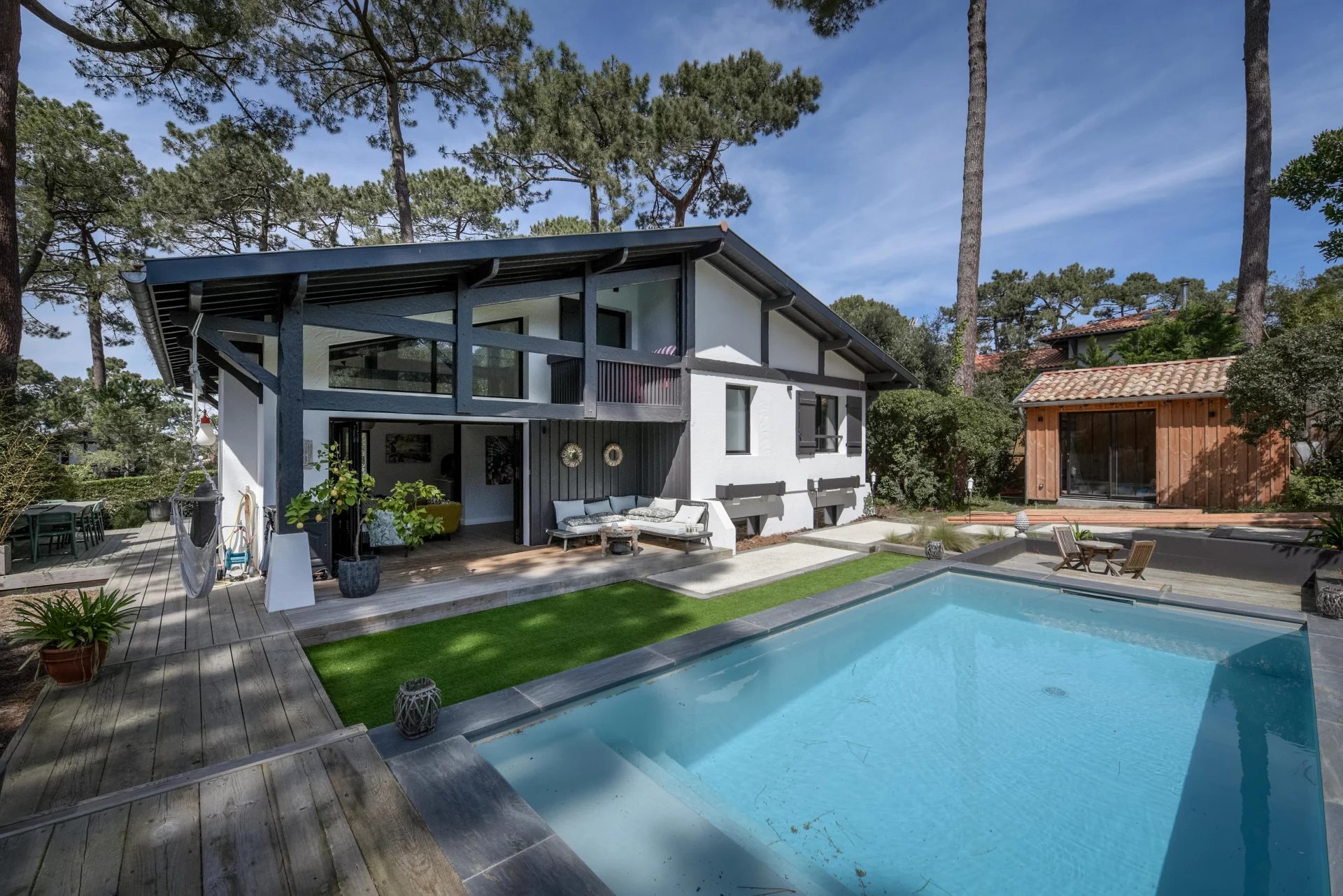 Located in the peaceful Domaine de la Forêt neighborhood in Pyla sur Mer, this splendid prestigious villa of approximately 183 sqm has been fully renovated in 2021. It is set on a gorgeous wooded plot of over 1000 sqm, enhanced by a magnificent heated swimming pool.