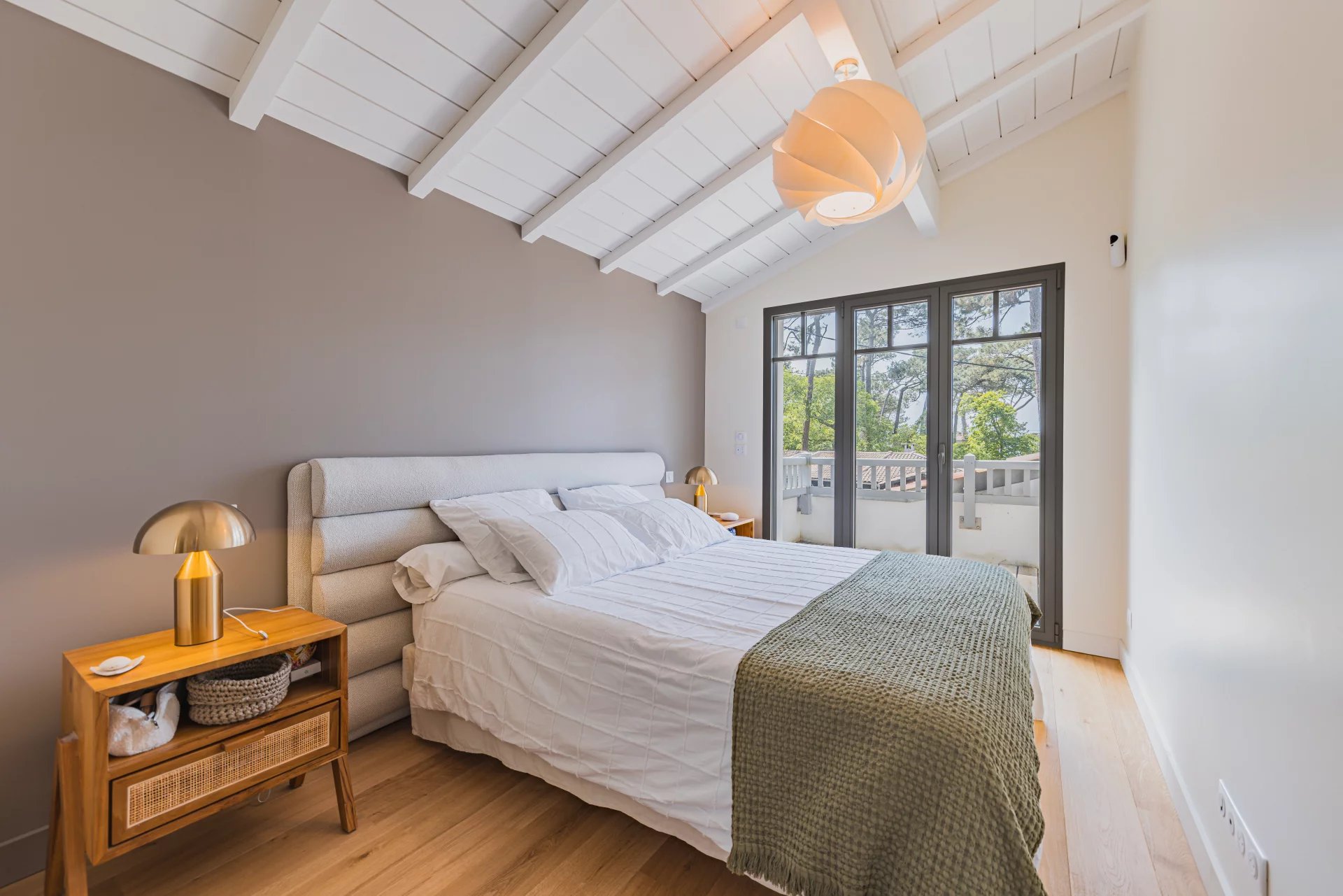 Michaël Zingraf Real Estate Bassin d'Arcachon presents Just a short walk from the Corniche, where the eye wanders between the pine trees and the horizon of the Bay, this approximately 110-square-meter home offers a contemporary take on seaside elegance. Here, nothing is left to chance: every line is precise, every material carefully selected.