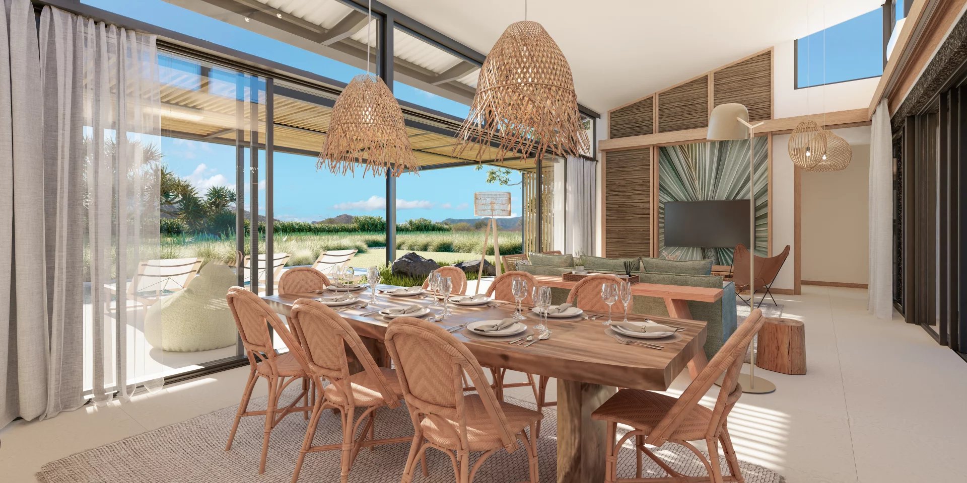 The site benefits from a unique savannah atmosphere. Its climate is very dry and its current landscapes are composed of a combination of tall Black River grasses, endemic trees, black wood trees, tamarind trees, Creole agaves and volcanic rocks. The landscaping concept aims to preserve the beauty of the site by reusing 100% of the site's existing plants for the roadsides, and by landscaping 90% of the environment around each villa with existing plants from the site and plants endemic to Mauritius