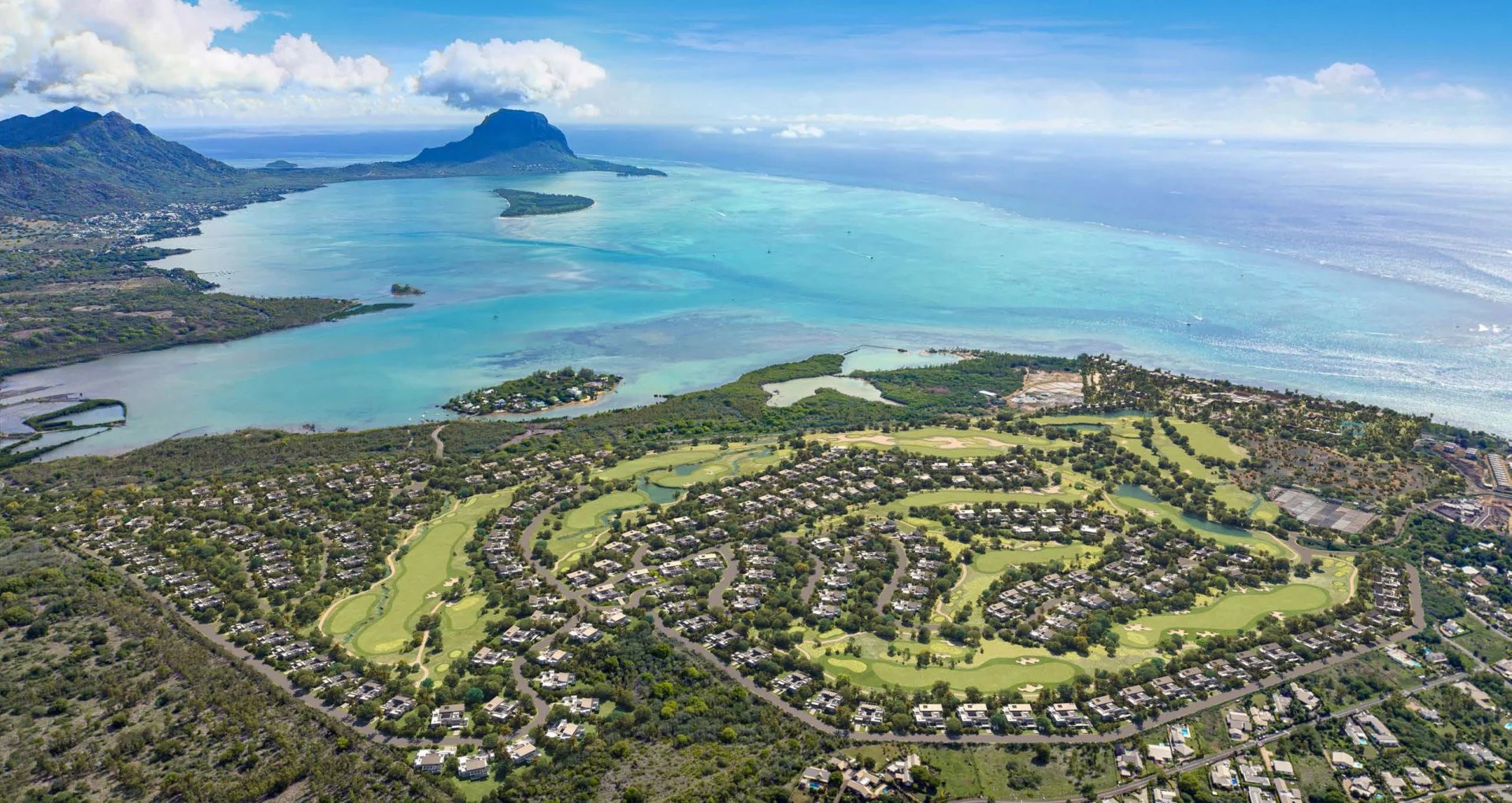 The first phase includes 81 villas and residential plots in the heart of the estate, and will be accompanied by the construction of the clubhouse and the first 9 holes of the golf course. Phases 2 and 3 will follow with 78 and 61 units respectively. The 2nd phase will be accompanied by the construction of the last 9 holes of the course. Each phase is expected to be completed within three years of commencing commercialization. Three models of villas with an actual built surface of more than 400 m² are offered on land with an average surface area of ​​2,000 m². Based on the concept of sustainable architecture, each villa has a different orientation, with the lowest possible environmental impact by taking advantage in particular of the topology of the land, as well as natural ventilation and light. This unique project of exceptional scale in a very sought-after environment offers a breathtaking view of Le Morne and the Indian Ocean.