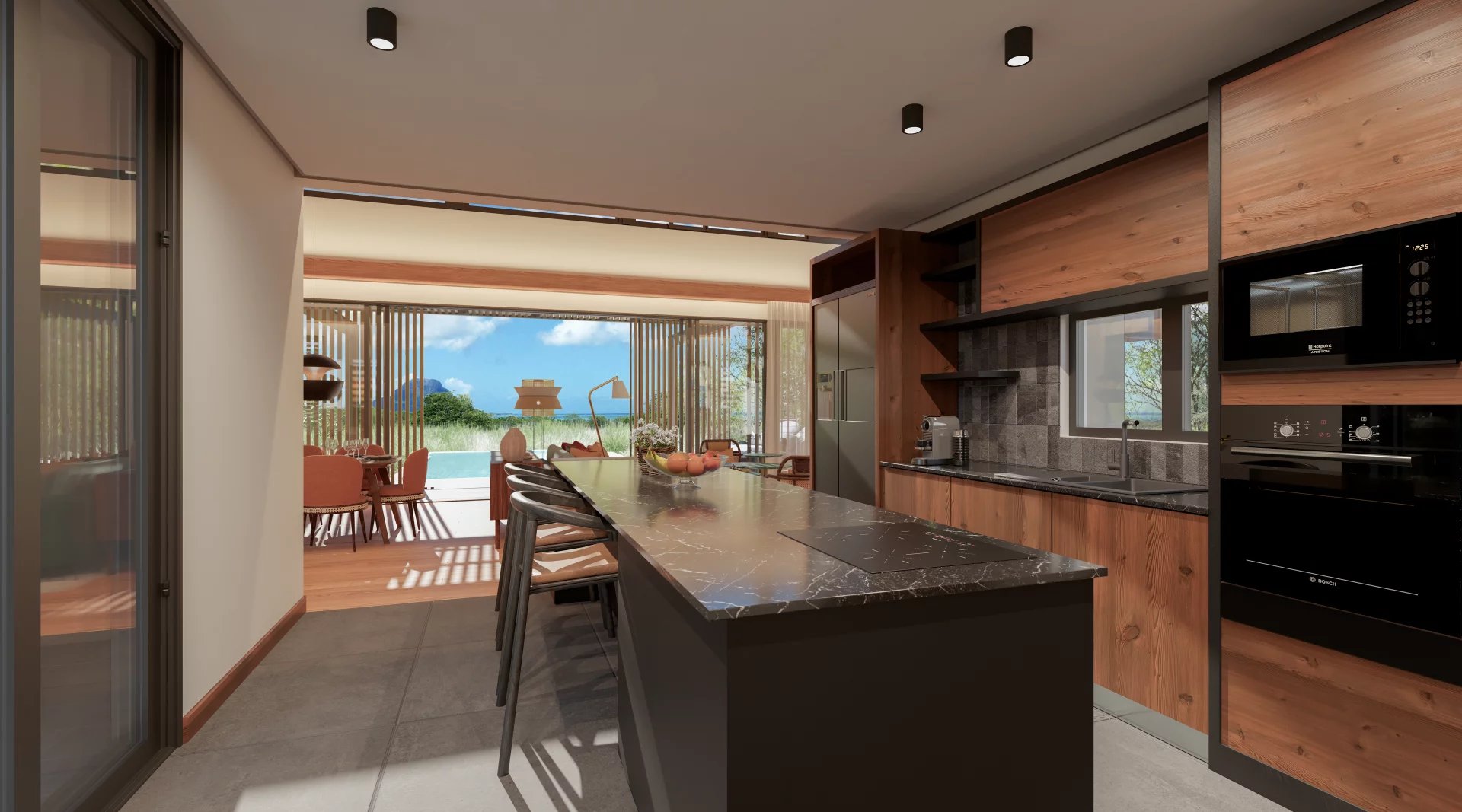 This concept is proposed for 24 villas (in phase 1). Elegant, spacious and intimate, they offer superb views of the sea, the golf course and the Tourelle de Tamarin mountain, while offering an ideal orientation, protected from the winds and fully benefiting from natural light. The patio with tropical landscaping is a green lung around which the life of the household revolves on a daily basis. With three en-suite bedrooms (a 4th bedroom is available as an option) and its large living spaces bringing together the living room, dining room and open kitchen, all facing the outdoor living spaces (kiosk and swimming pool), this is the home tropical family par excellence. Multicultural, heterogeneous, serene, exhilarating... The terms are as numerous as they are varied to describe the signature way of life of this coast of a thousand and one charms. And you, what will be yours? In the heart of the historic Black River Saltworks, facing one of the largest lagoons on the island, this program invites you to vibrate every day to the rhythm of a coast that makes no concessions and perfectly illustrates the pure dolce Mauritian life.