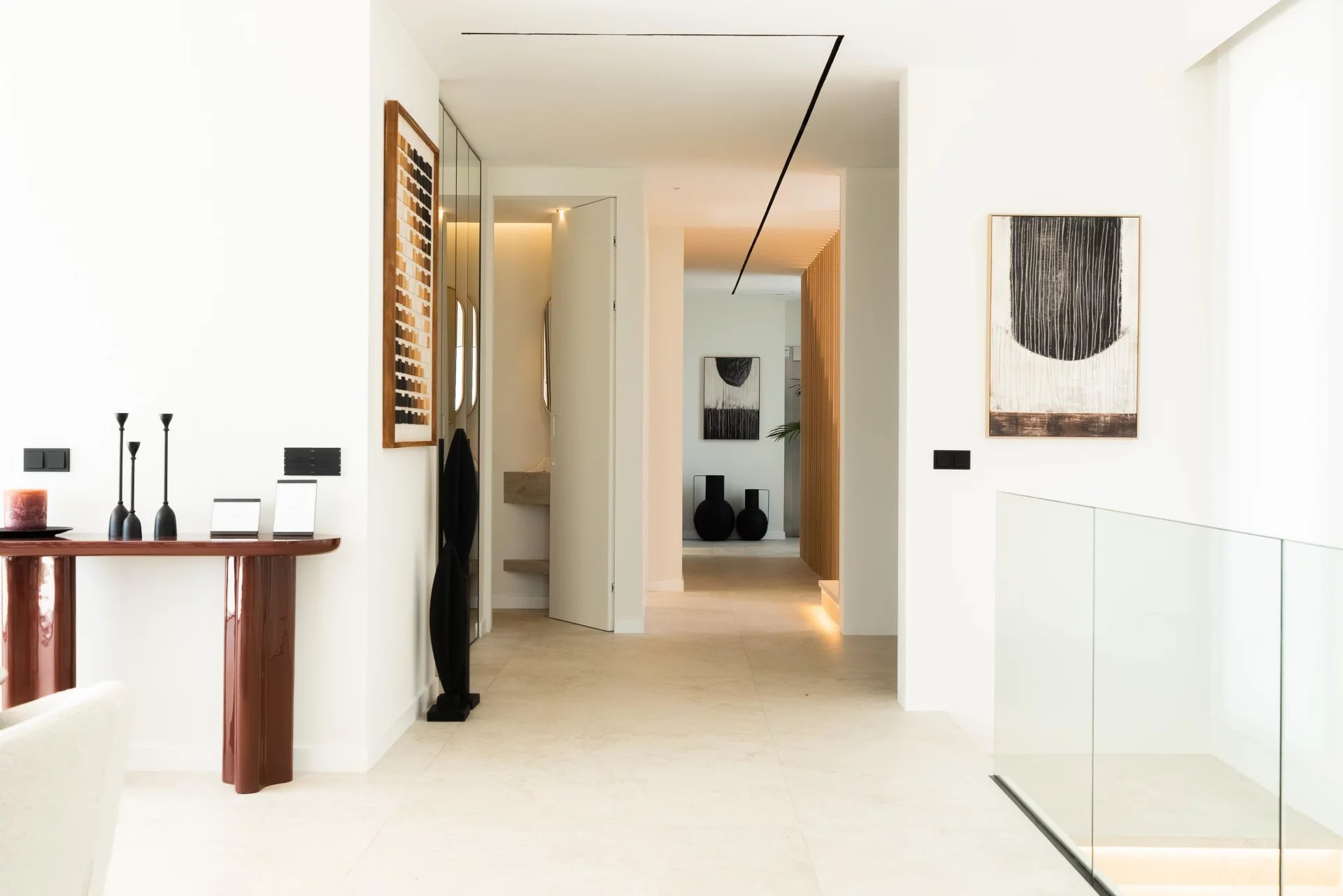 With a total of 7 bedrooms and 7 bathrooms, every corner of this villa is designed to provide an atmosphere of opulence and well-being. The spacious living and dining room is the heart of the property, highlighting a generous bay window that unfolds towards the infinity pool, offering breathtaking views of the sea and the serene countryside surrounding the property.