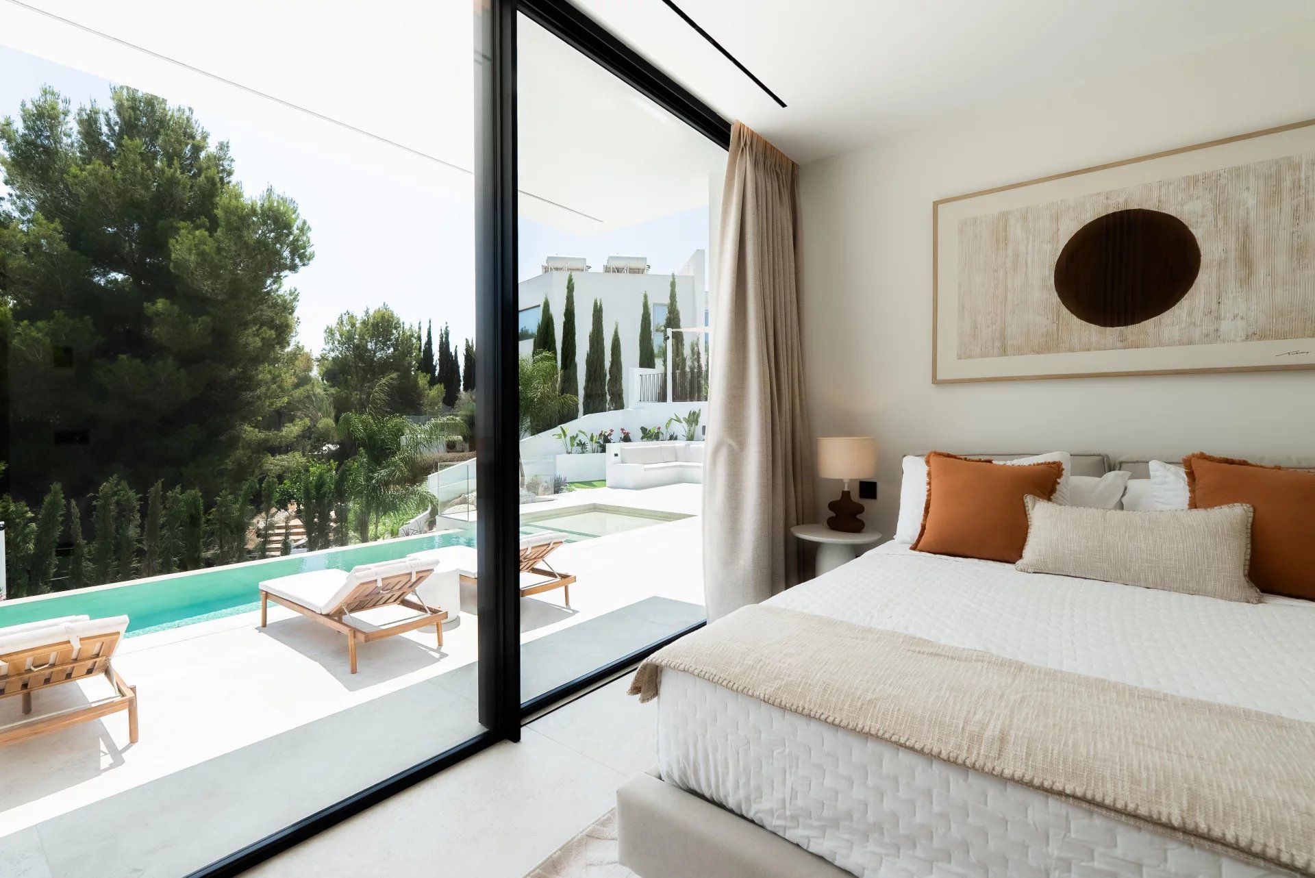 Learn moreWith a total of 7 bedrooms and 7 bathrooms, every corner of this villa is designed to provide an atmosphere of opulence and well-being. The spacious living and dining room is the heart of the property, highlighting a generous bay window that unfolds towards the infinity pool, offering breathtaking views of the sea and the serene countryside surrounding the property.