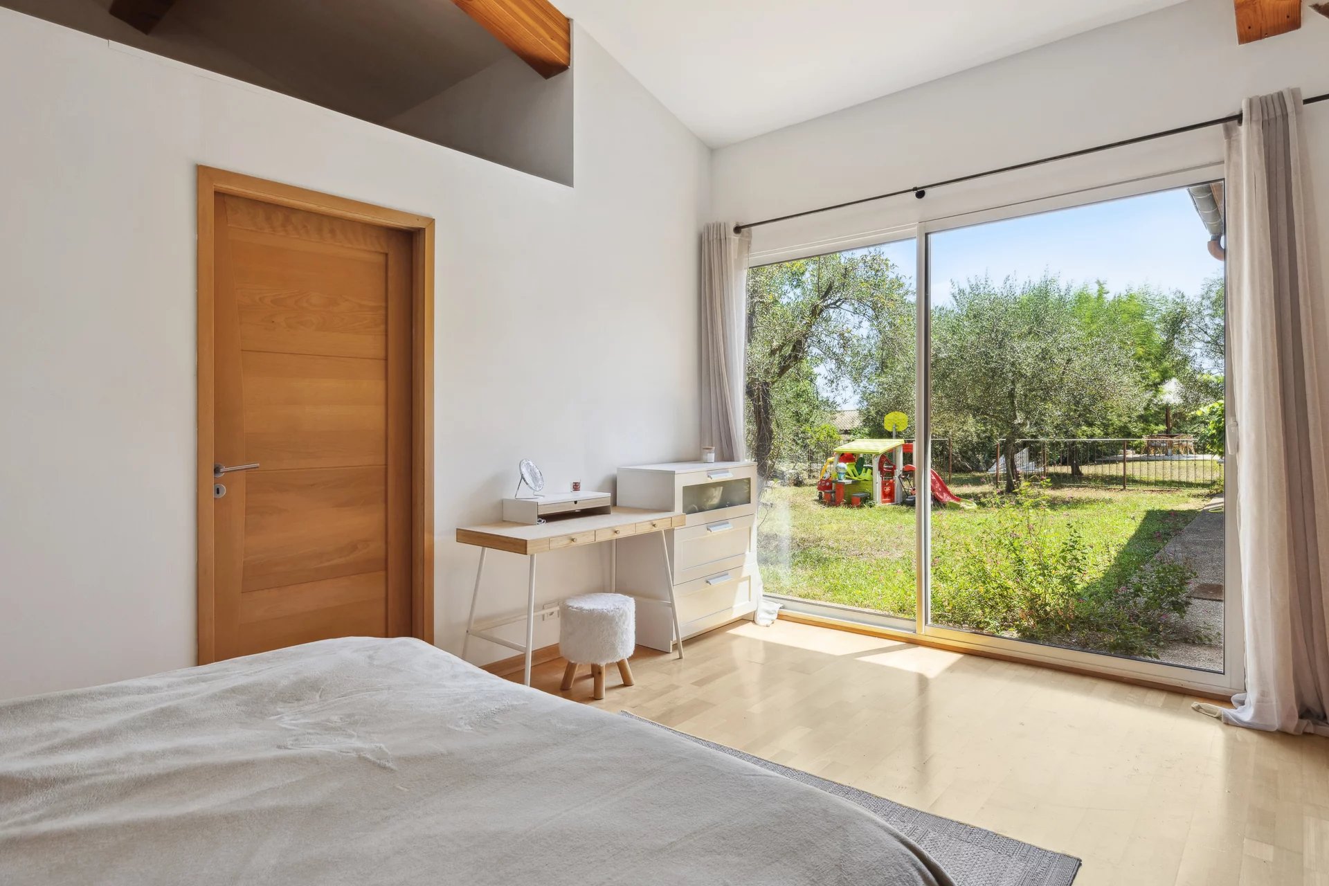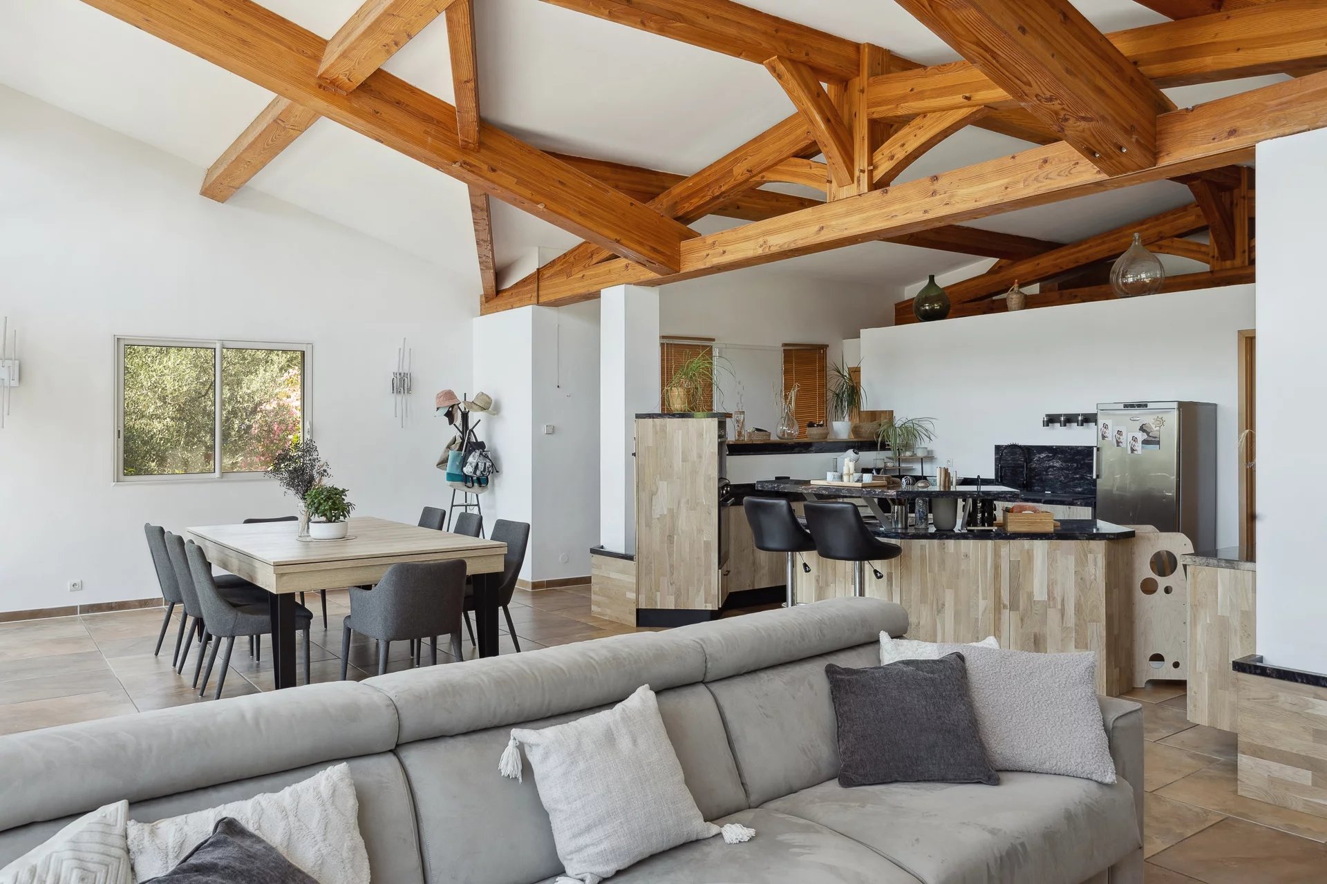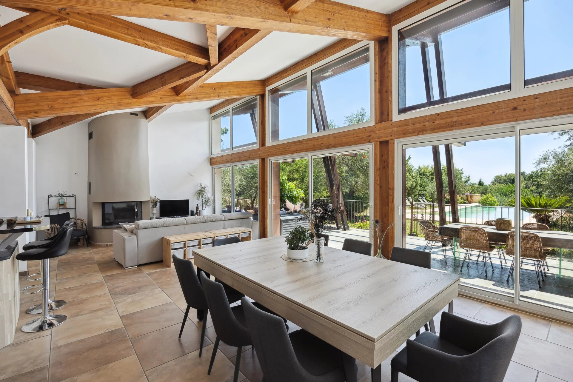 This beautifully designed villa is set in an unoverlooked 2512 sqm plot. The style is resolutely contemporary, with a 'cathedral' living room offering panoramic views over the terrace, pool and garden. Note the central kitchen opening onto the open space, where you can prepare meals while enjoying the view (designed by a chef!). - that was the original idea. The rear of the house has 4 bedrooms (one of which has an en suite bathroom) and a shower room. The cosy atmosphere is enhanced by a large terrace that doubles as a summer lounge. The house is energy-efficient (photovoltaics and solar panels provide electricity and hot water); an 8,000-litre water retention tank is used for watering. The swimming pool has an infinity edge and the pool house is fully equipped. A large basement and garden shed provide additional storage space. Beyond its qualities, at first glance, it leaves no one indifferent. This is definitely a place to fall in love with!