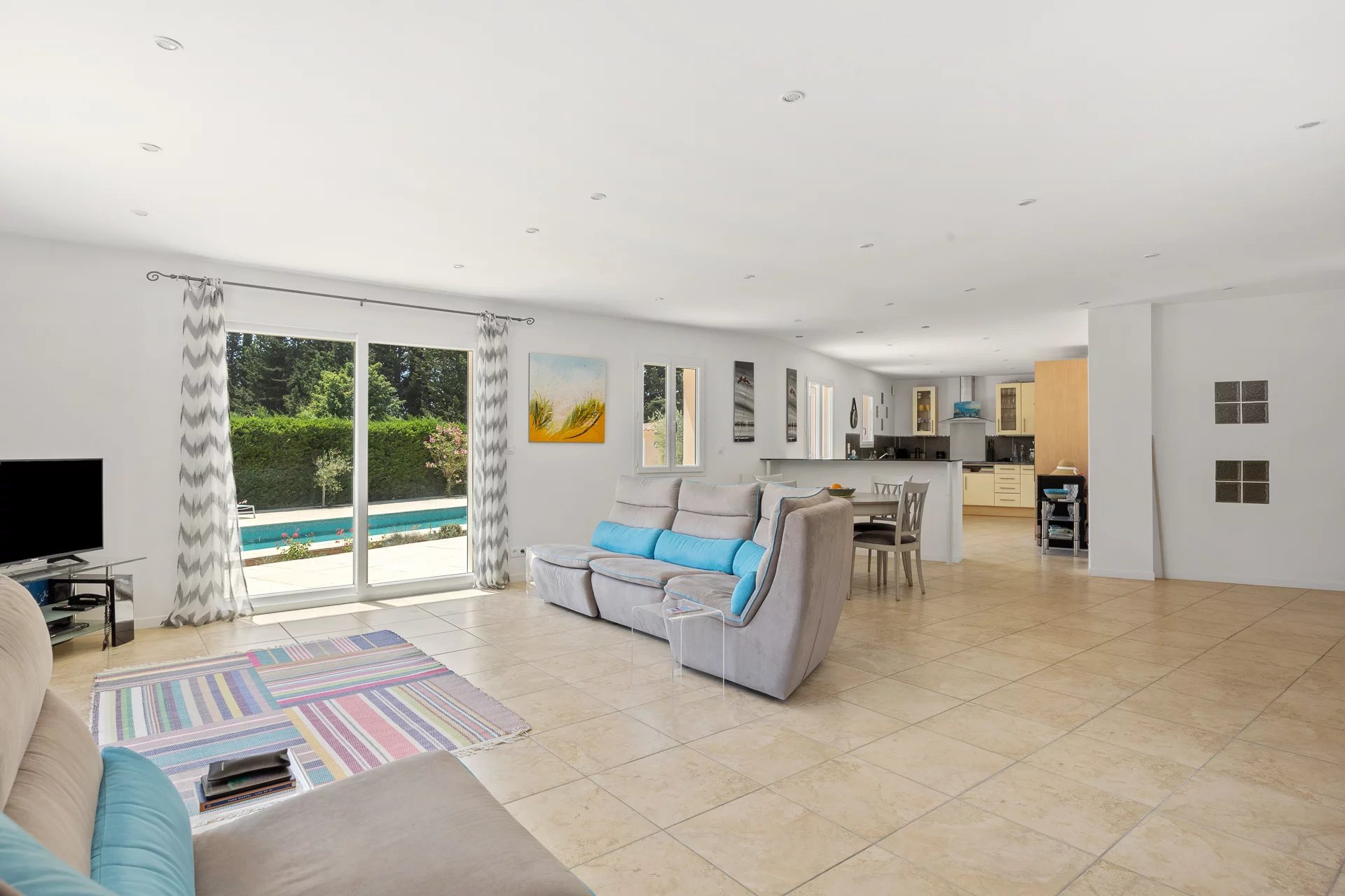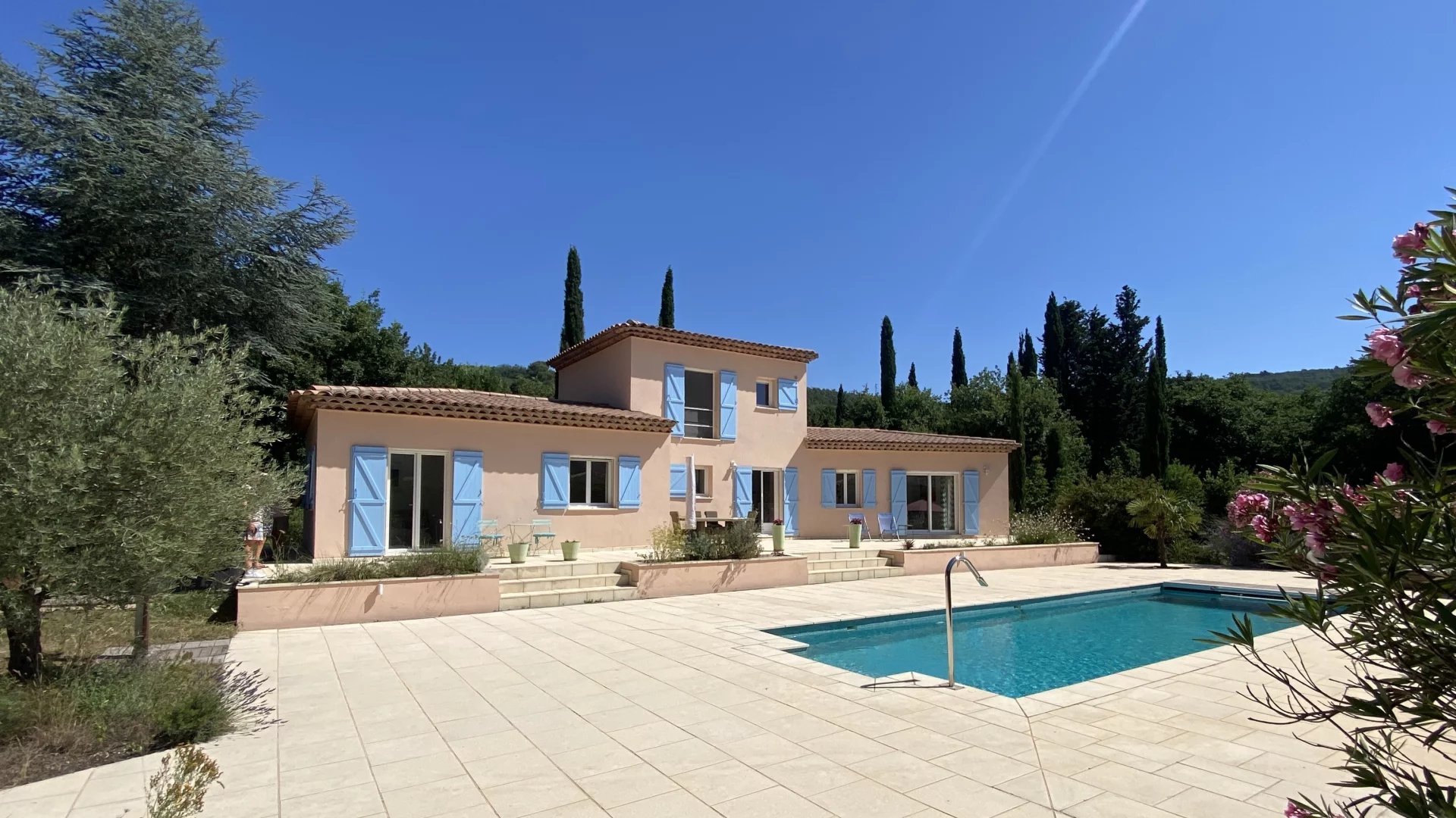 On the edge of a pretty medieval village overlooking the Siagne gorges (for hikers!), on the edge of a wood, you'll discover this 146 sqm villa (203 sqm if you add the 41 sqm garage and the 16 sqm pool house) on landscaped, wooded grounds of 2819 sqm. Ground floor: a 49 sqm living room opening onto a 19 sqm kitchen offering a lovely open-plan living space, 3 bedrooms and a shower room.