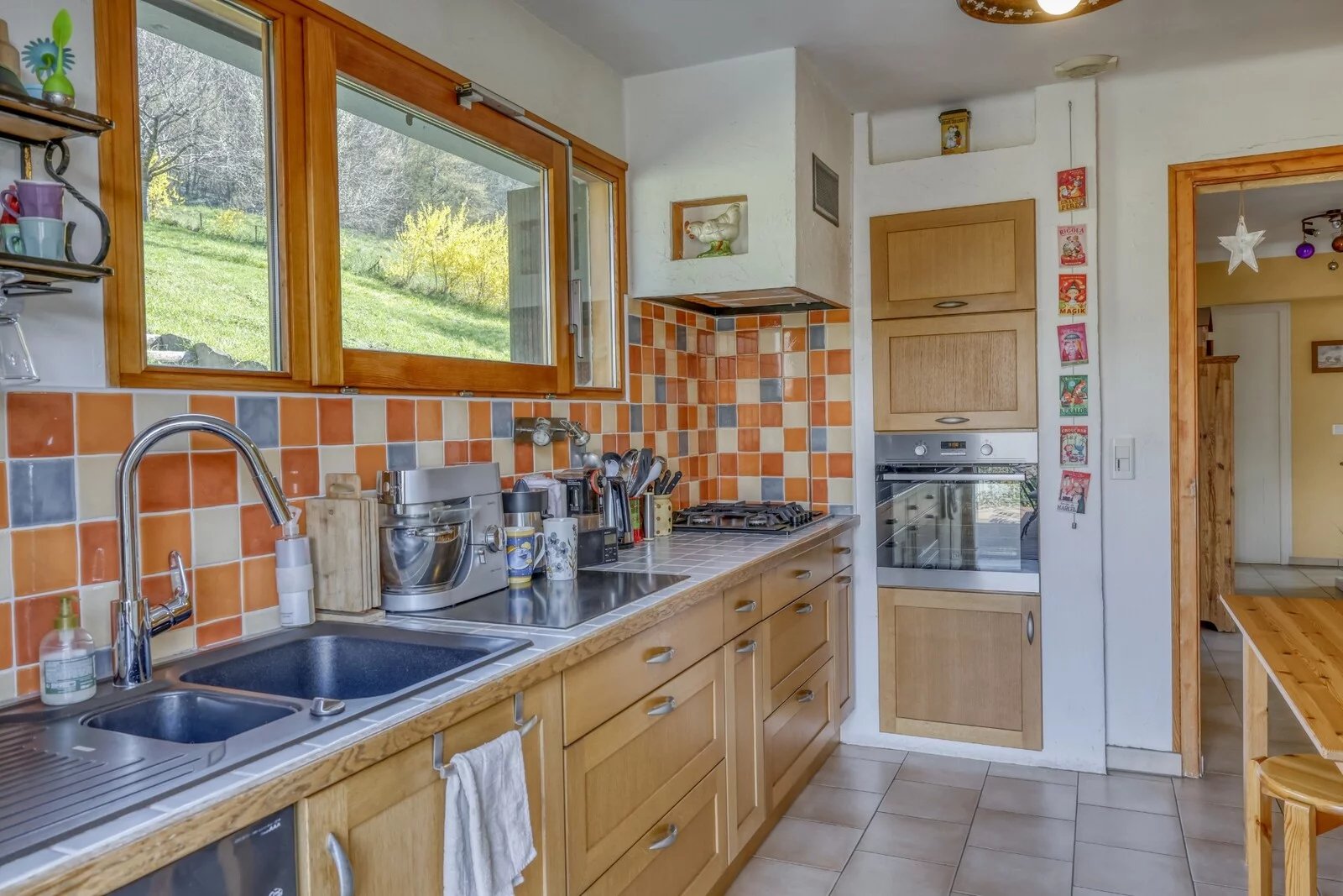 On the southern slopes of Passy, this charming country house of around 218 sq-m with a living area of around 145 sq-m is built over two levels and converted attic space. Set in large wooded grounds of around 1,200 sq-m, the house comprises 4 bedrooms, one of which is en-suite on the ground floor, plus a mezzanine area that could be used as a bedroom or games room. A laundry area, a large pantry/utility room and a garage complete the property, which spans around 45 m². You'll love the exposure and the dominant, panoramic views. A great deal of renovation work (inside and out) has been carried out in recent years, including the installation of a heat pump in 2022.