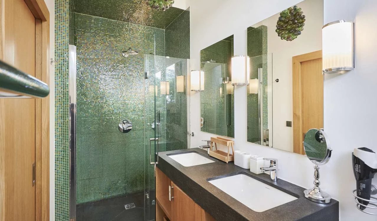 On the first floor, a master bedroom with dressing wardrobes, and shower room. A second bedroom with wardrobe and a shower room. Plus a living room with a sea view.