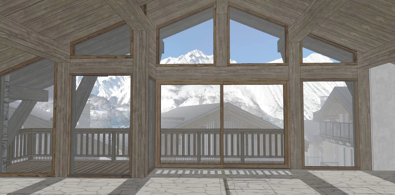 This 6-room half-chalet, with 177.20 sq.m. of living space, includes 5 bright double bedrooms, each with its own bathroom. With a floor area of over 40 sq.m. devoted entirely to the living room with its open-plan kitchen, this property offers a pleasant space right up to its balcony.