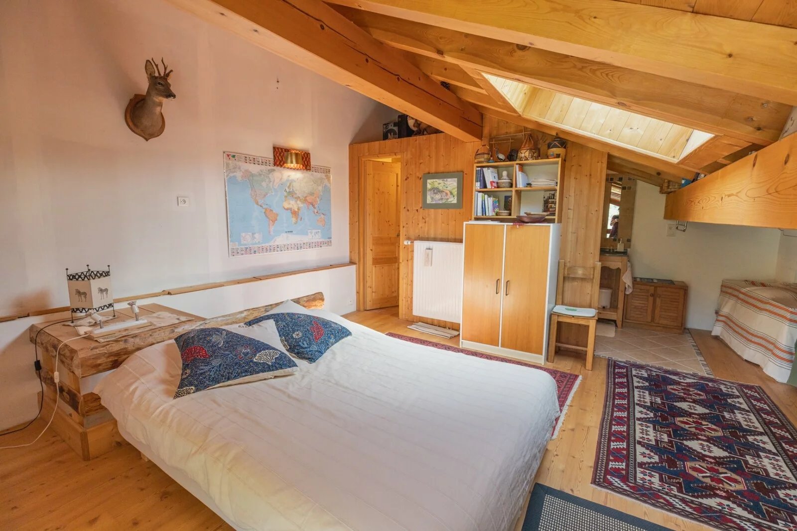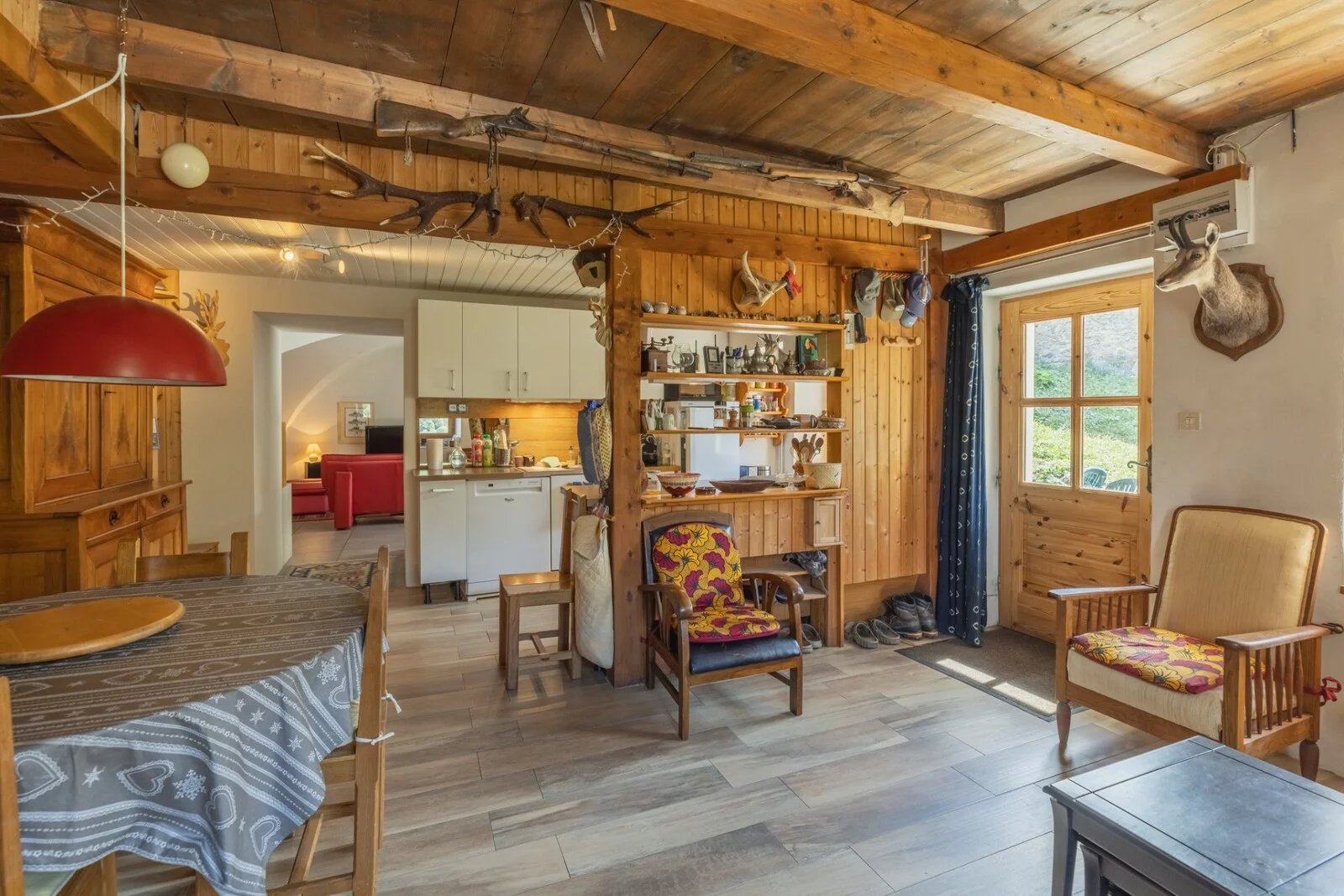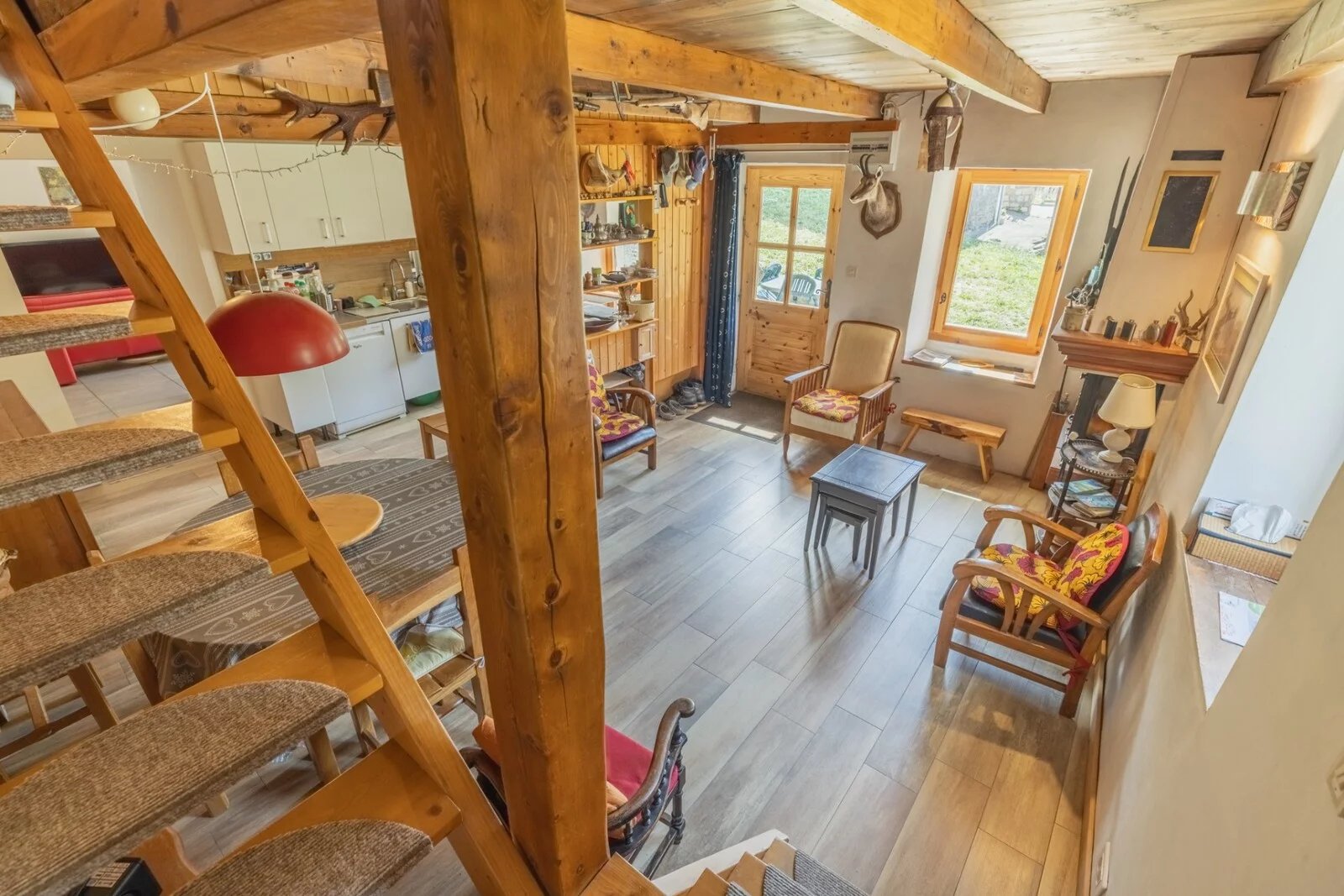 With 107.18sq.m of living space spread over 3 levels, the living area comprises 2 large bedrooms and a dormitory (sleeping 6 in total), a semi-open-plan kitchen opening onto the living room, and a very large vaulted living room. There is a shower room and WC on each level.