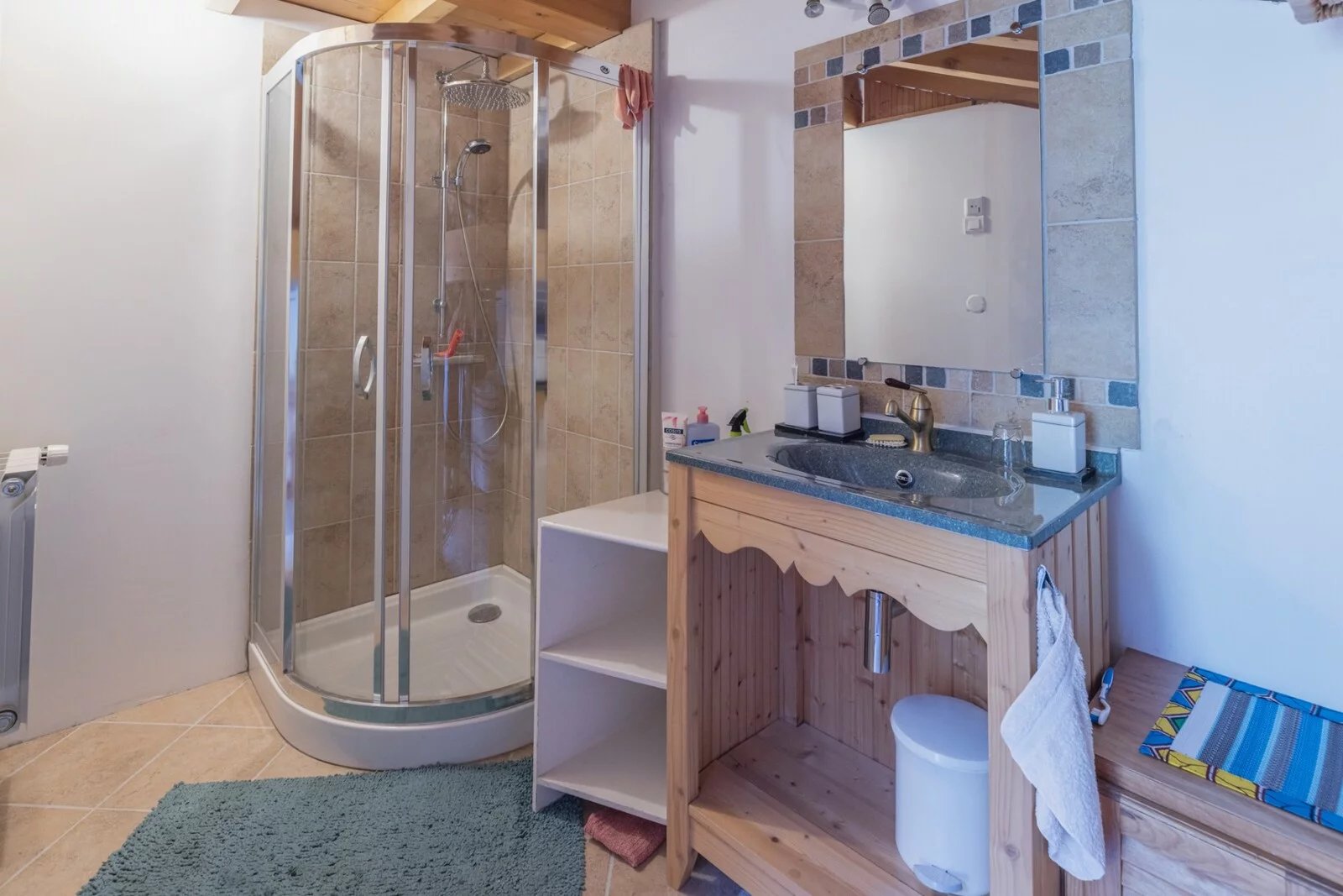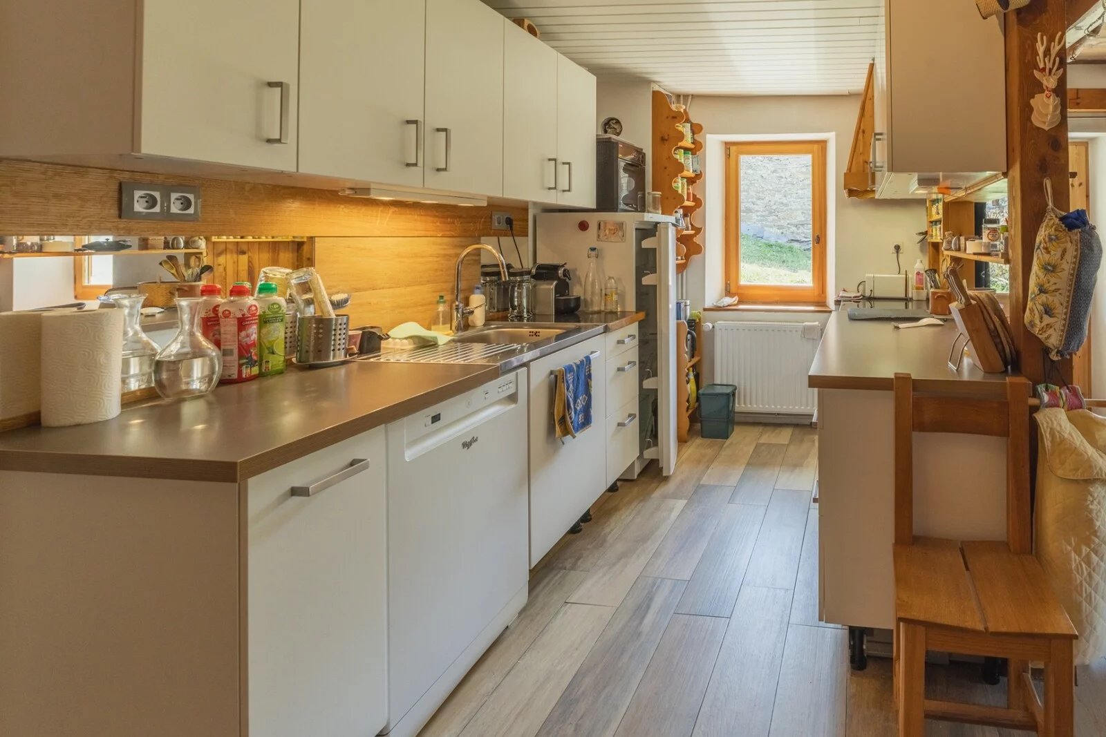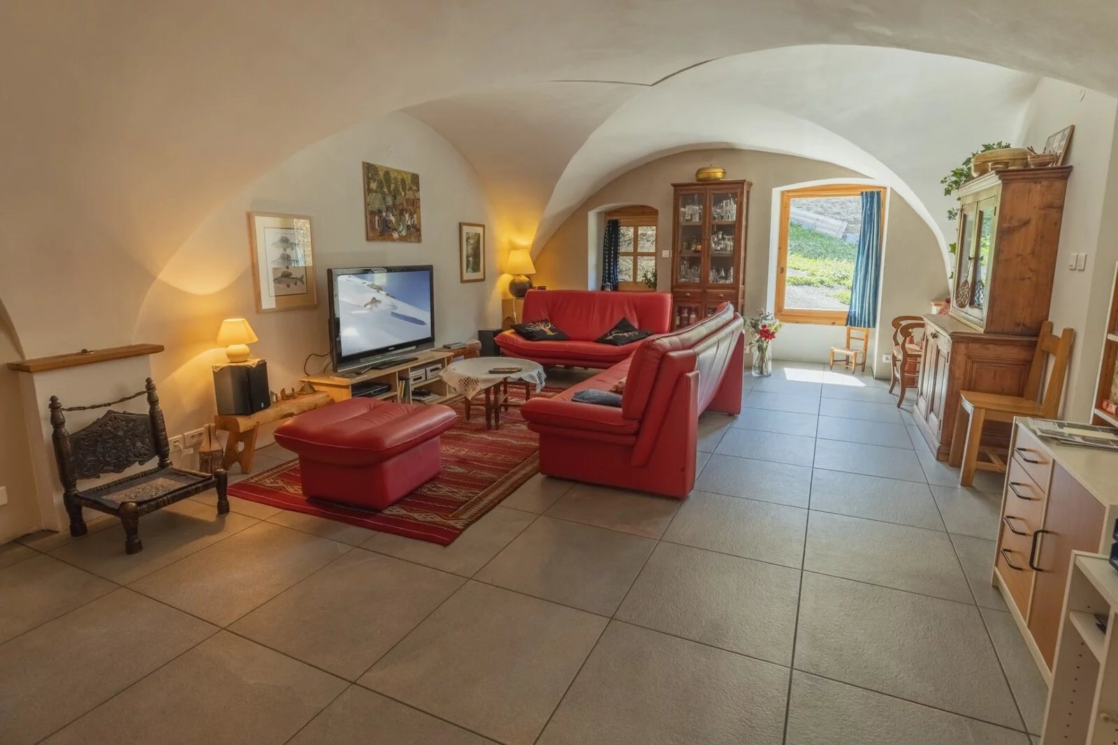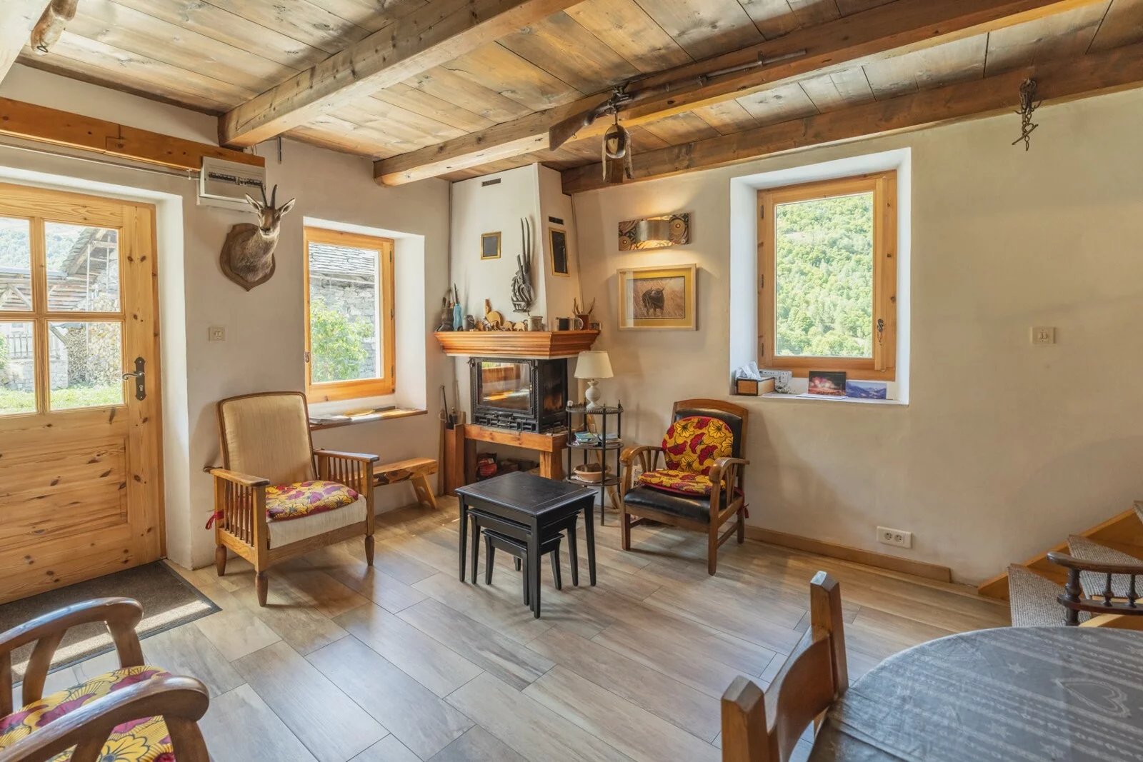 With 107.18sq.m of living space spread over 3 levels, the living area comprises 2 large bedrooms and a dormitory (sleeping 6 in total), a semi-open-plan kitchen opening onto the living room, and a very large vaulted living room. There is a shower room and WC on each level.