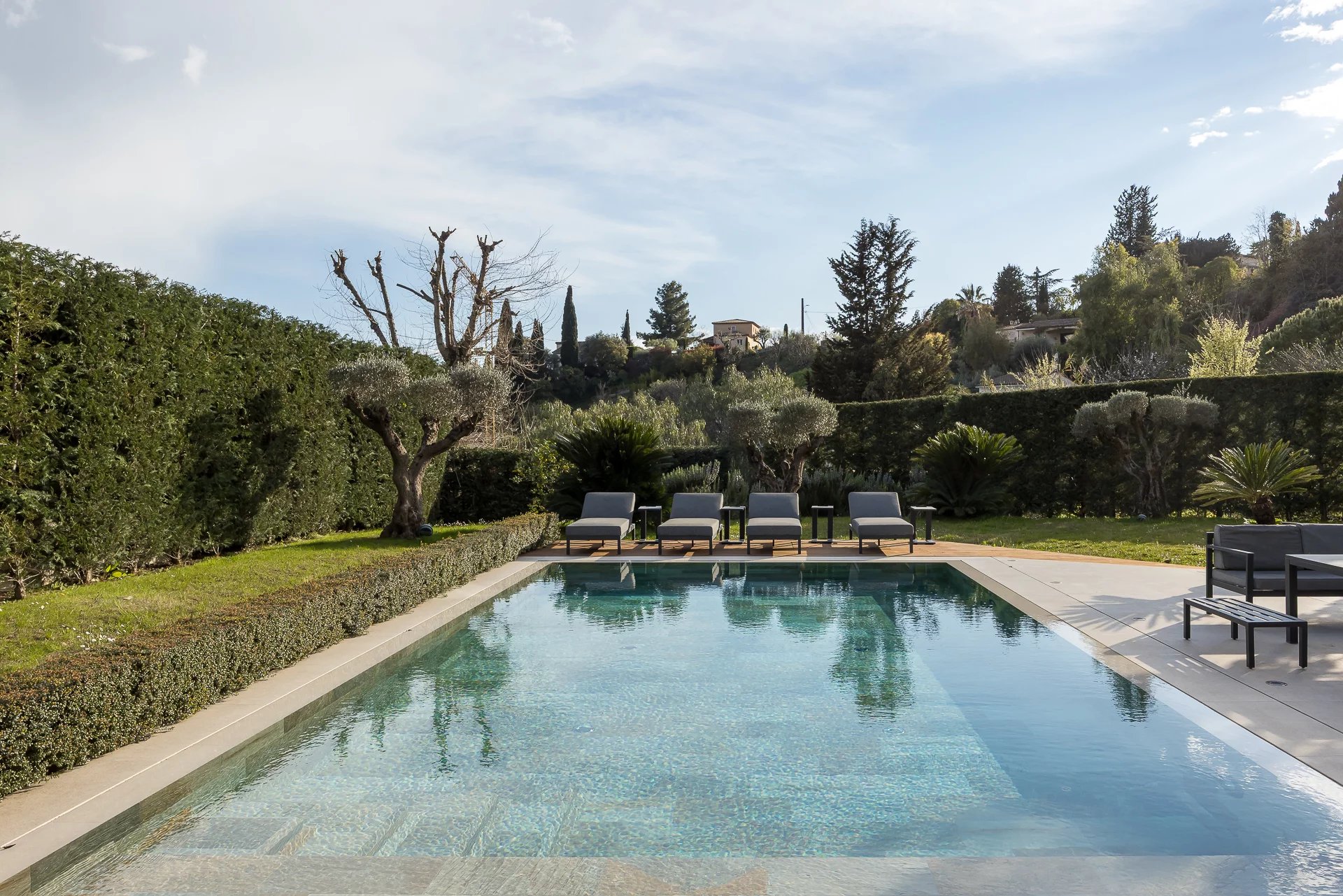 Just a stone's throw from the famous medieval village of Saint-Paul de Vence, this recent contemporary villa is very bright and evokes an atmosphere of peace and quiet.