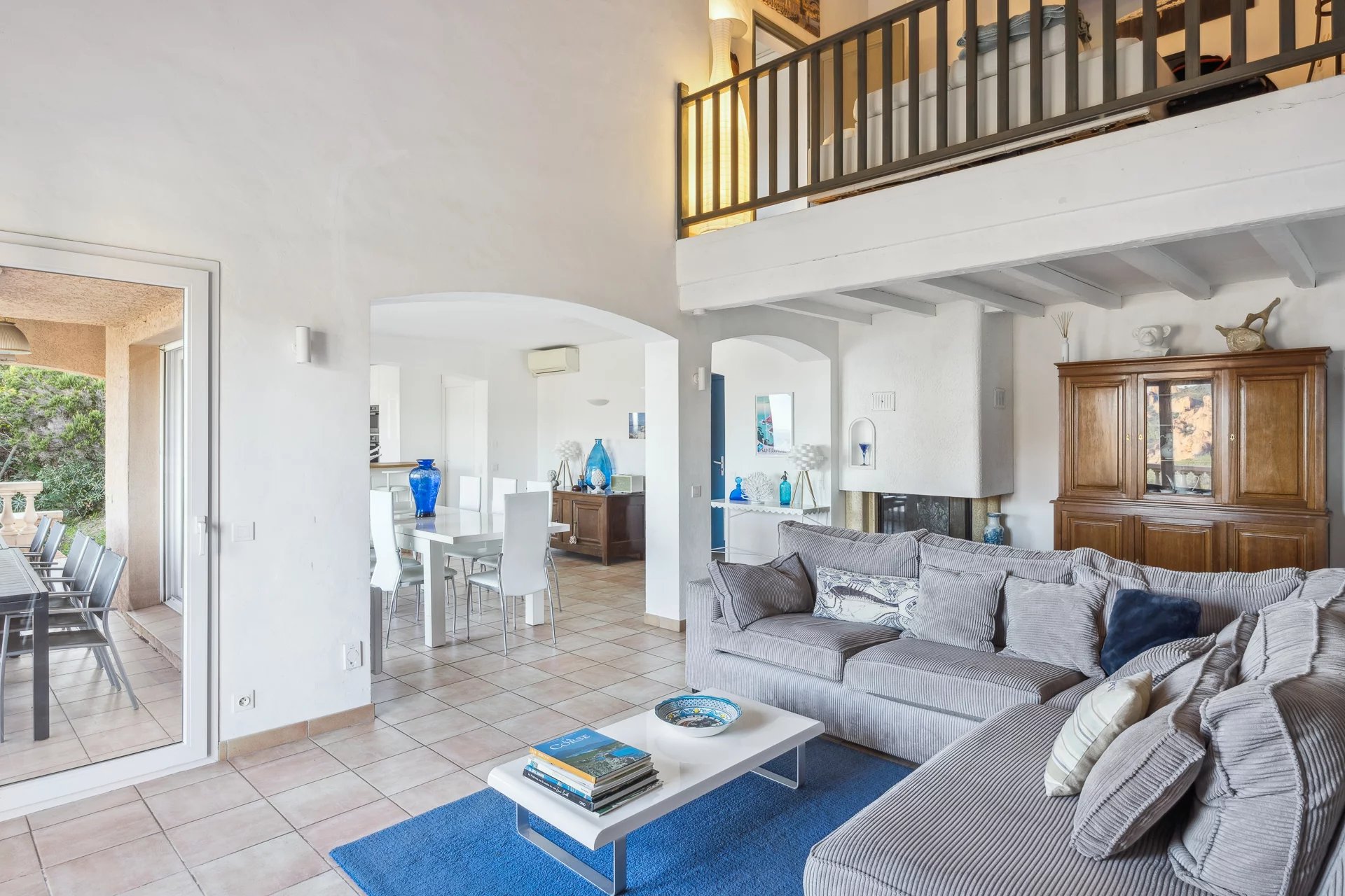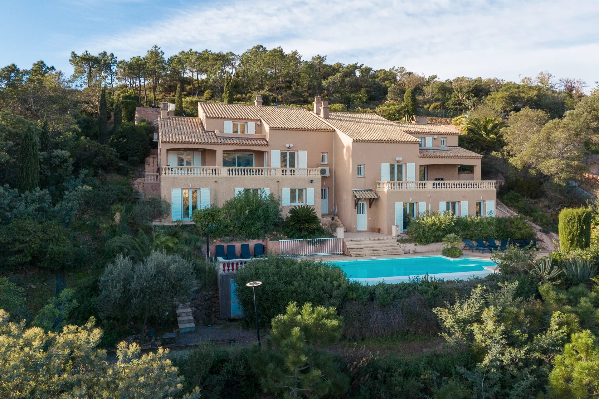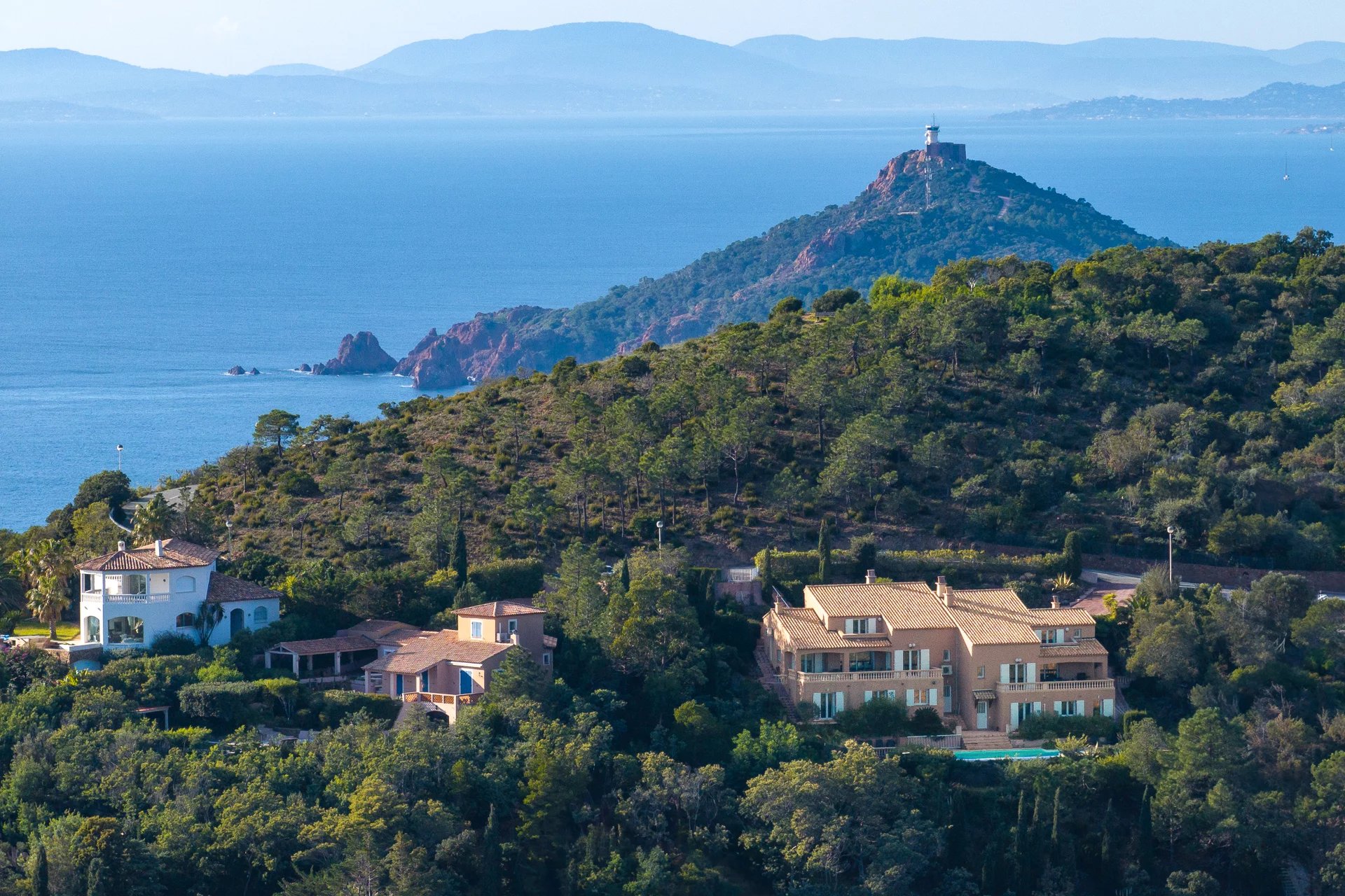 On the heights of Anthéor, in a private estate with breathtaking sea and mountain views, this villa comprises two independent parts with a total surface area of approx. 287 m².