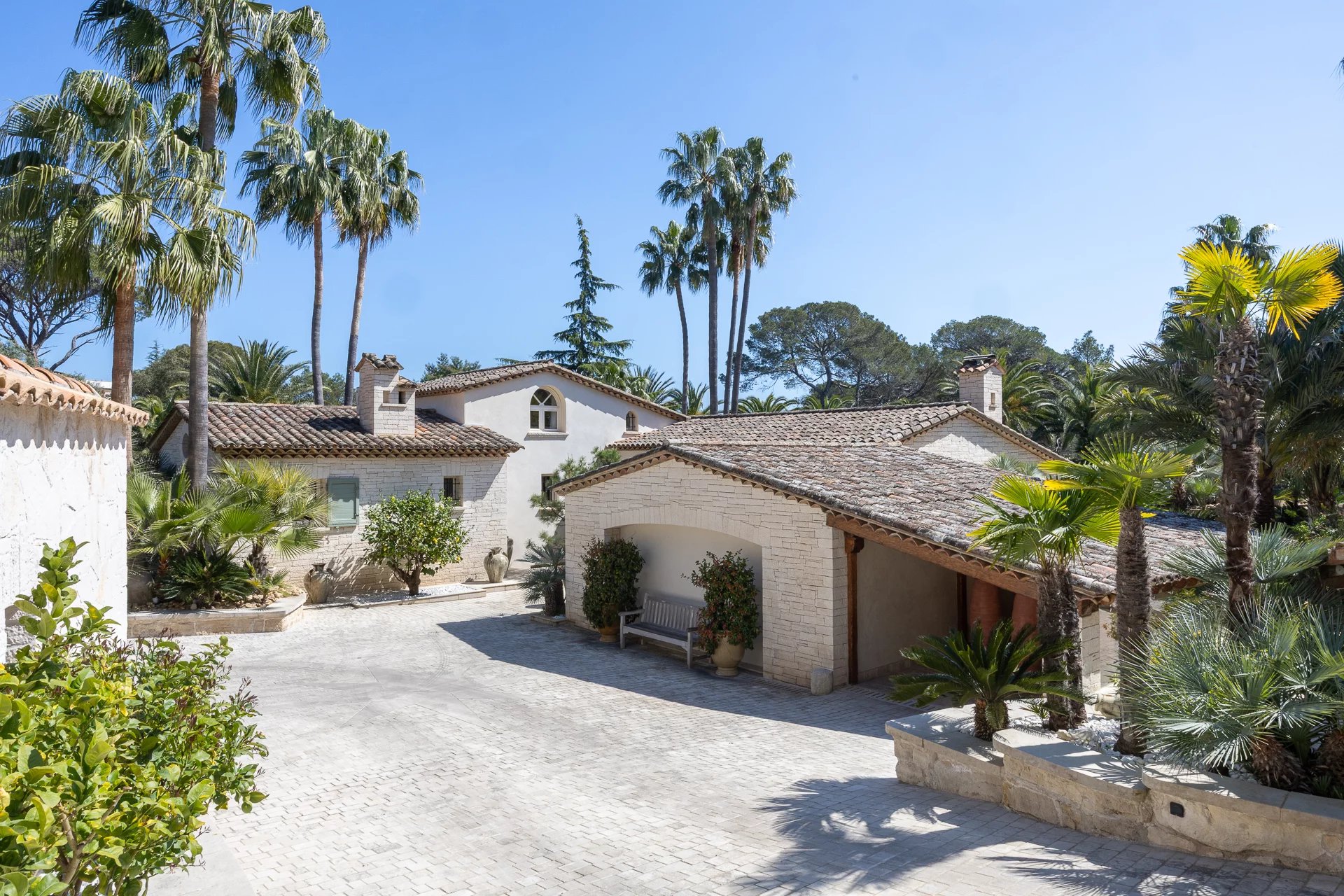 Located within a secure, gated estate and completely out of sight, this rare property offers a truly unique lifestyle. Ideally facing south, it sits on a beautifully landscaped, perfectly flat plot of approximately 2,810 m², adorned with nearly 100 palm trees and featuring a large heated swimming pool.
