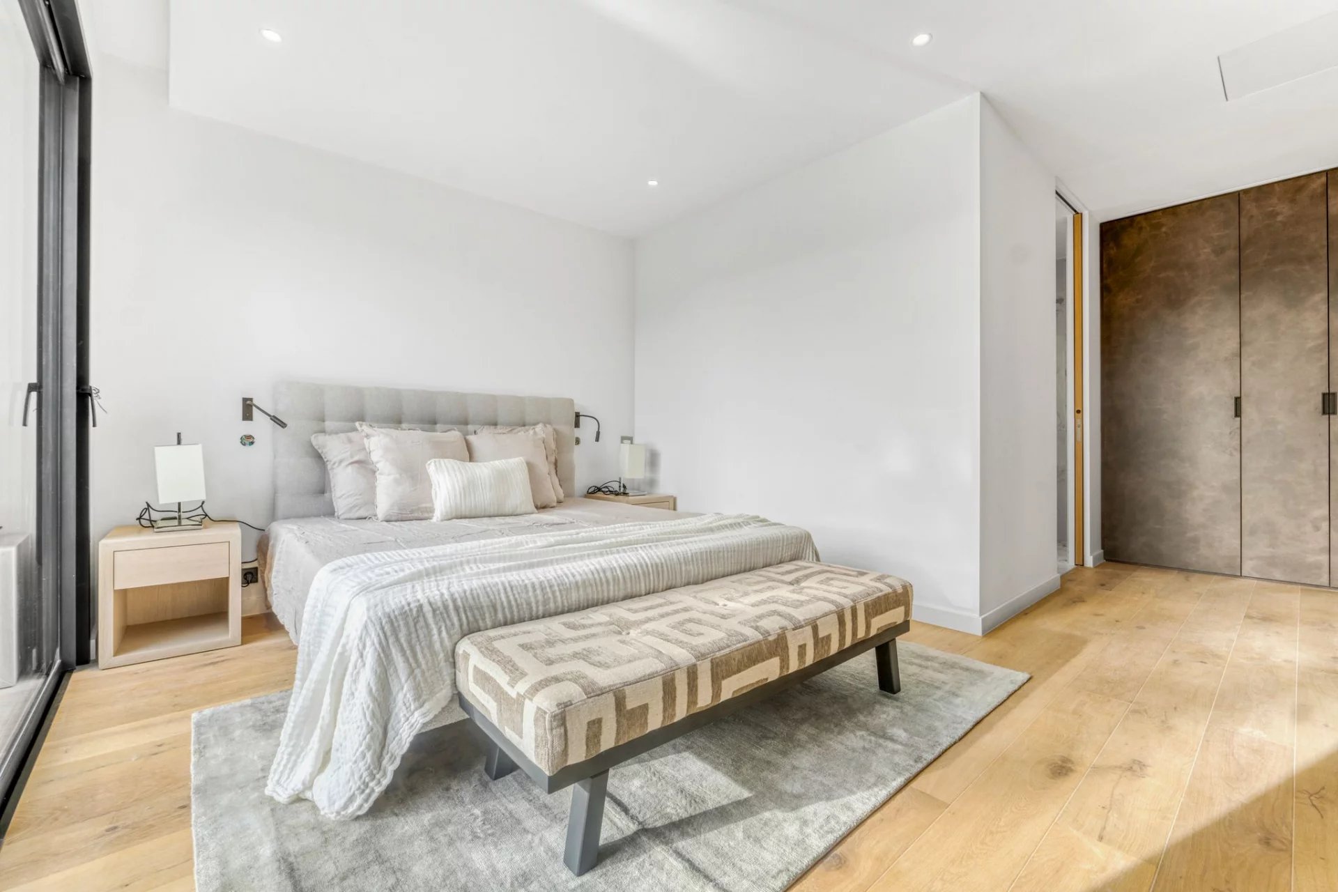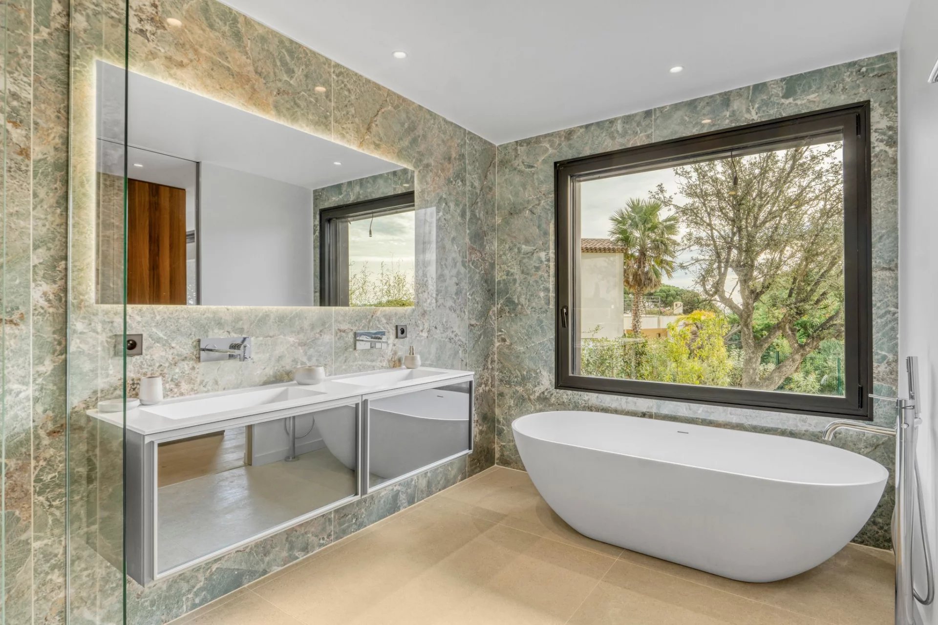 This magnificent new contemporary villa is located in a quiet, highly sought-after neighborhood close to the beaches. The features are of the highest standard, with top-quality materials. On the garden level, you'll find an open-plan kitchen, dining room and living room opening onto a terrace with swimming pool. There are also three en suite bedrooms, each with its own shower room and toilet, plus a guest toilet. On the second floor, a beautiful master bedroom with a shower room, dressing room and toilet, opening onto a private terrace of around 43m2. There's also a garage on the first floor. The property is set in grounds of approx. 1100m2. The magnificent swimming pool completes the property.