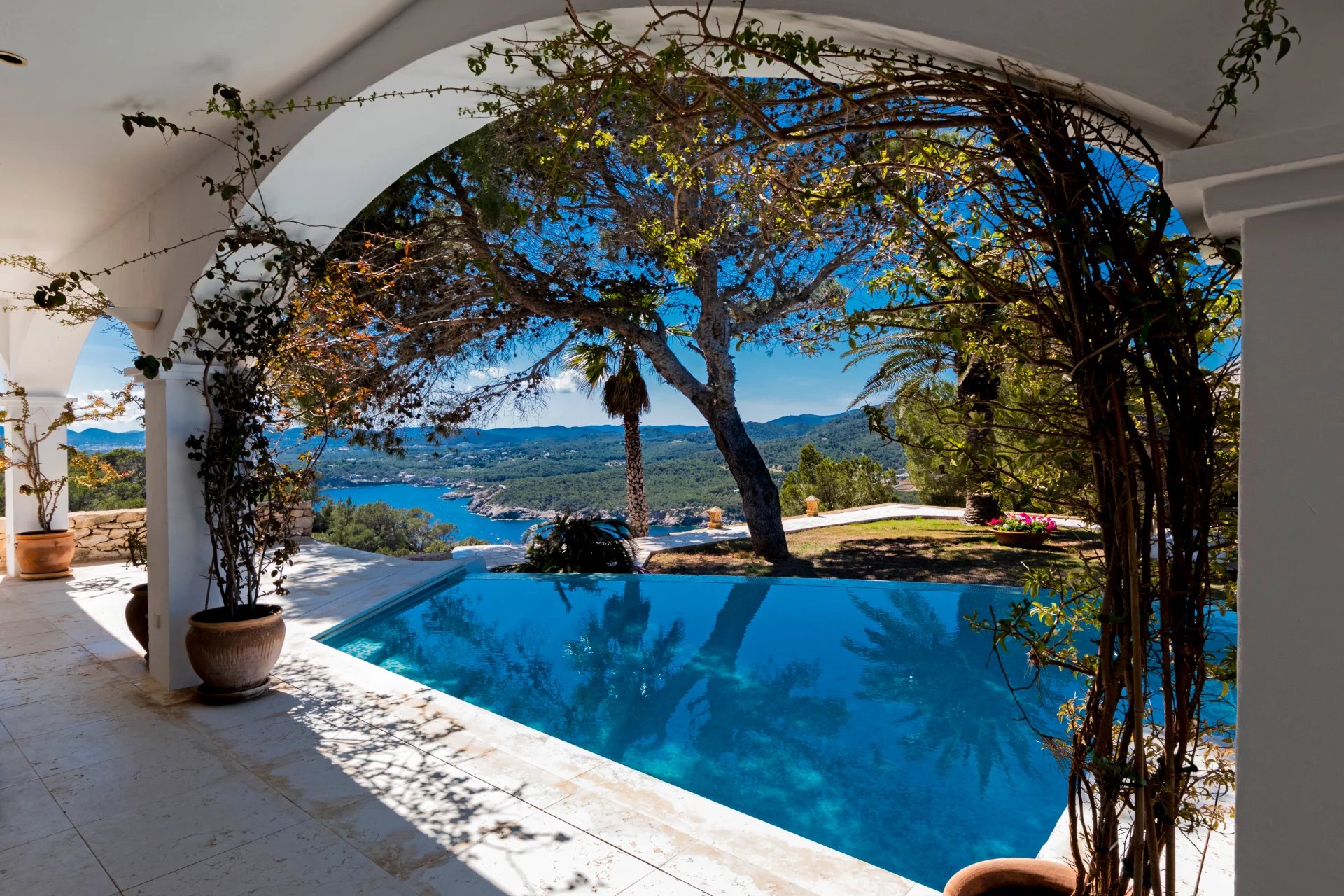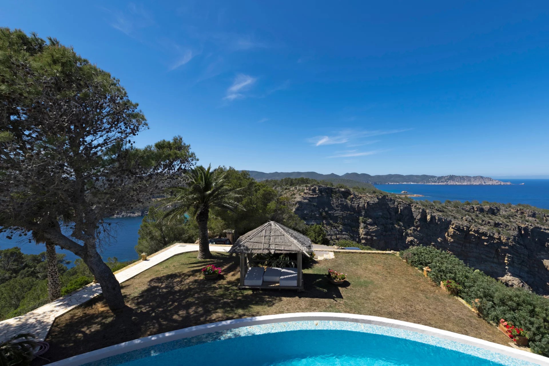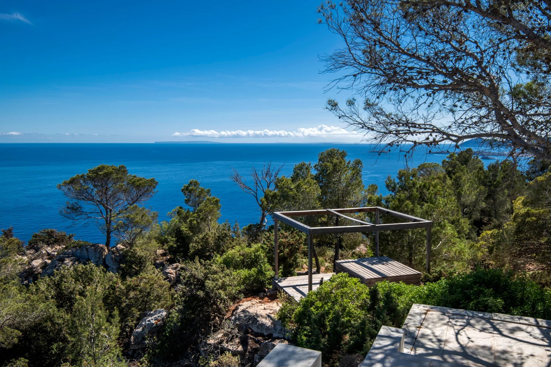 There is no other property in Ibiza with comparable views. From 10 terraces, a beautiful garden and from all rooms you see 360 degrees of the Mediterranean Ocean with all the boats passing by. You see even Mallorca, also the whole island of Ibiza. The property has a fantastic infinity pool, a Yoga place and a sports court.
