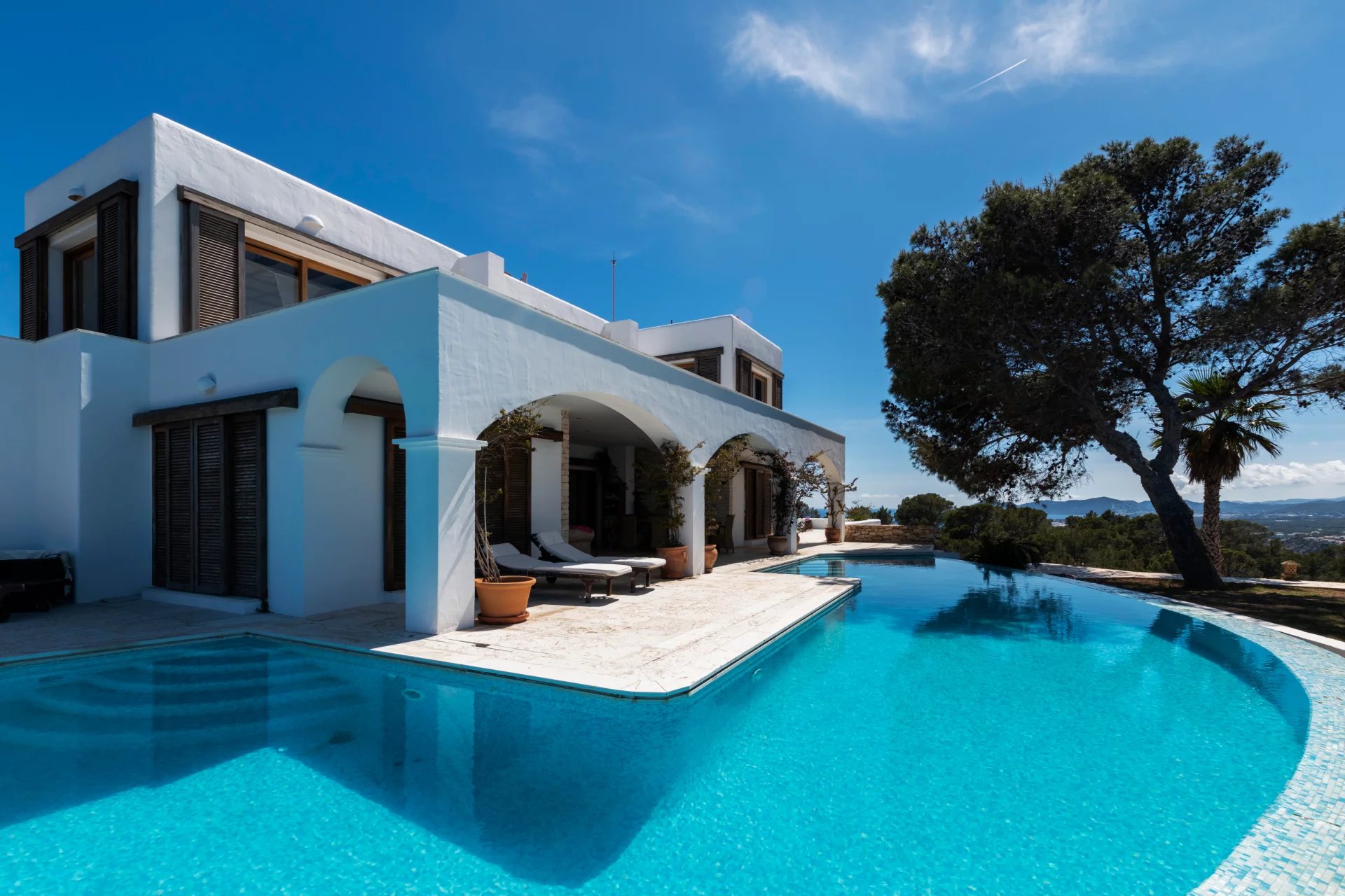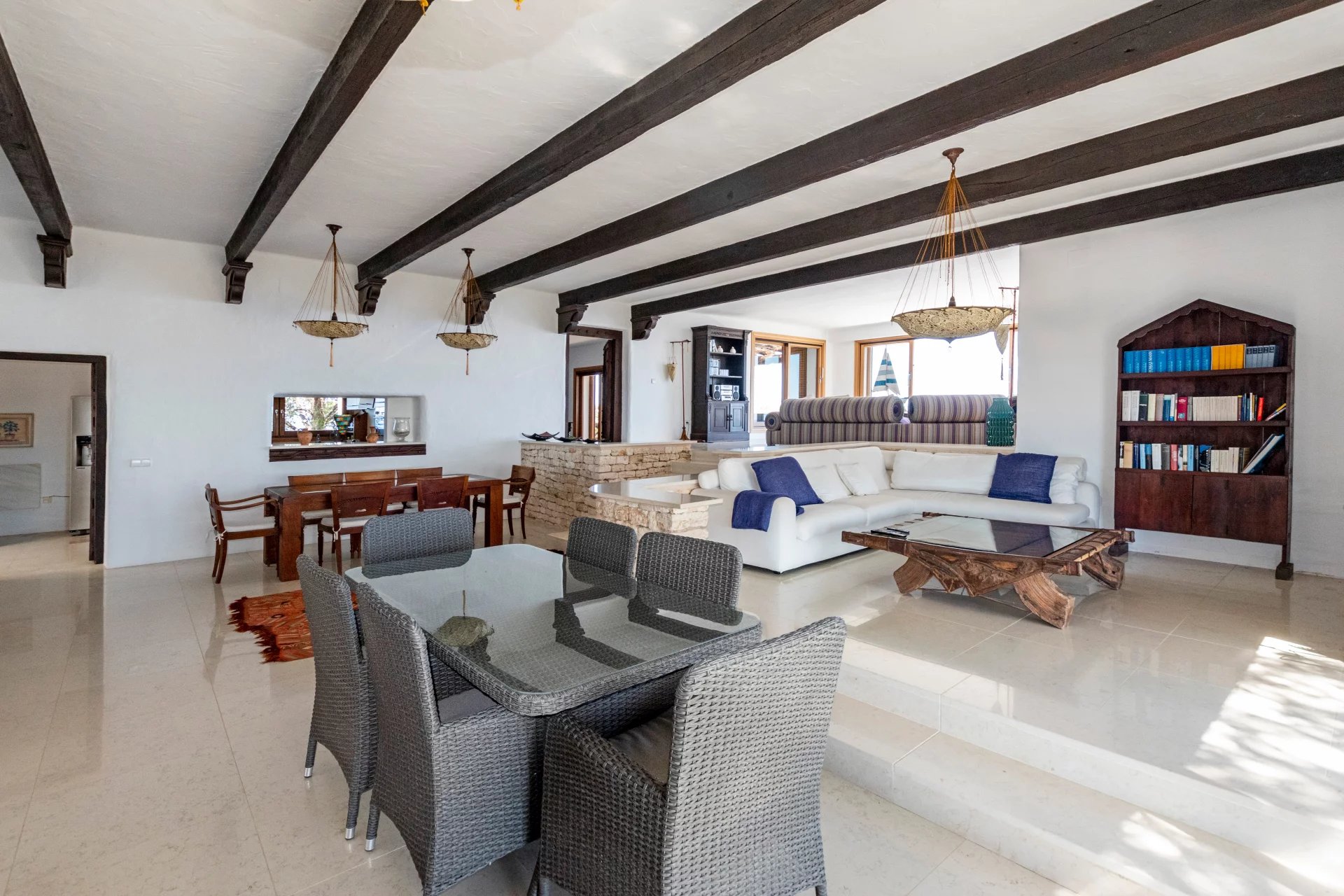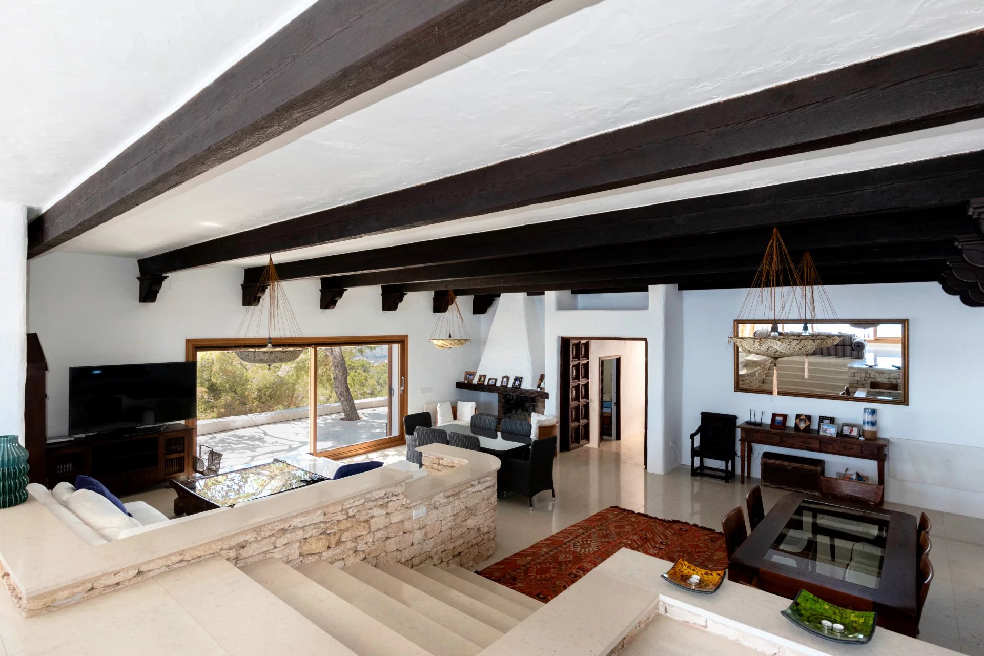 There is no other property in Ibiza with comparable views. From 10 terraces, a beautiful garden and from all rooms you see 360 degrees of the Mediterranean Ocean with all the boats passing by. You see even Mallorca, also the whole island of Ibiza. The property has a fantastic infinity pool, a Yoga place and a sports court.