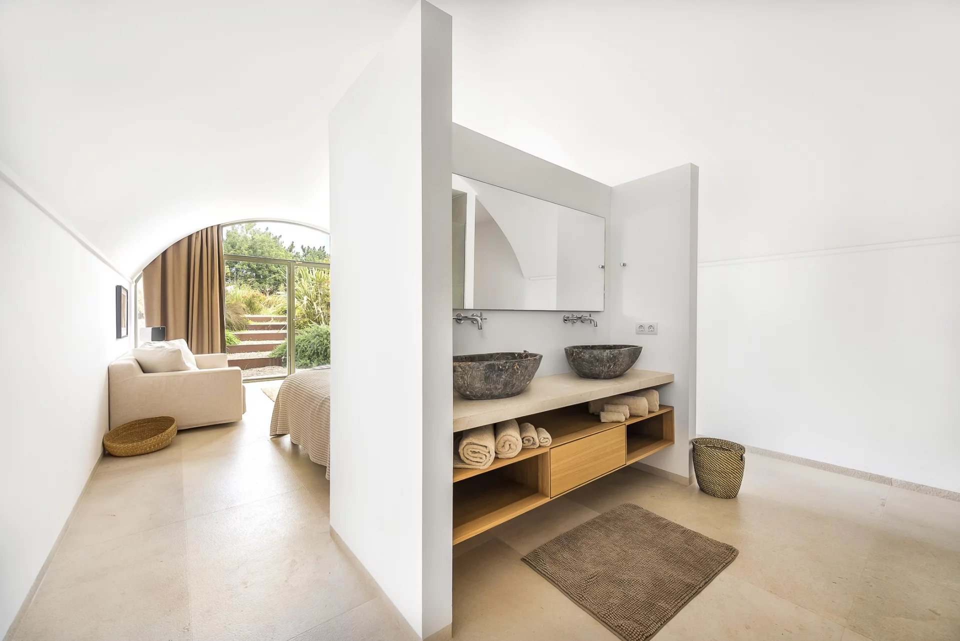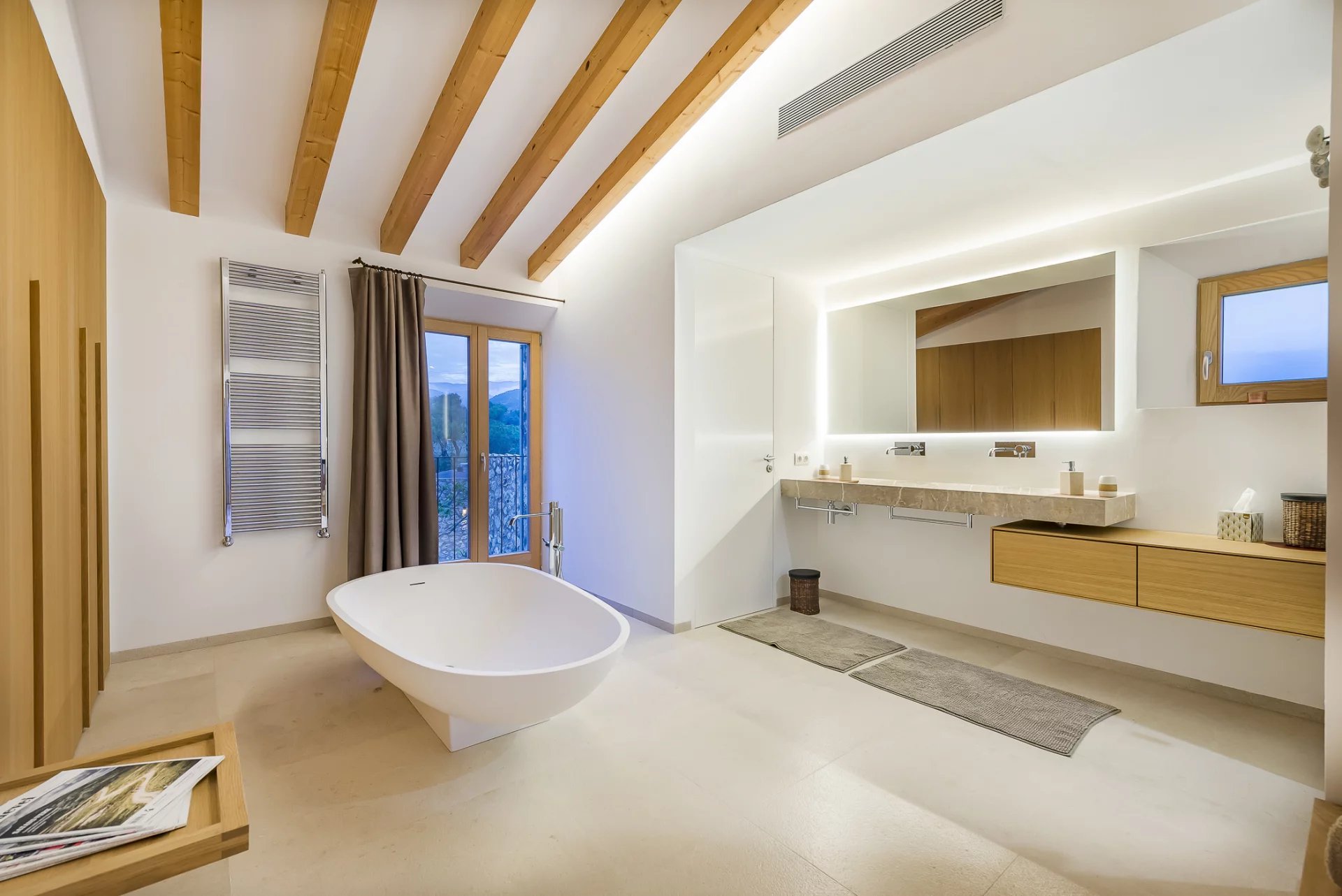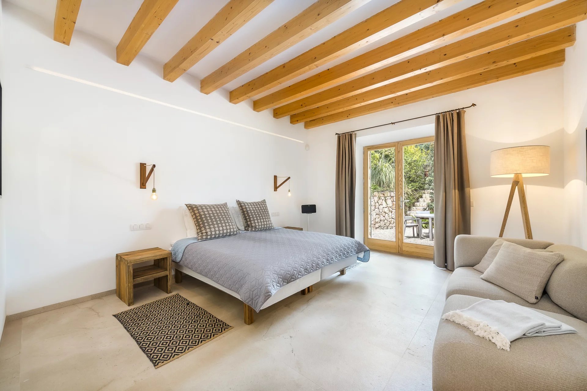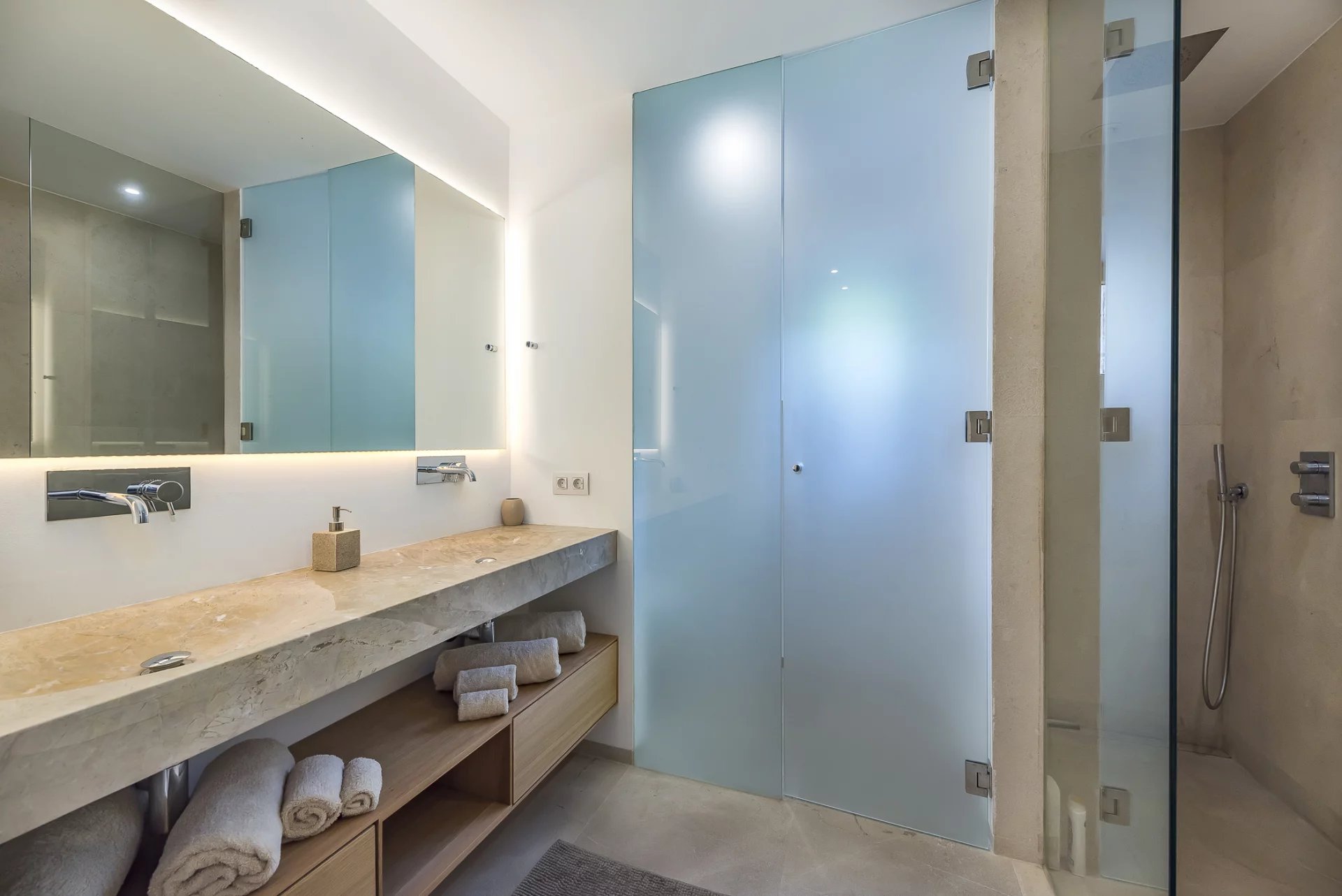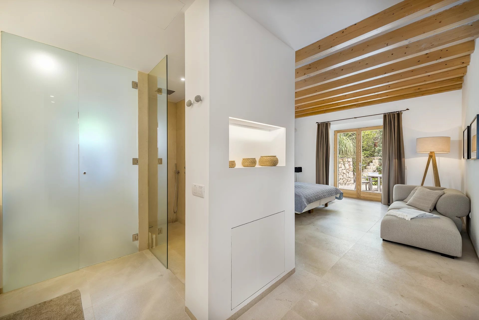 This stunning modern villa in Mallorca combines contemporary elegance with traditional Mediterranean charm. Designed with spacious interiors, natural stone floors, high-quality wood finishes, and floor-to-ceiling windows, the home offers an unparalleled living experience.